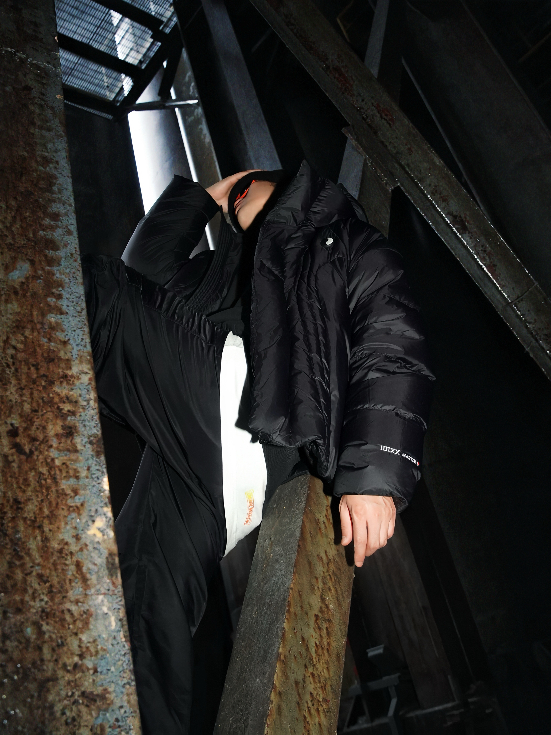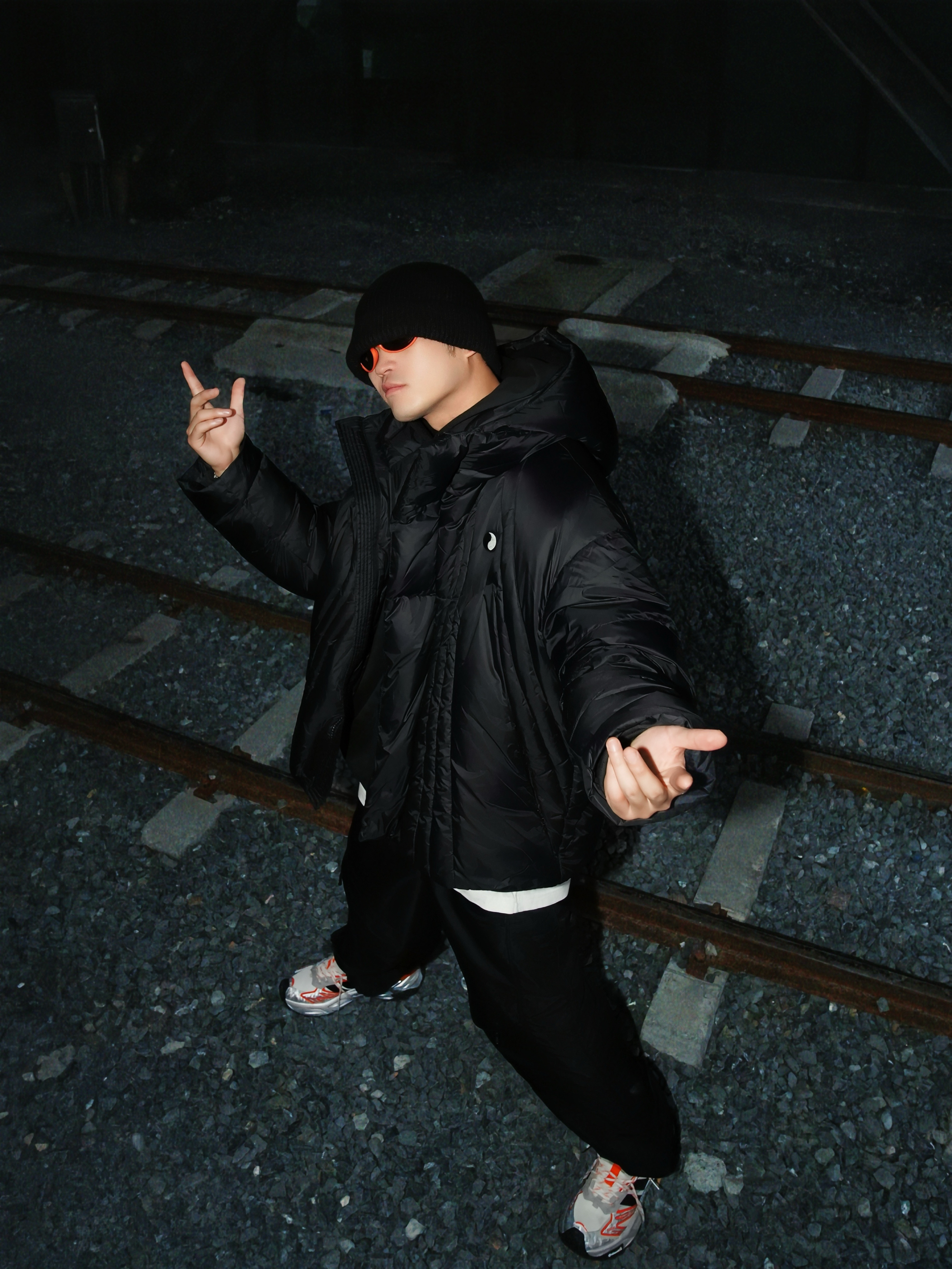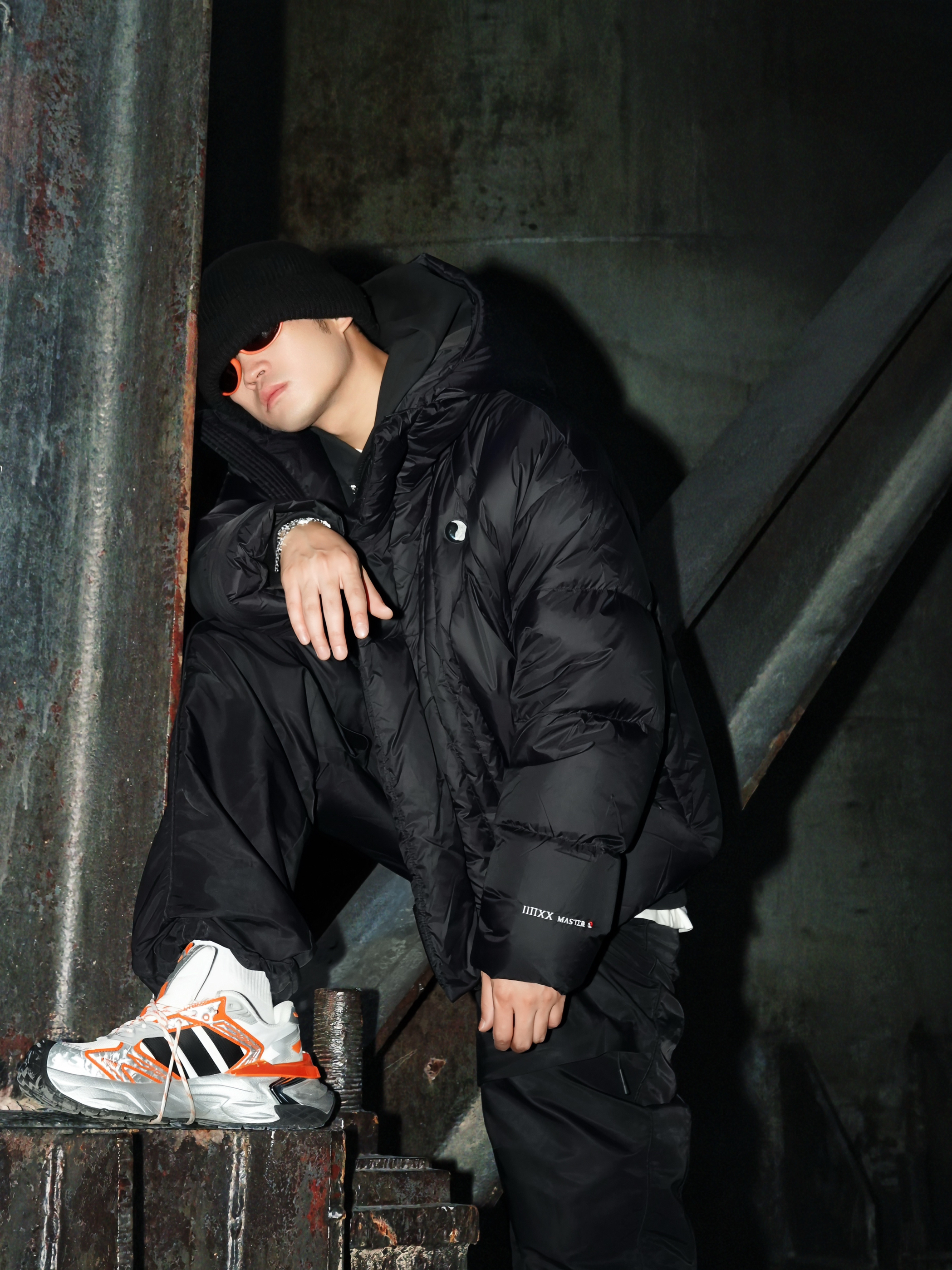厚外套的保暖和帅气真的可以兼得🥷 最近迷上在工业风场景拍穿搭 碎石、铁轨、生锈铁柱——阴冷氛围和黑色羽绒服意外很配 ▫️外套:黑色羽绒服(绗缝设计+字母袖标) ▫️内搭:黑白叠穿(露出白边增加层次感) ▫️裤子:黑色运动机能休闲裤 ▫️鞋子:白橙配色运动鞋(点亮全身) ▫️配饰:针织帽+橙红墨镜🕶️(氛围感利器) 📸拍照技巧分享: 双手插兜侧身站|单脚踩铁轨|仰拍显气场 暗调背景搭配橙色调配饰更吸...