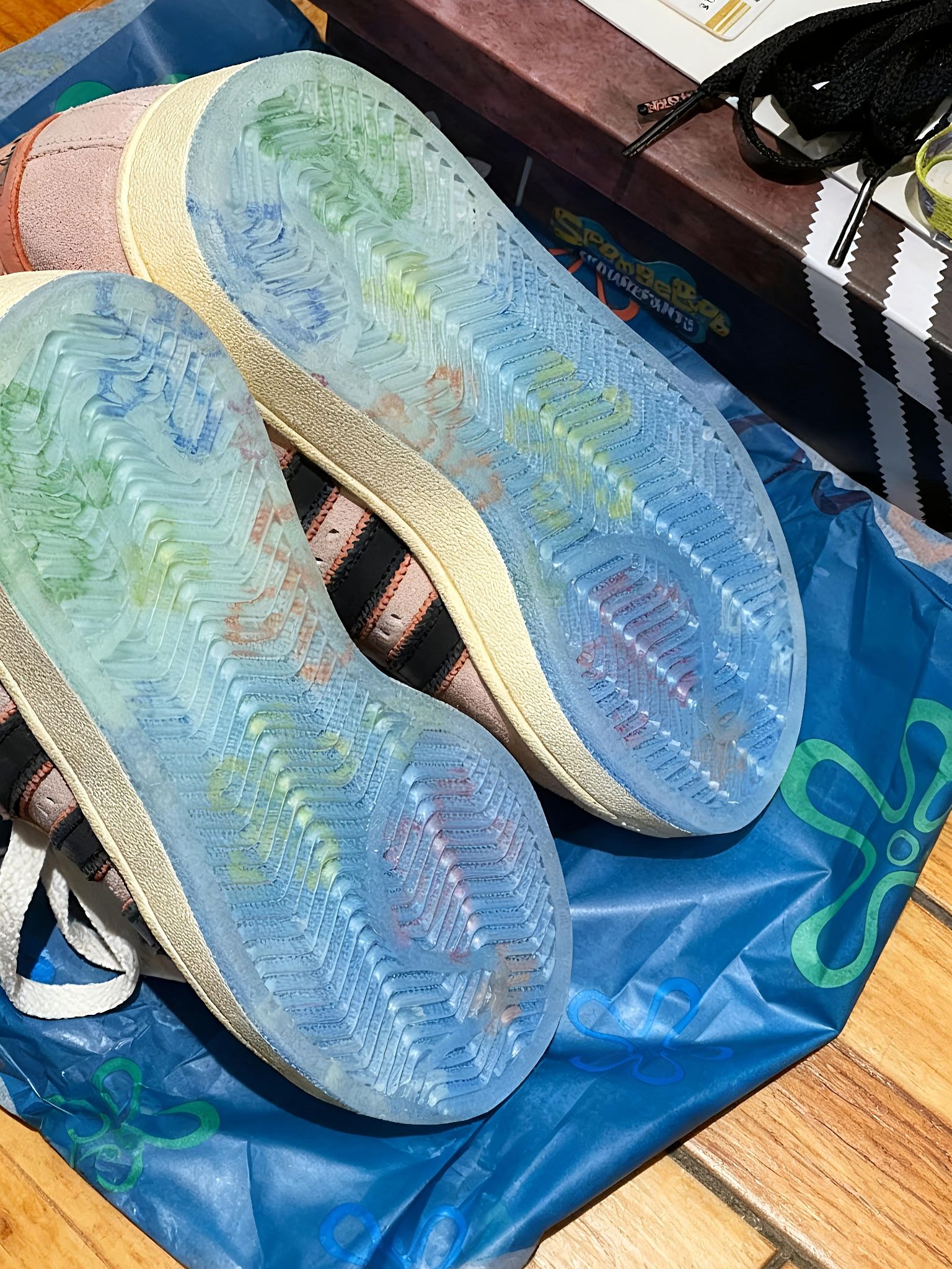 这双阿迪×海绵宝宝联名贝壳头真的绝了!💖 派大星本星配色!麂皮鞋面像棉花糖一样软fufu 鞋舌还藏着星星压纹以及派大星大头照 附赠的比奇堡驾驶证可爱到犯规🪪 米白贝壳头越穿越有复古感 踩屎感鞋垫走路一天都不累👣 今天又是被童年回忆暴击的一天!