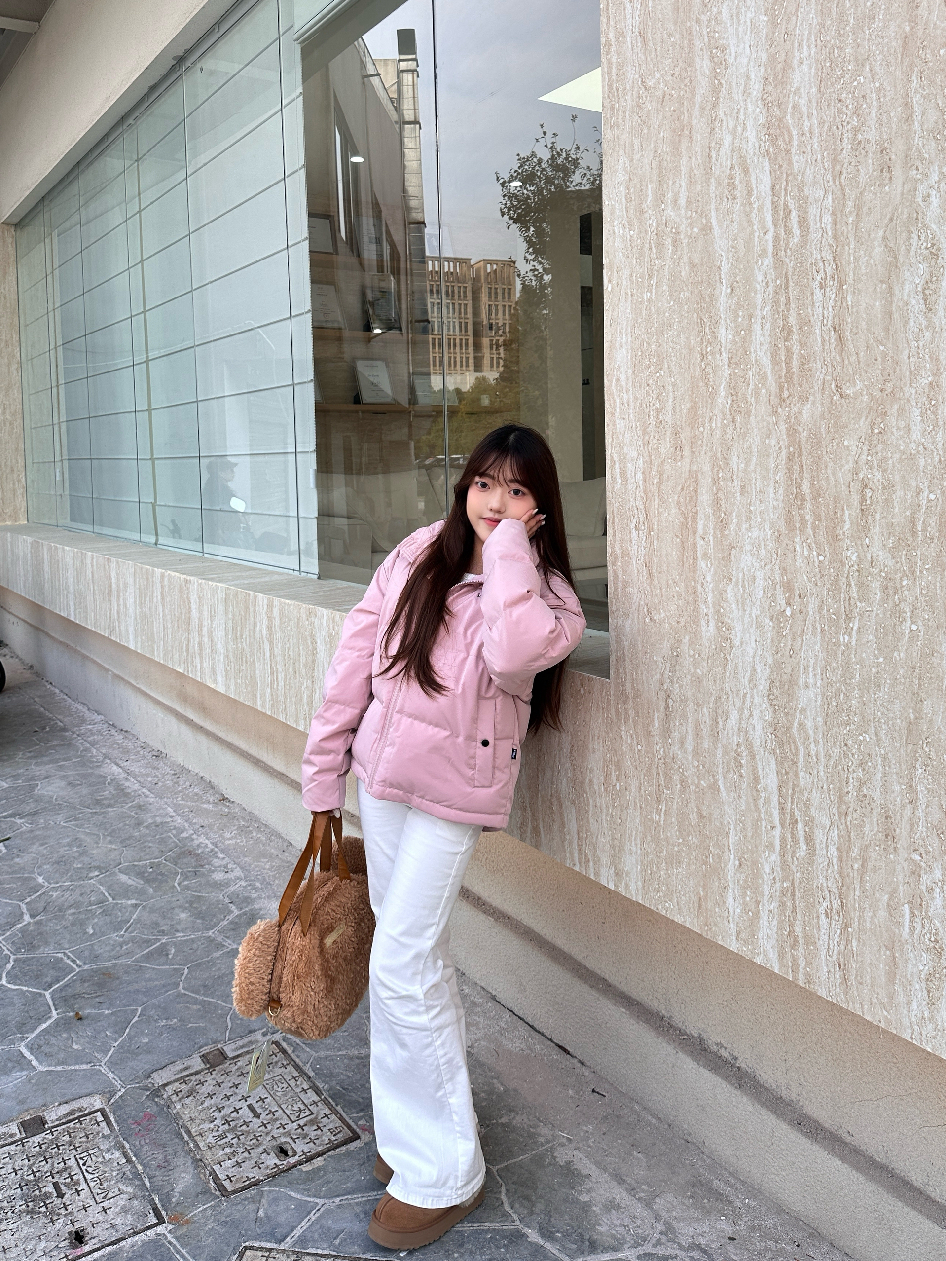 好喜欢这件羽绒服呀~ 配色好新颖!是那种皮粉色感觉!!! 而且穿上去不显臃肿的同时很显潮流~ 我160 105穿的s码,和我差不多的小姐姐可以借鉴一下哦