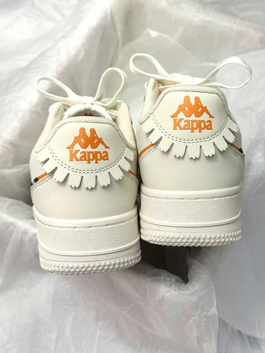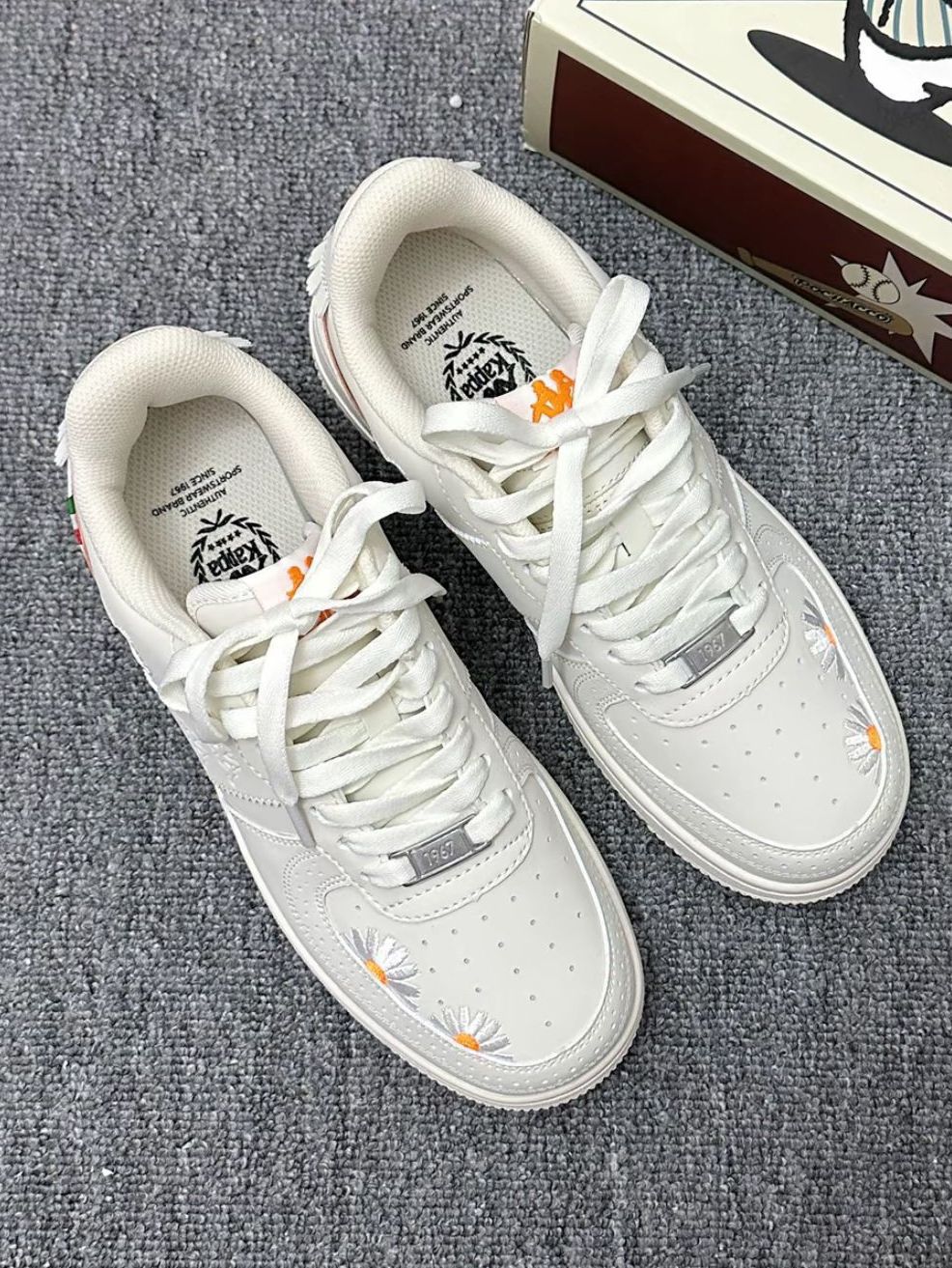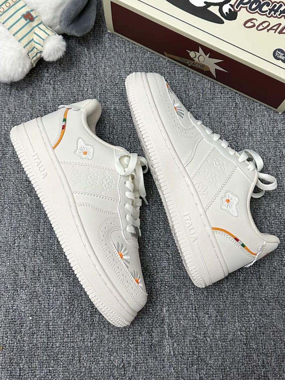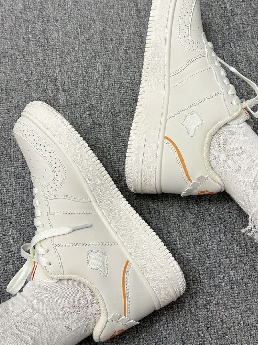 这双奶白高帮鞋也太戳少女心啦! 软乎乎的米白主调+橘色线条点缀,清新又温柔~ 厚底增高+舒适脚感,日常通勤、约会穿都适配,搭配蕾丝袜直接甜到心坎里!