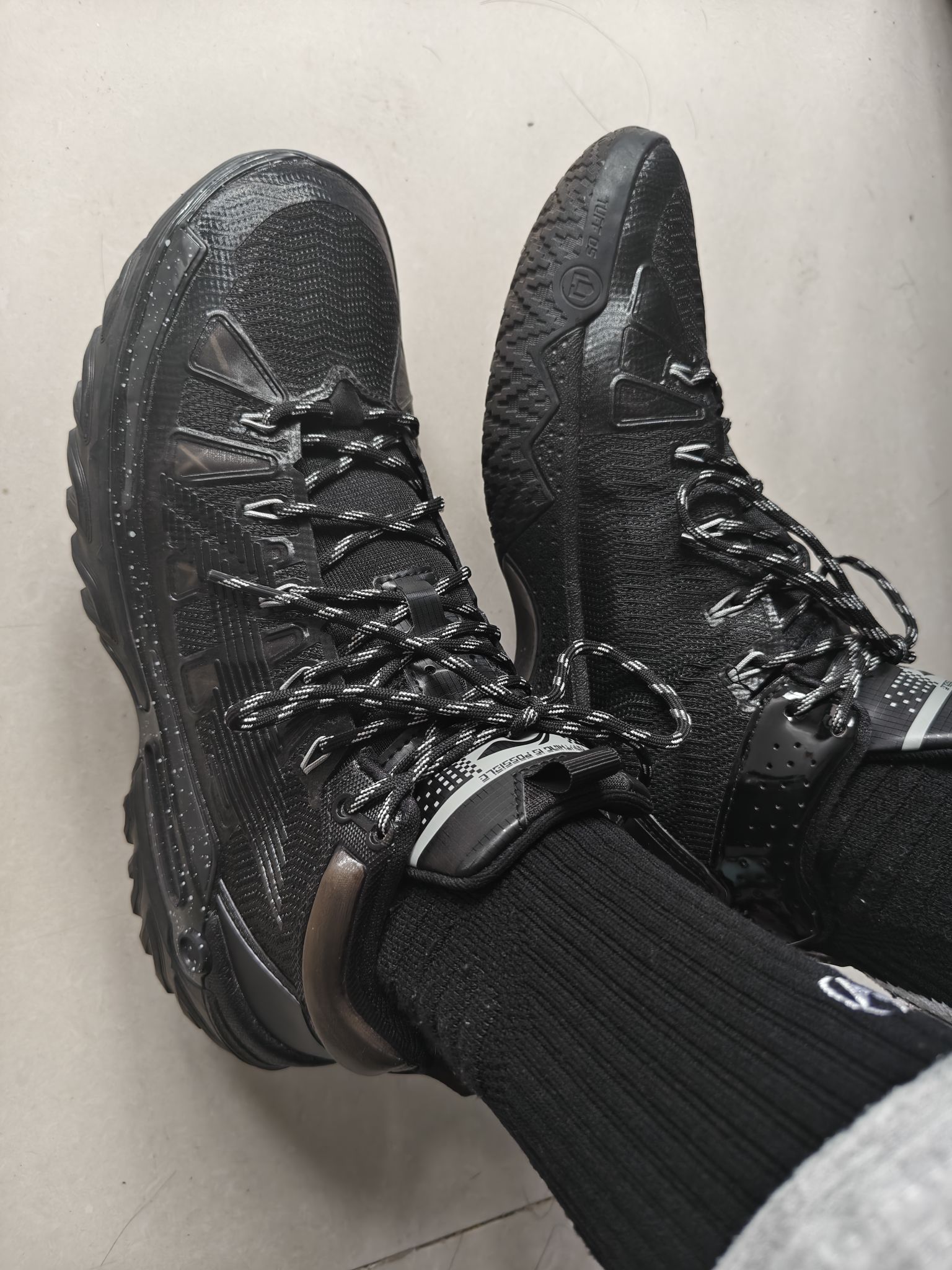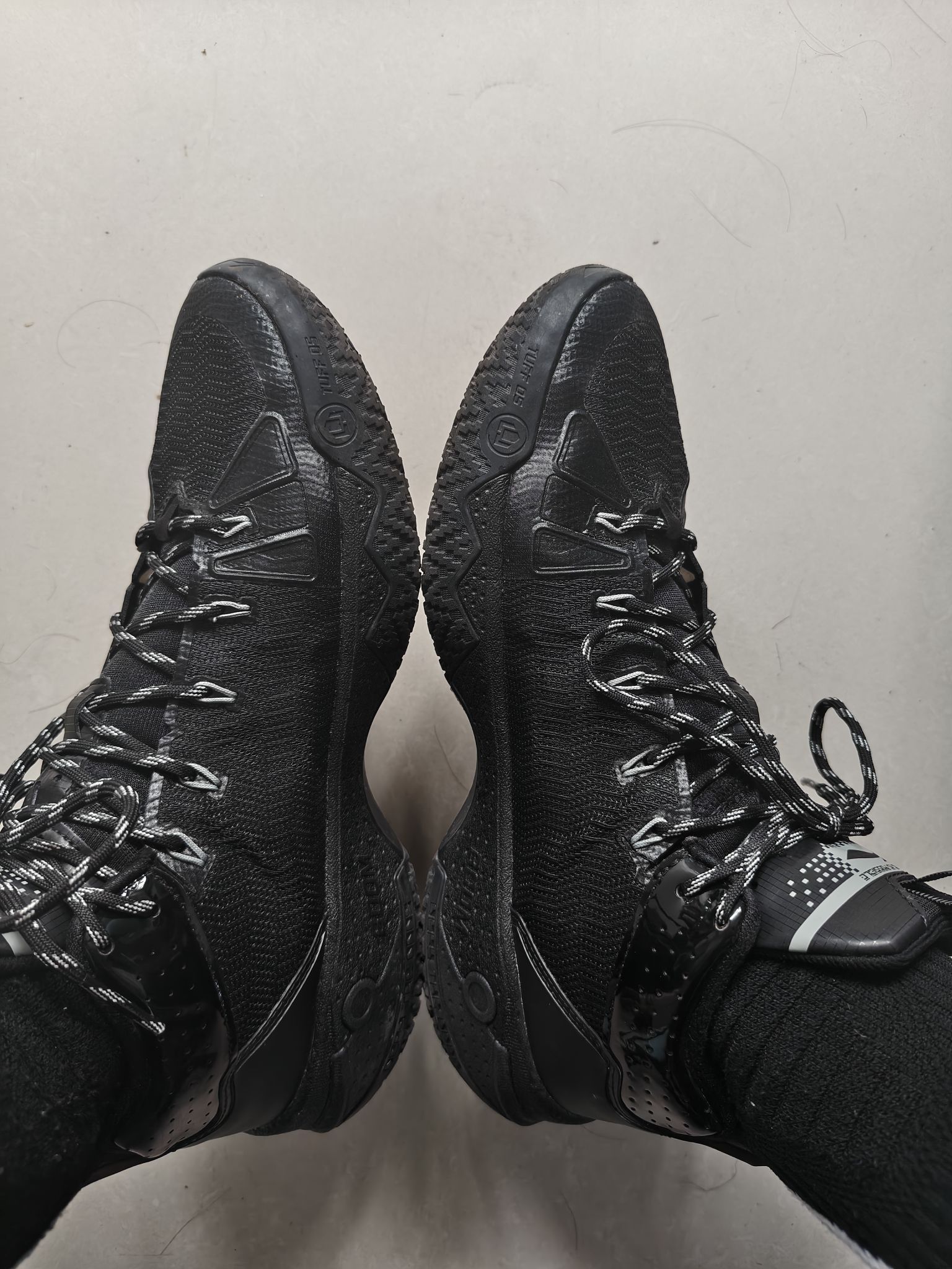 上脚这双全黑配色桀骜二高帮,第一感是「紧凑的安全感」:鞋楦包裹精准,高帮填充饱满却不僵脚,鞋带拉紧后脚踝被稳稳锁定,鞋脚一体性拉满。 实战外场油漆地,前掌低重心启动干脆,大底纹路抓地稳健,变向时没有打滑拖沓感。侧向支撑和抗扭都很扎实,急停变向时足弓被稳稳托住。- 场地类型:最适合油漆地、水泥地,TUFF材质大底耐磨度可抗粗糙地面 - 打法适配:适合突破流/节奏型后卫,低重心+抓地能匹配变向、急...