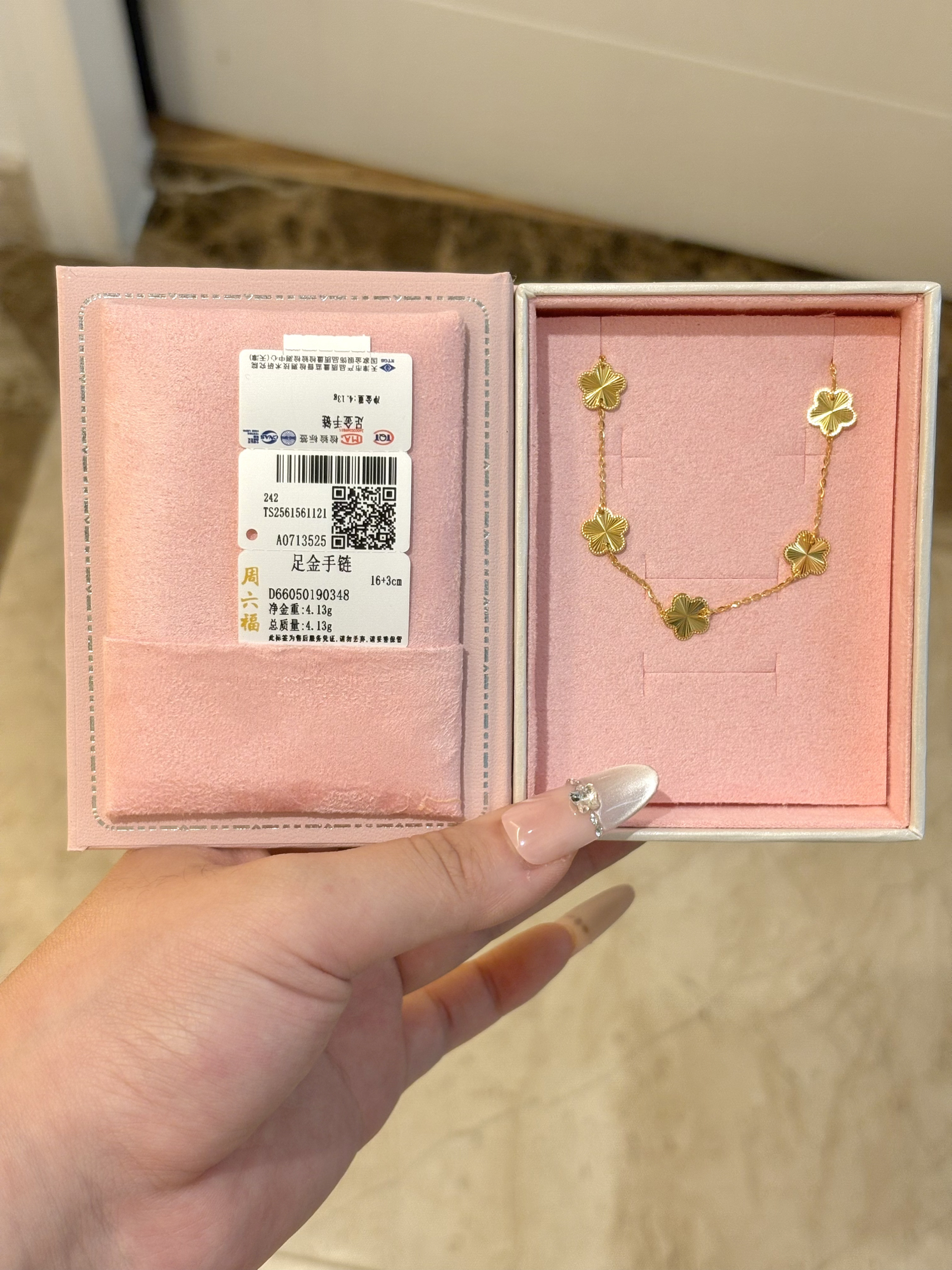 本篇笔记关联了周六福 五花女神节礼物车花足金计价手链 A0713525 金色、中国黄金 幸运五花足金手链 ZRJSL0771 金色等商品,为用户提供真实的使用体验和购买参考。