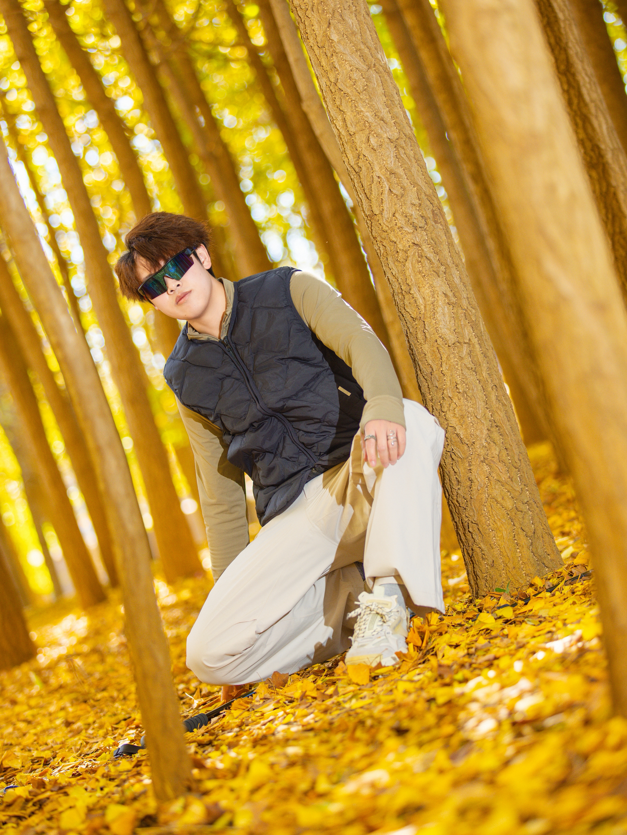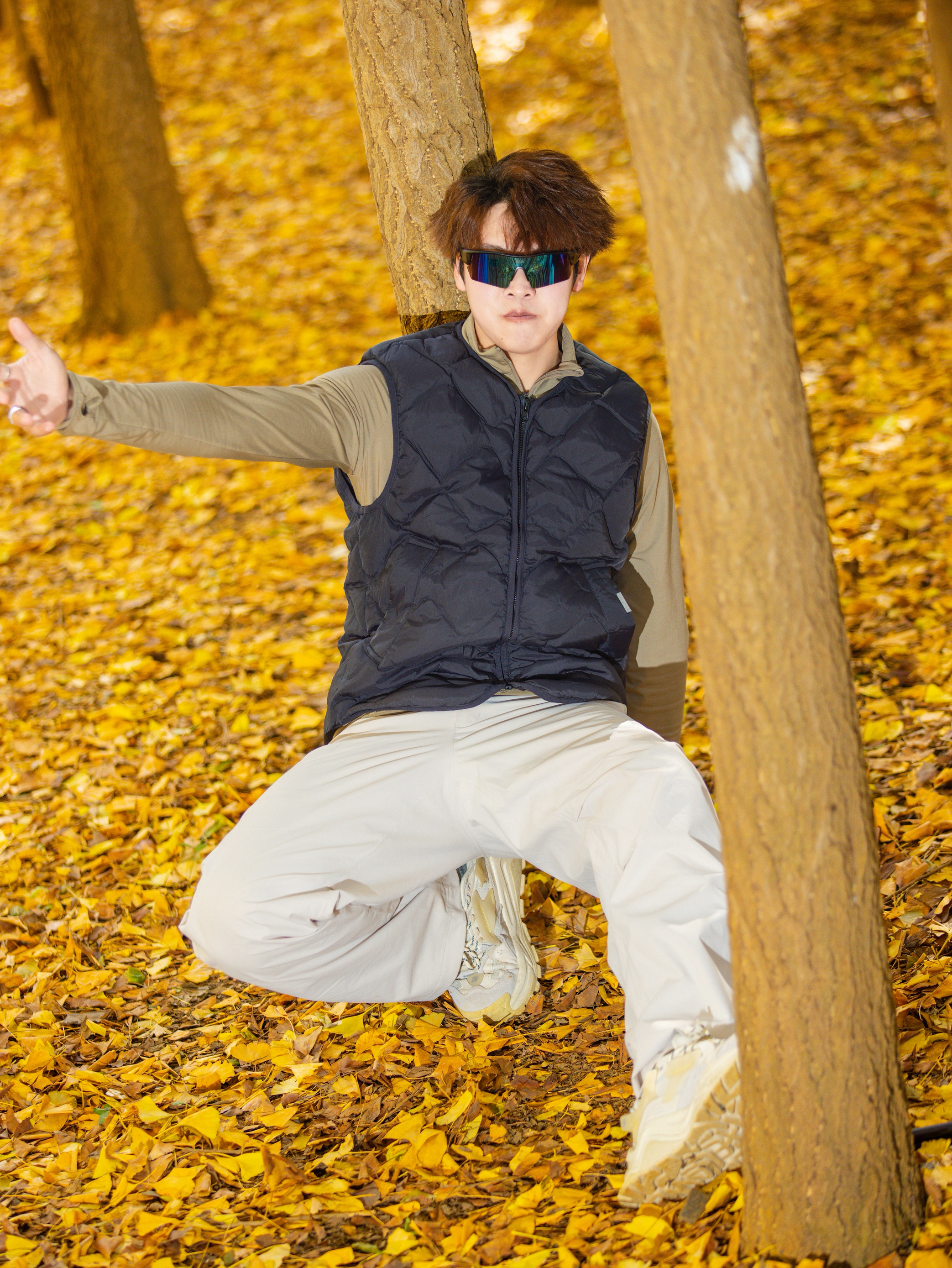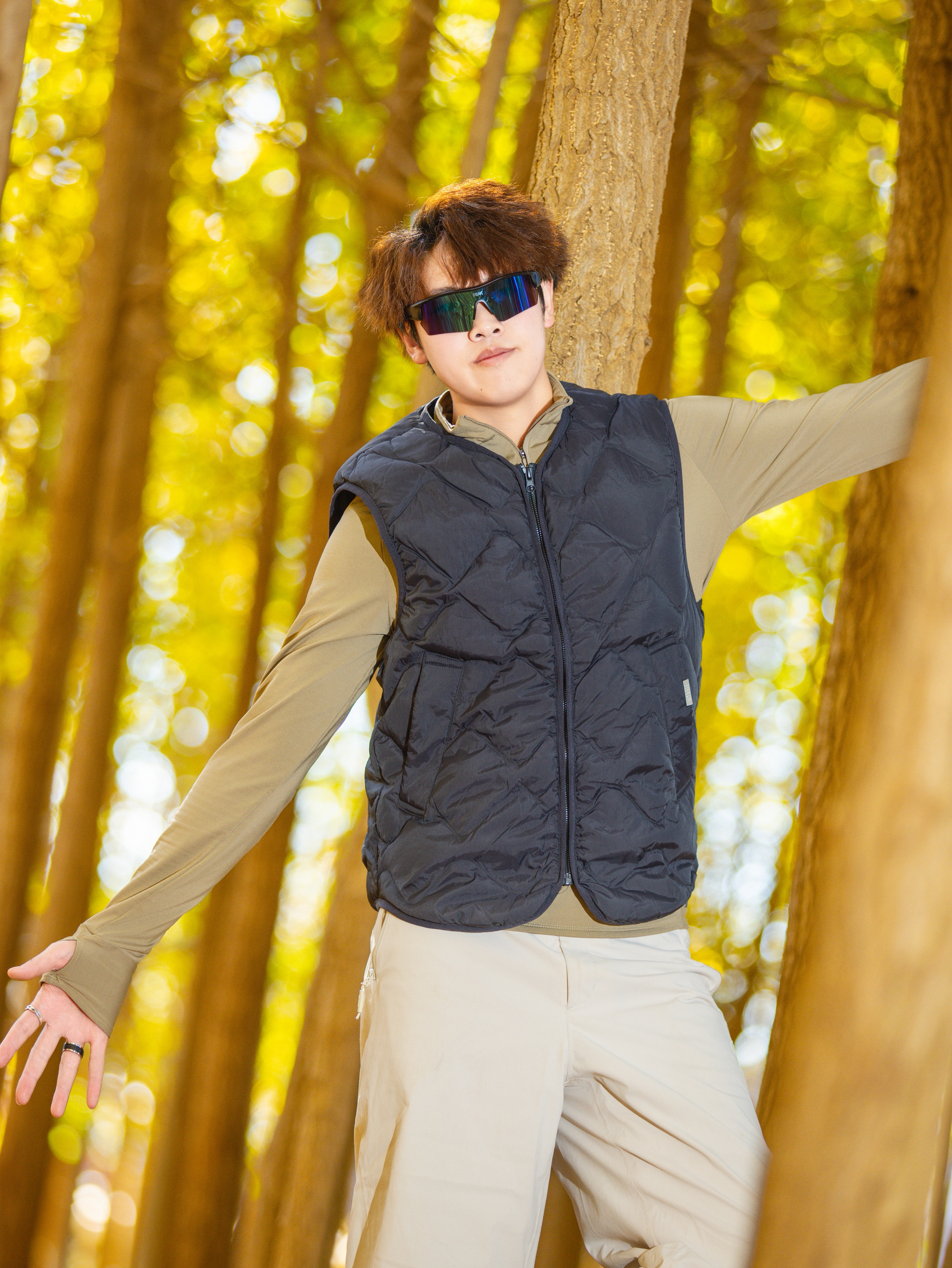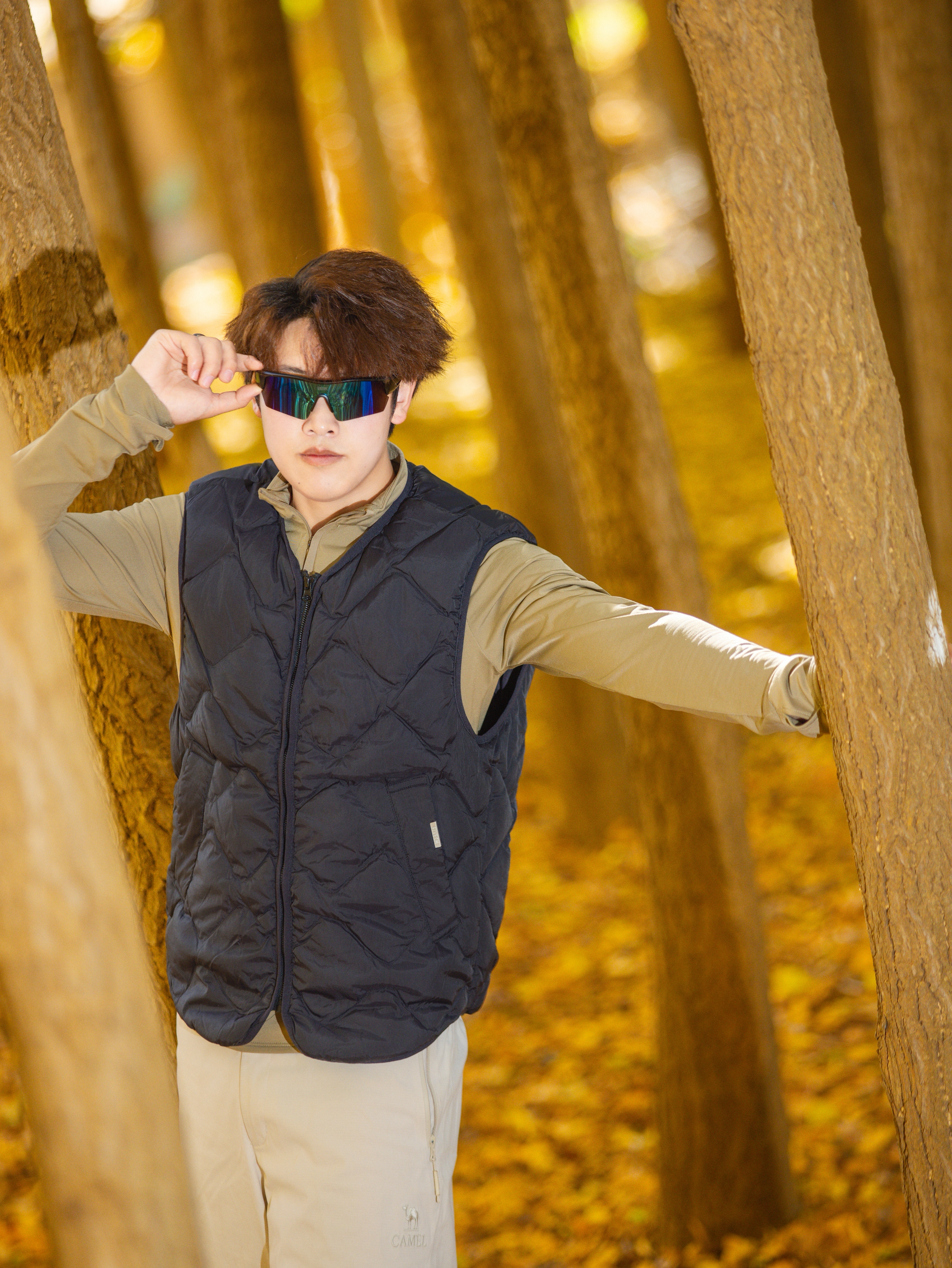谁懂啊,昆明秋天的银杏林真的是自带柔光滤镜✨ 🔹今日穿搭公式:藏青菱格羽绒马甲+卡其长袖+浅卡其阔腿工装裤 • 马甲是轻量款!叠穿内搭完全不臃肿,早晚出门套上巨挡风,藏青色还耐脏(户外党狂喜) • 卡其长袖贴身不闷,和马甲撞色温柔又有层次,秋老虎天单穿也舒服 • 浅卡其工装裤版型封神!阔腿+垂感,踩满落叶的地面都能穿出长腿,面料抗皱坐地上摆拍都不心疼😎 道具小心机:带根登山杖!...