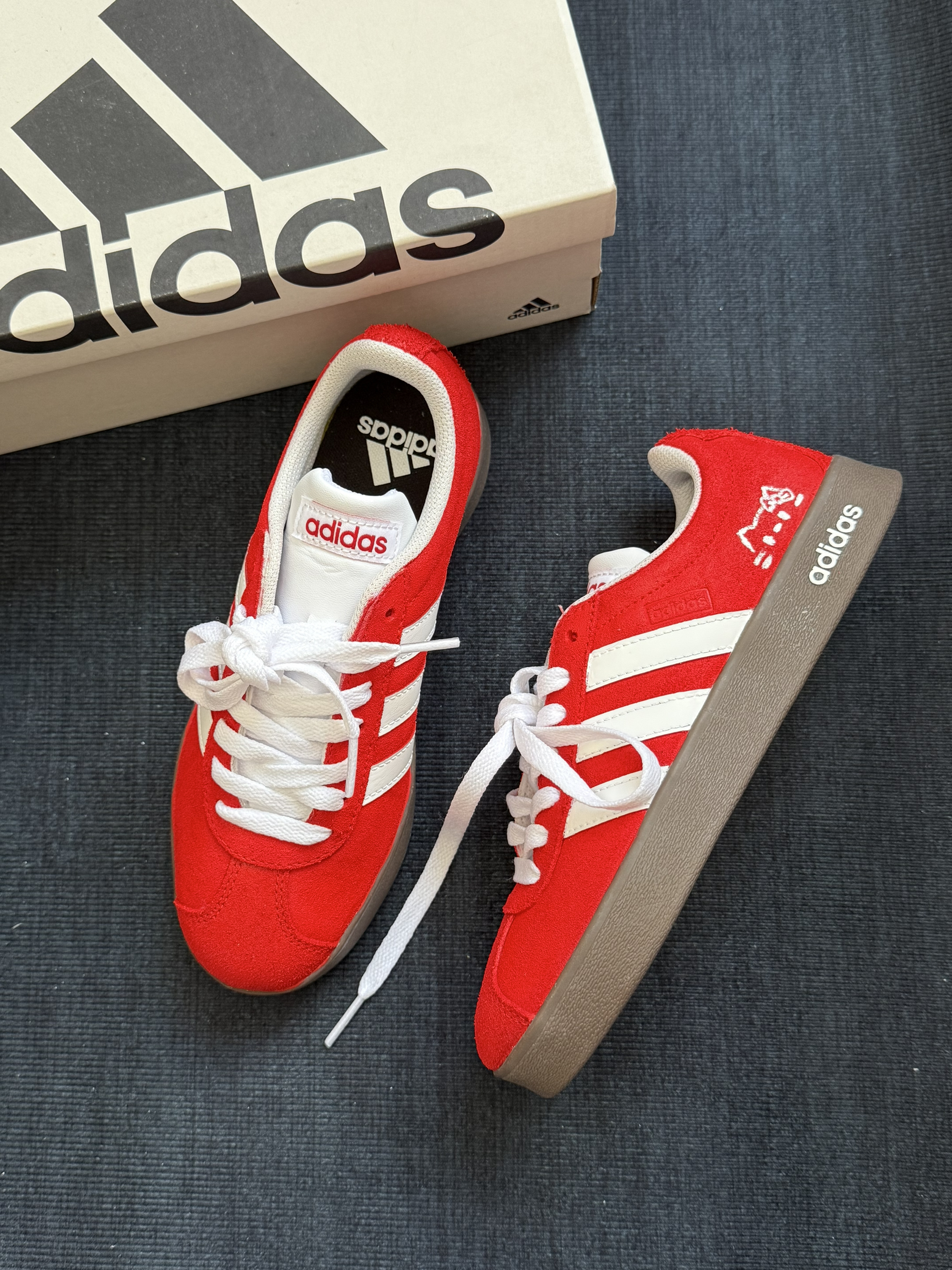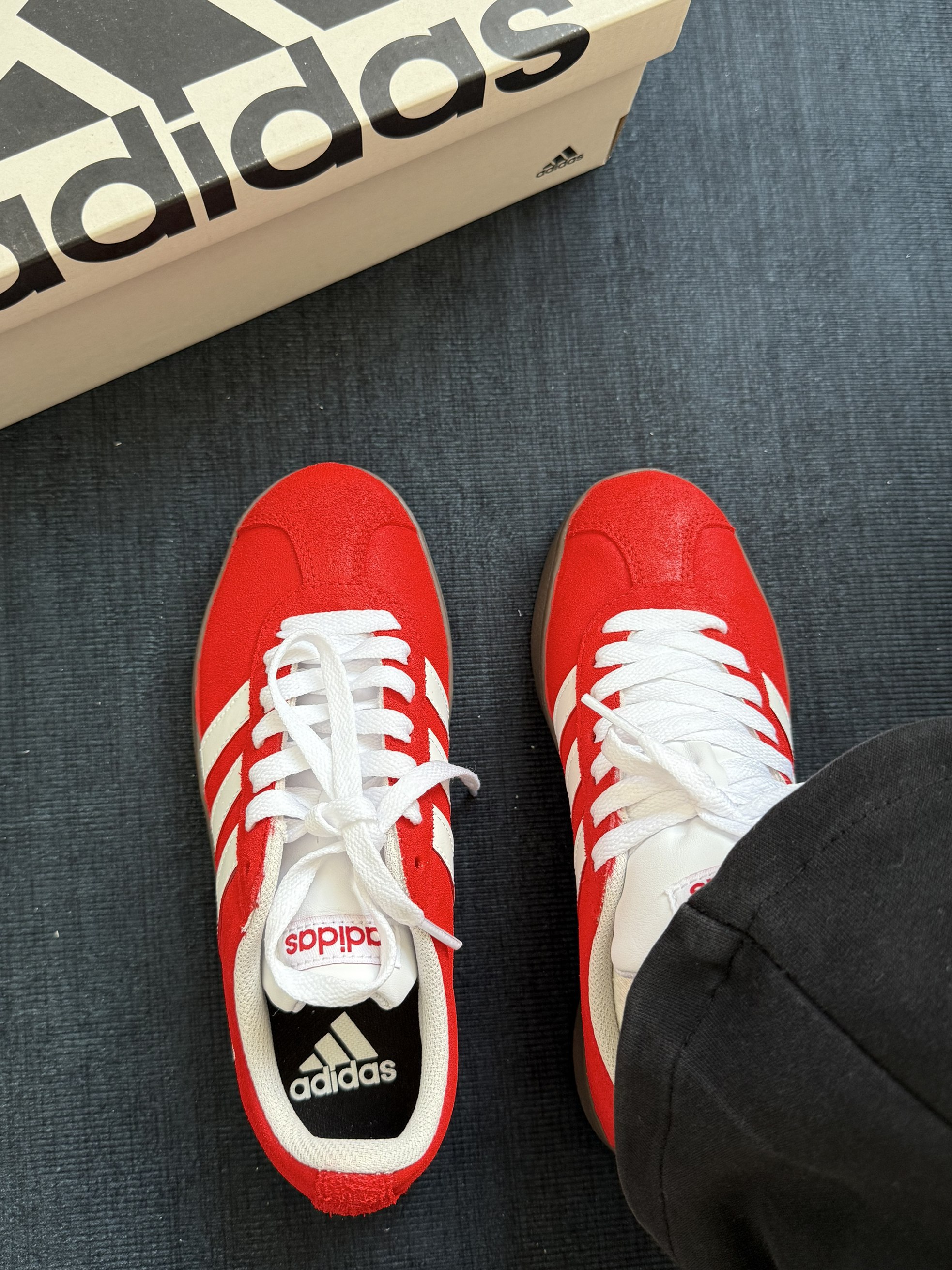 这双鞋的颜色很吸睛,颜值也超级的高,侧面还带小猫图案,非常的可爱😻。关键还超级的轻,日常穿也合适。#一脚蹬入秋天 #请把这双鞋子焊在脚上 #阿迪达斯adidas #开箱心动💗好鞋 #谁还没有红色复古德训鞋