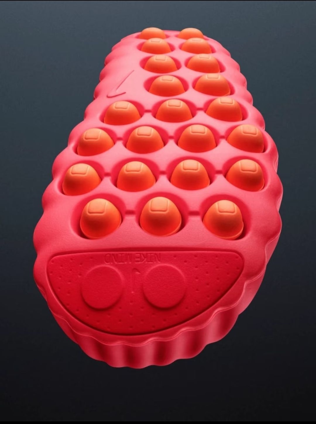 家人们!耐克这新鞋也太会整活了吧???这“Mind 001”看着跟平时的鞋完全不是一个线上的!整个鞋底红彤彤的,上面嵌了22个泡沫小凸起,跟脚底穴位那意思似的,说是走起来能跟活塞似的动?这上脚的感觉估计像穿鞋走在公园里的鹅卵石上。😂 还听说是耐克专门搞了个“心智科学部门”,找神经科学家一块儿捣鼓的,主打一个“脚和脑子连上线”。原理是踩这鞋能激活脚底的感官点,说是不管比赛前还是平时穿,能帮着集中注...
