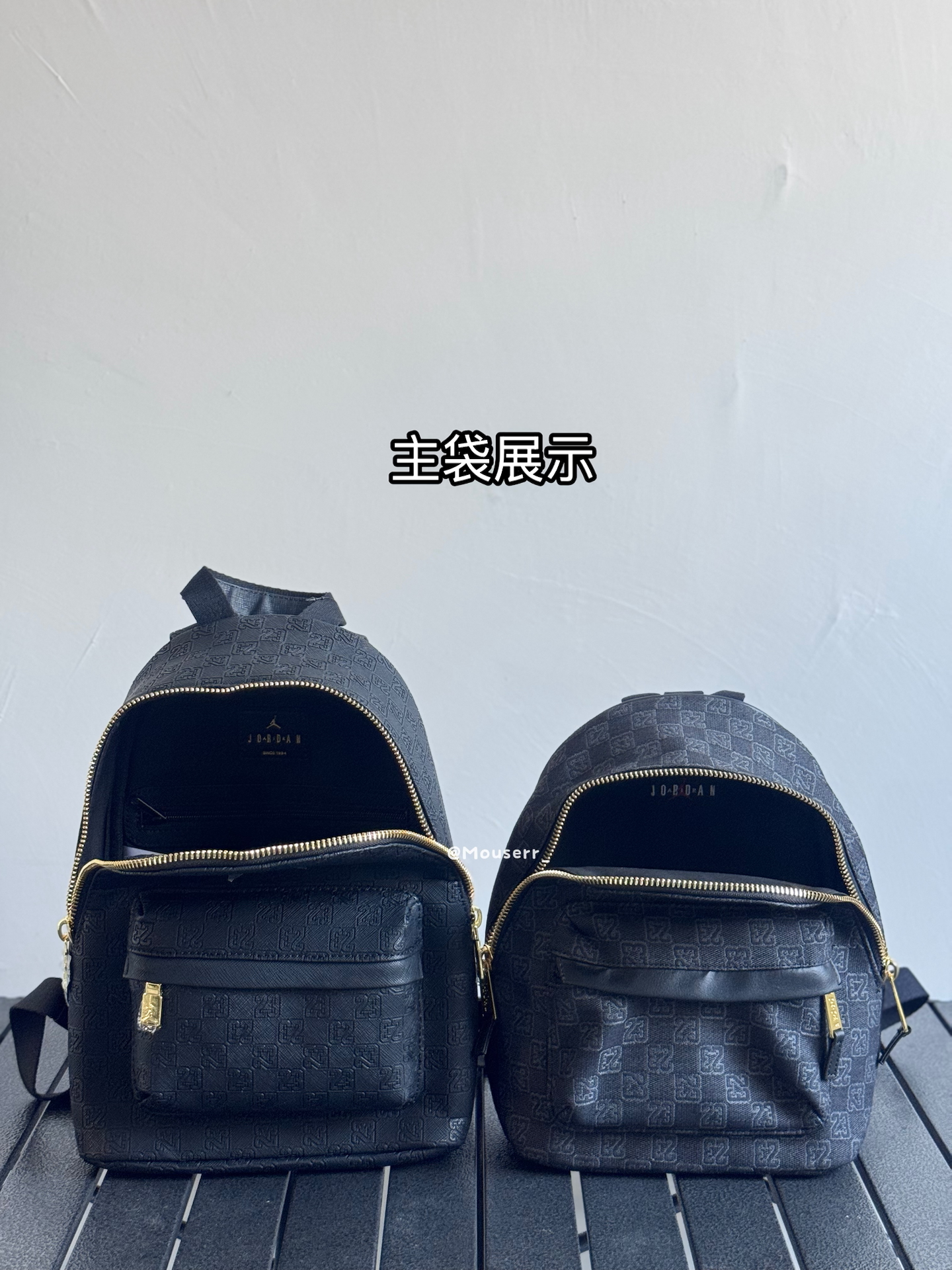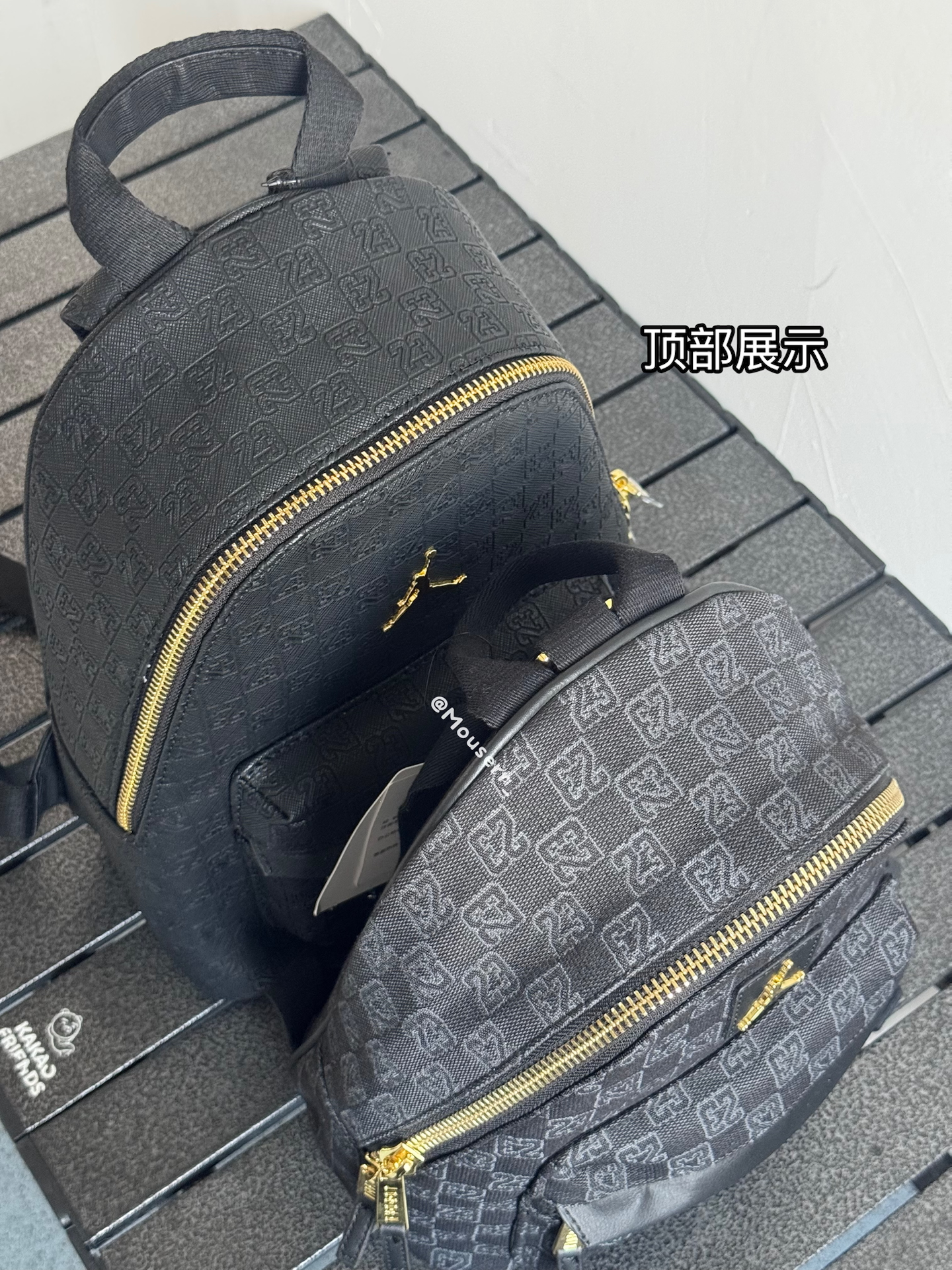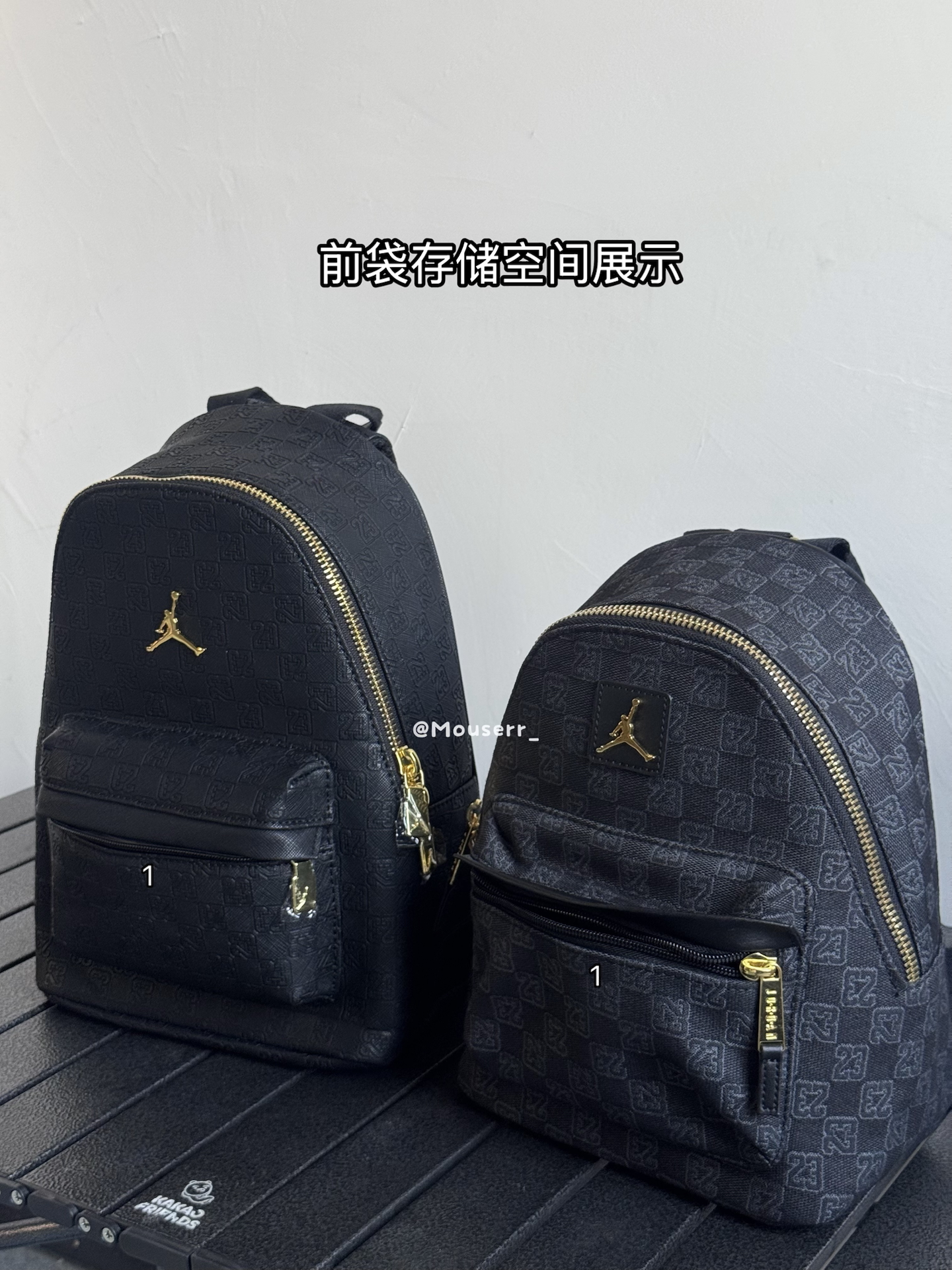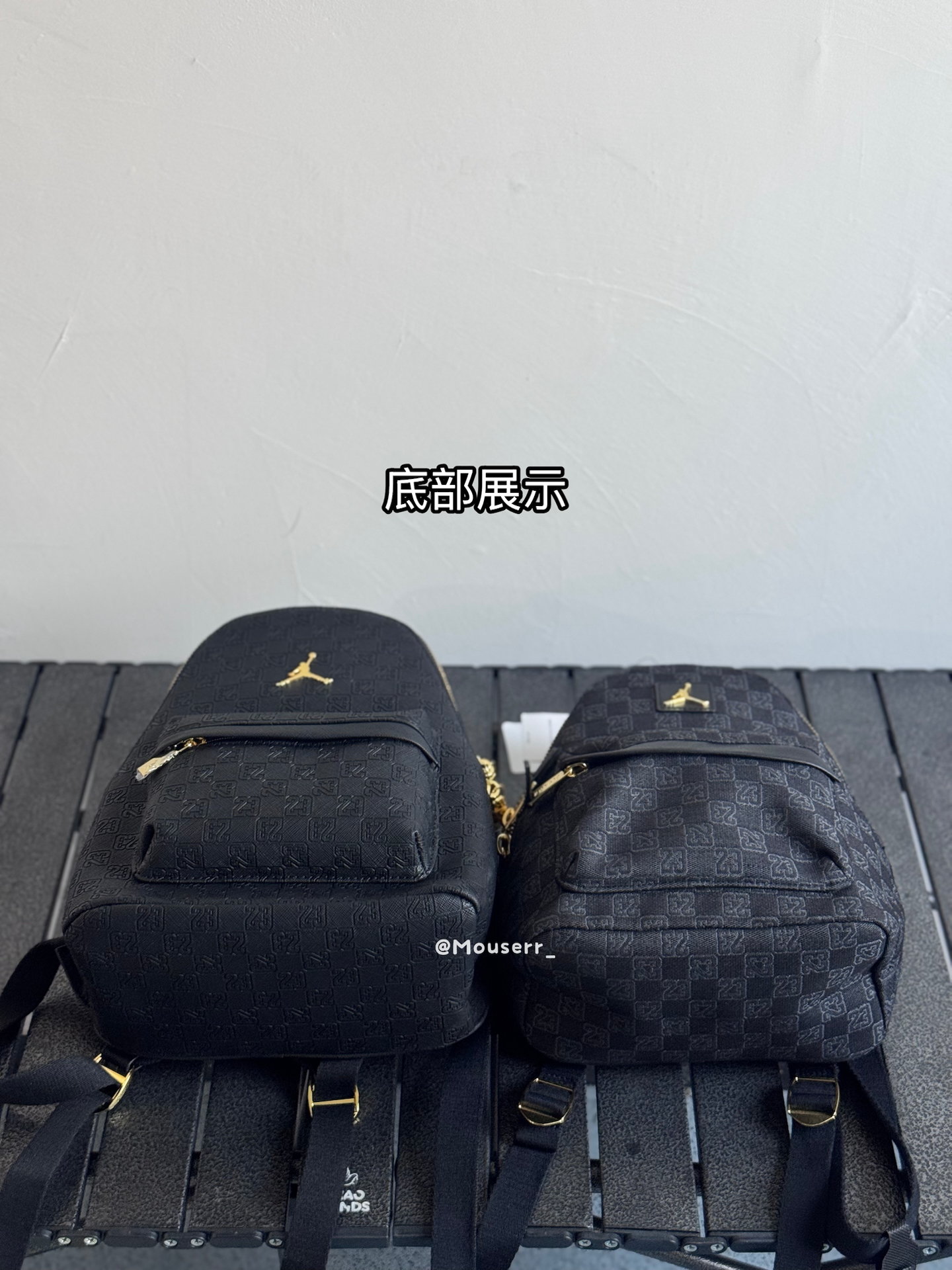 我入了两款Jordan迷你双肩包~左边皮革黑,皮面质感很在线,通勤背超有范儿;右边涤纶黑,小小只很可爱精致✨ 不过容量都不算大,装个手机钥匙化妆品差不多~黑金配色真的百搭,最近上班背它俩,穿搭都省事儿啦🥳