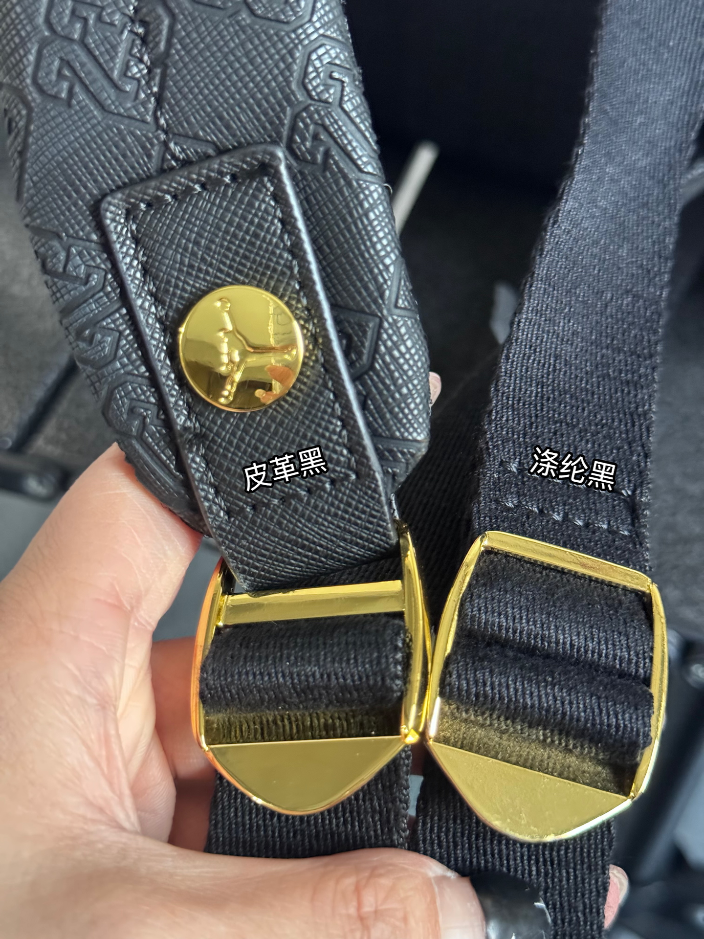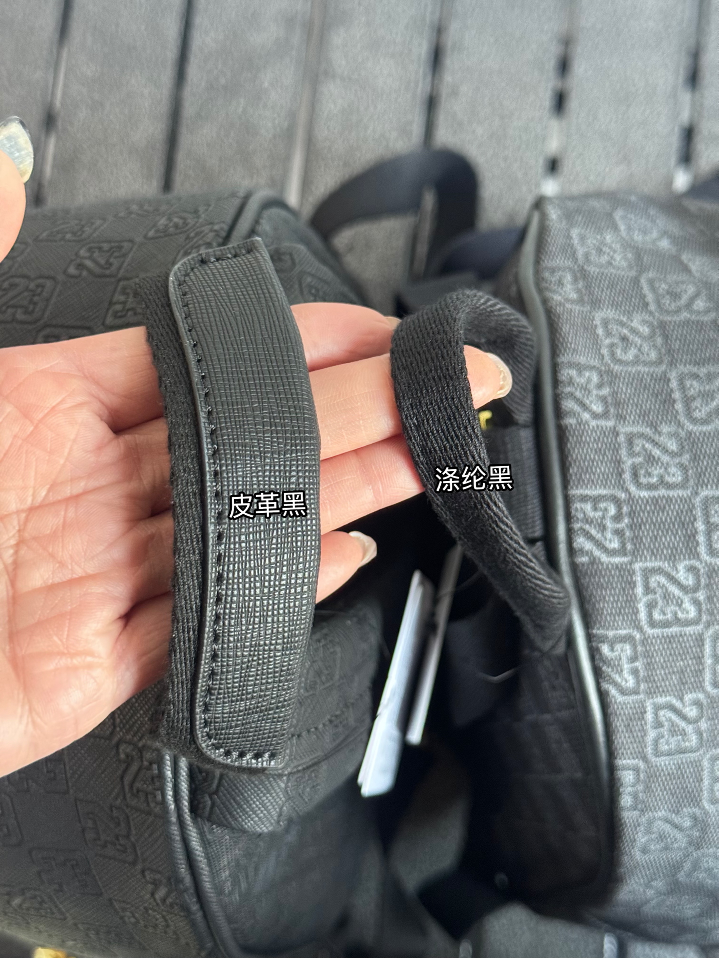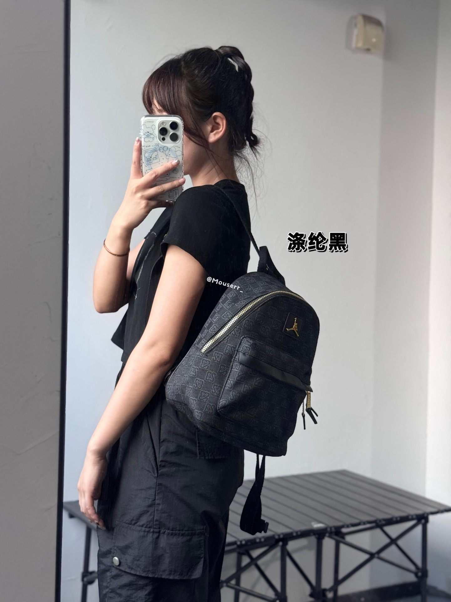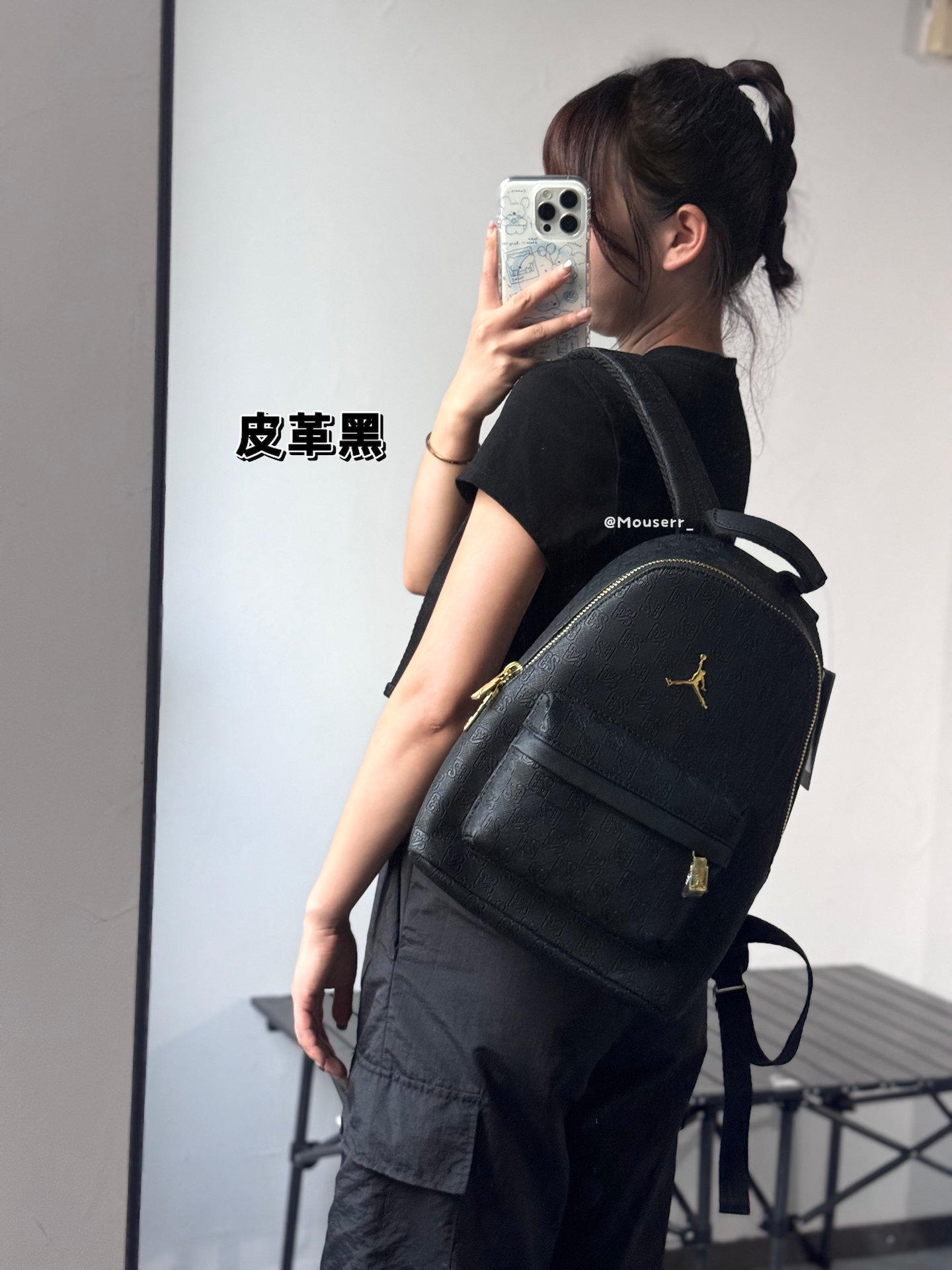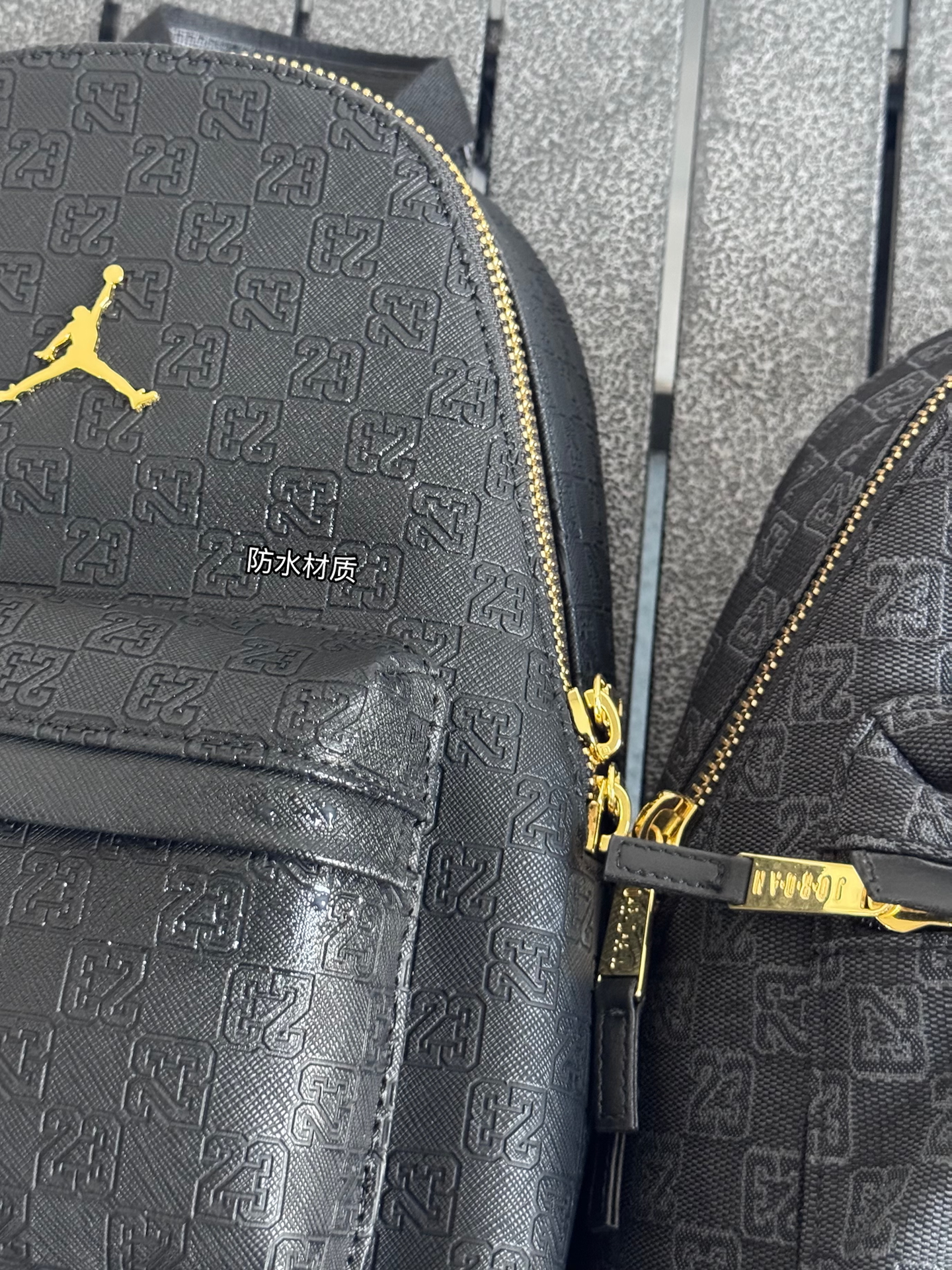 我入了两款Jordan迷你双肩包~左边皮革黑,皮面质感很在线,通勤背超有范儿;右边涤纶黑,小小只很可爱精致✨ 不过容量都不算大,装个手机钥匙化妆品差不多~黑金配色真的百搭,最近上班背它俩,穿搭都省事儿啦🥳