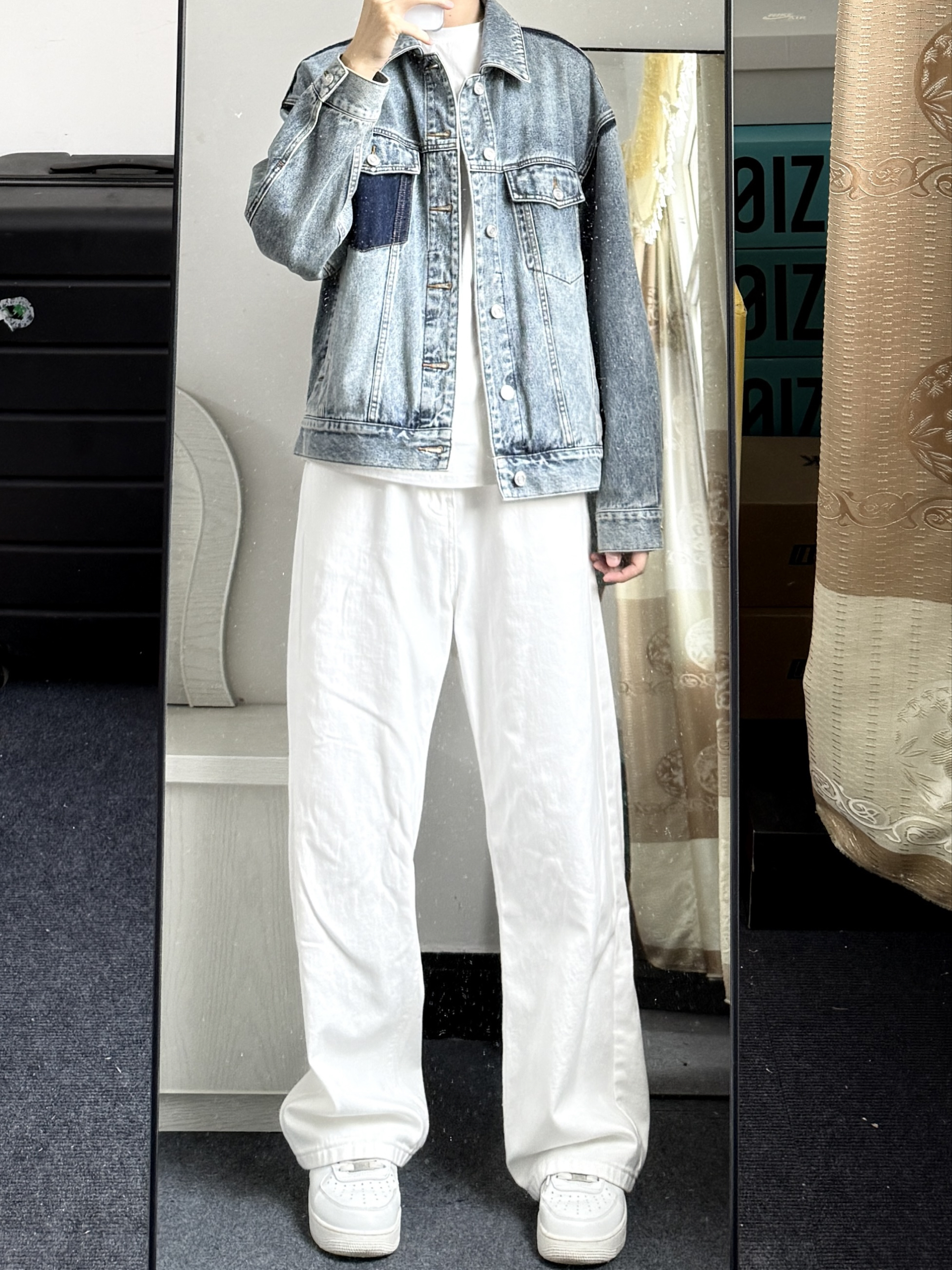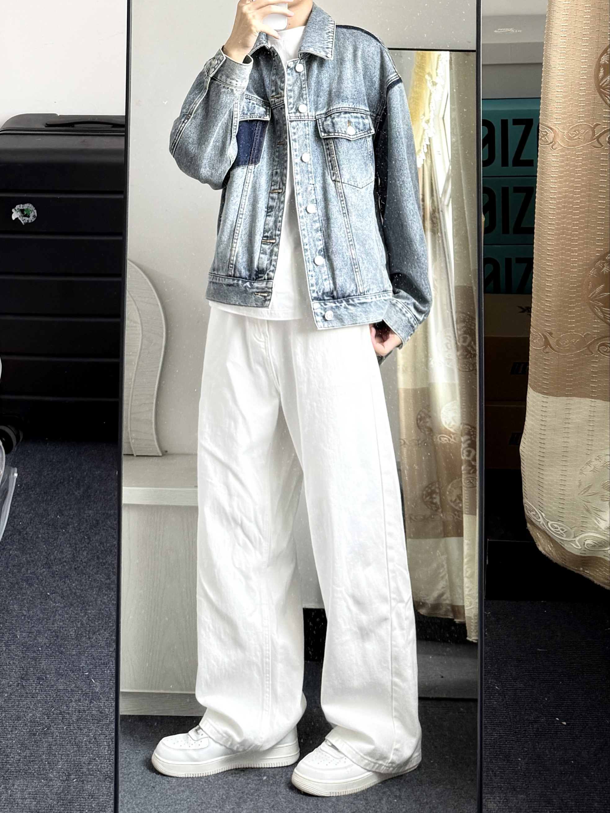这条白色牛仔裤真的是年度穿搭宝藏单品 穿腻了黑色就可以尝试一下白色 干净又清爽好看🤩怎么穿都帅气