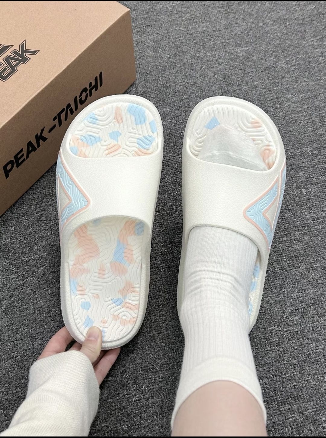 人鱼姬拖鞋也泰甜嫩啦🌷 匹克也泰会出配色了 这双态极拖鞋好奶呼呼啊 马卡龙白蓝粉色 上脚嫩嫩的好少女~ 态极科技中底 我穿着脚感软弹弹的,很舒服 居家外穿都可以 尺码选大一码就行