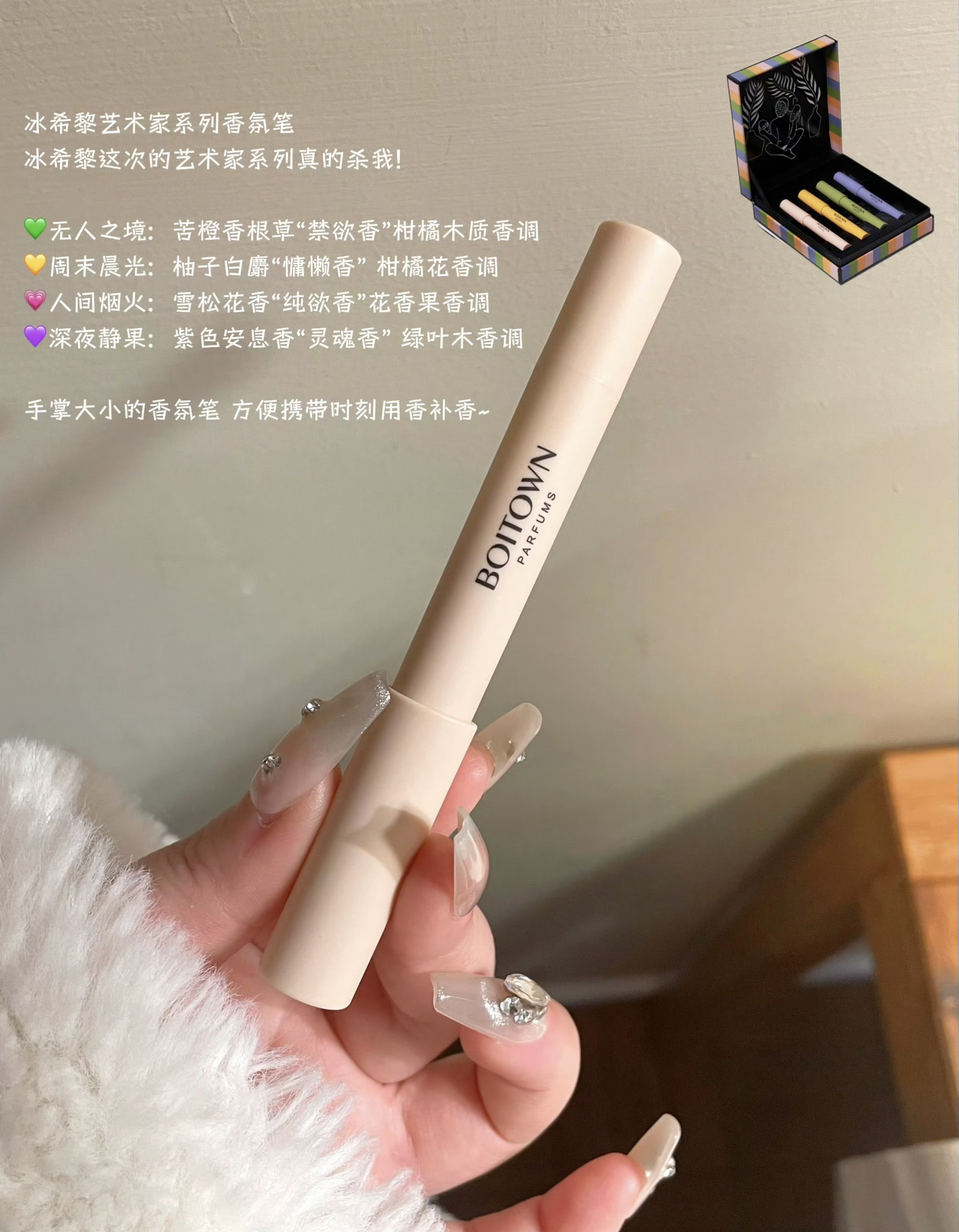 先夸3CE这支冷木桃,小蜜勺刷头干净又方便,果冻质地涂开是水光嘟嘟感,低饱和裸粉豆沙调调刚好,松弛淡颜感涂了就美晕,日常涂八百次都不腻~ 然后是冰希黎香氛笔,艺术家系列颜值太戳了!手掌大小揣兜里随时补香,无人之境的禁欲木质香、周末晨光的慵懒柑橘香,每支都好闻到想焊身上~ 最后是菲丽菲拉12#蜜桃砂橘,嫩到当年排第一的色号真不是吹的,像把蜜桃甜裹在唇上,女学生党人气王实锤,等我单独发试色给你们看...