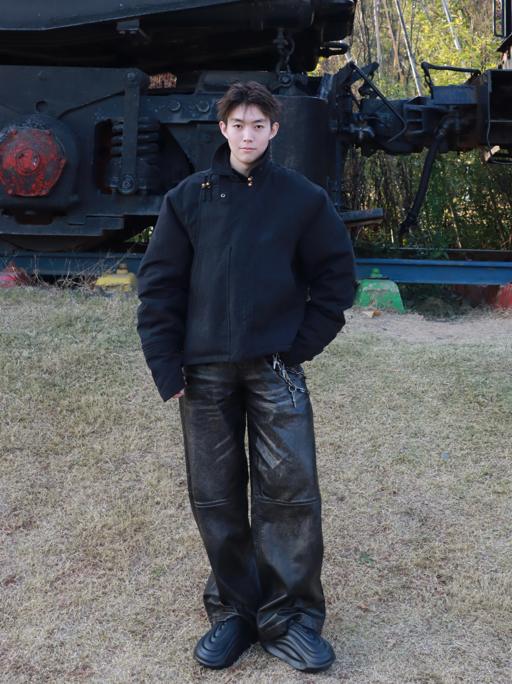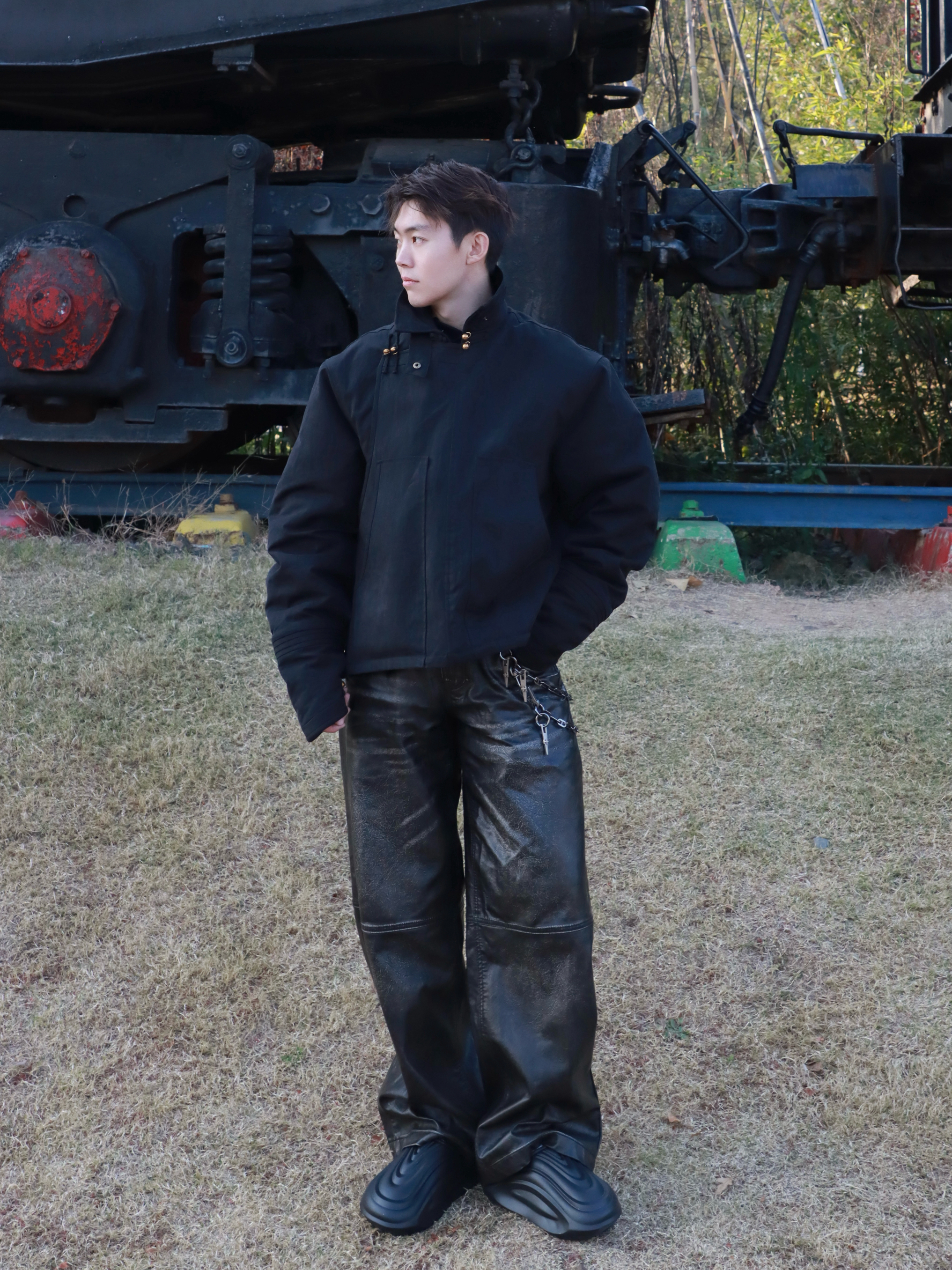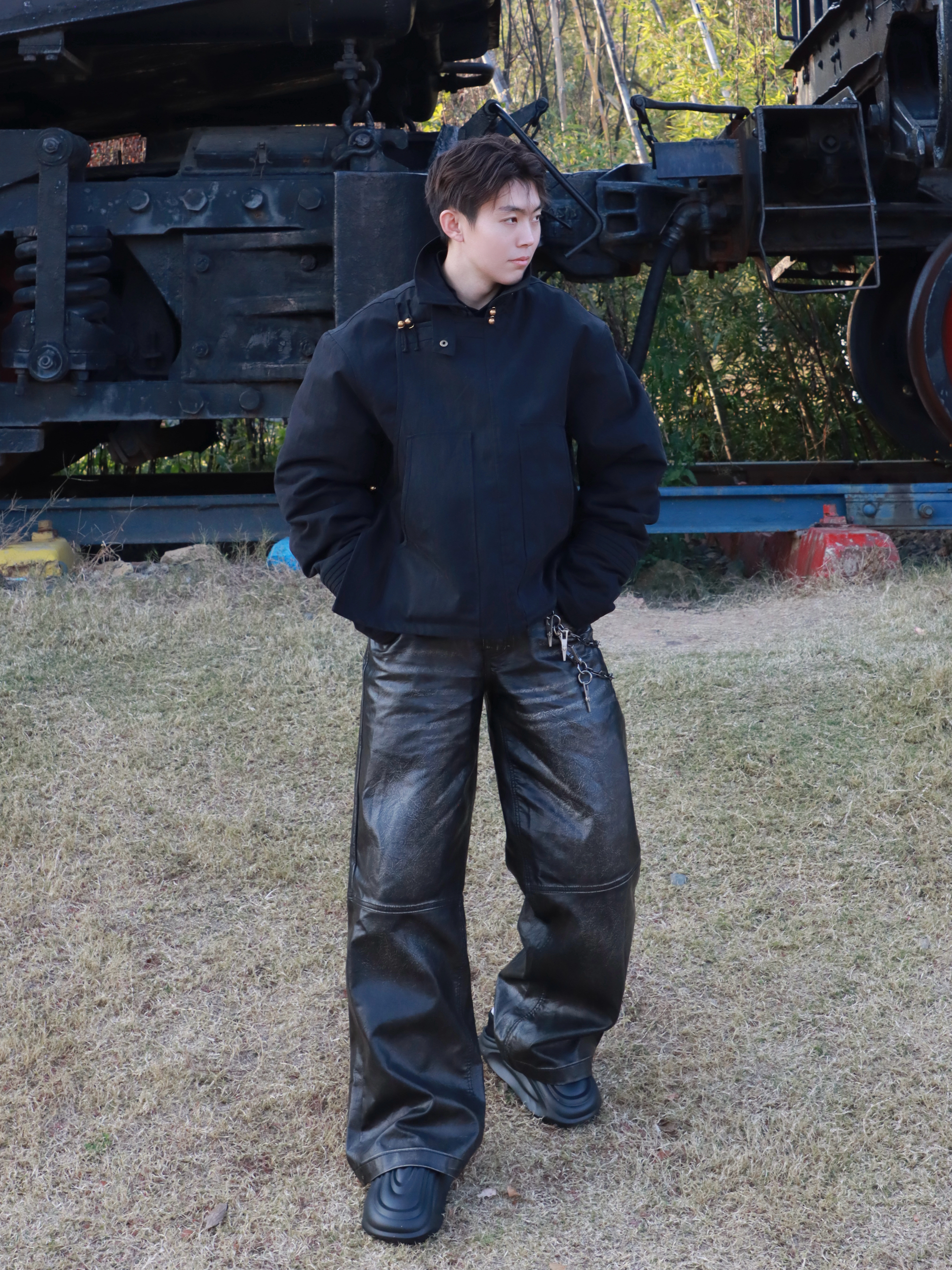 178cm 75kg日常ootd宫廷风上衣搭配作旧皮裤一双黑色雪地鞋 一身街头风拿捏住了🤏
