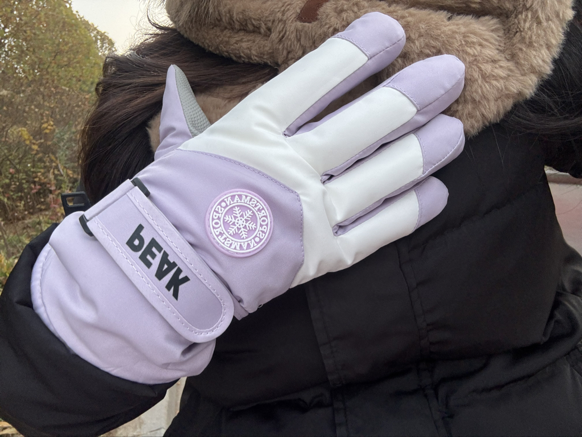 “谁懂啊!这手套一到手直接戳中我心巴💜 淡紫+奶白配色巨温柔,配我那件黑羽绒服绝了! 触屏是真的灵,等公交刷手机不用冻手摘手套,这点我给满分! 魔术贴一粘手腕那叫一个严实,风都灌不进来~ 唯一小bug:太爱沾灰了(浅色的痛😤),但好看就行! 冬天通勤党闭眼冲,颜值保暖双在线! 有没有同款浅色手套爱好者?你们都是咋打理的啊🤔 快交出你们的“抗脏秘籍”!”