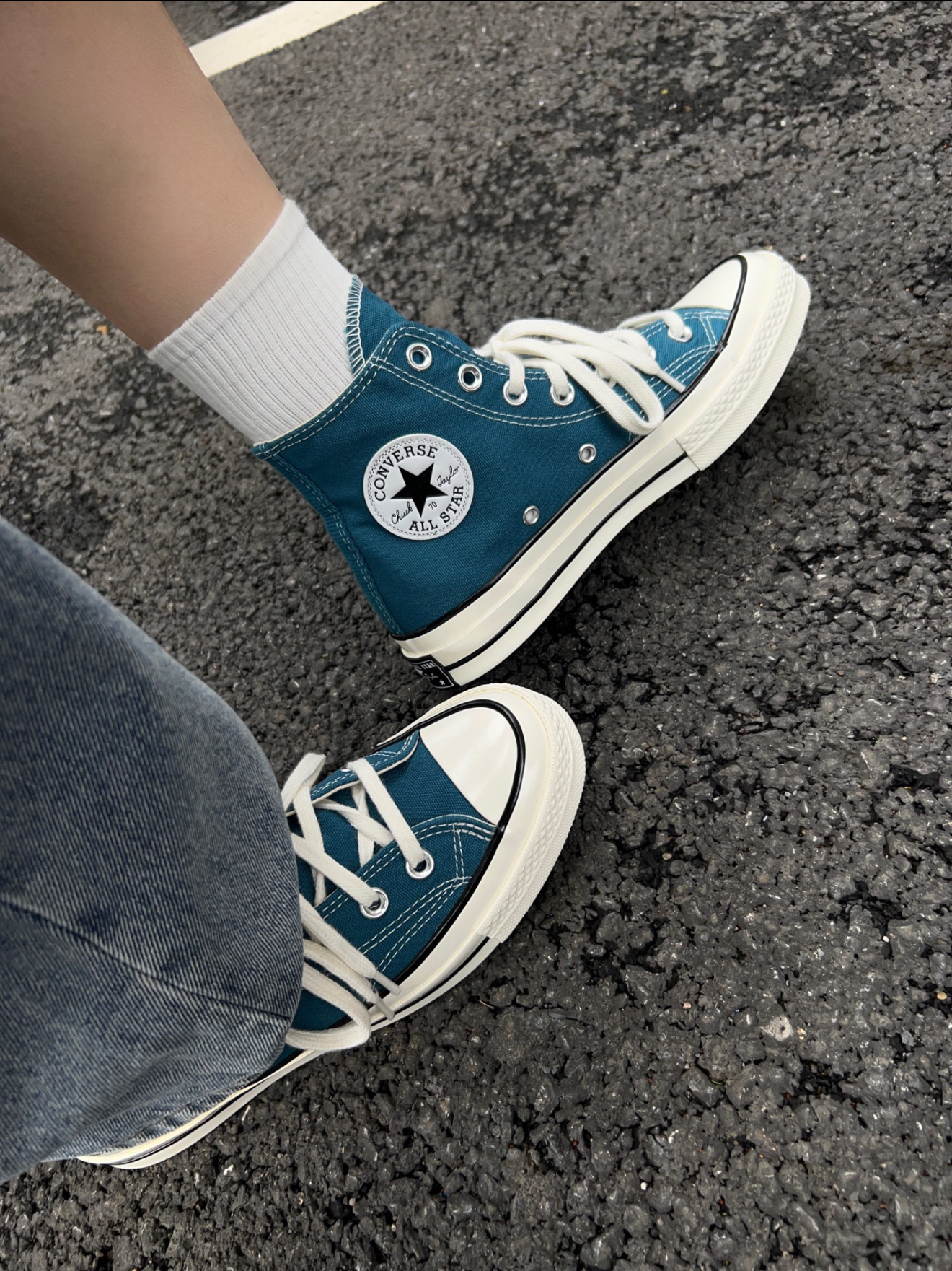 JEANS一双匡威1970’s解锁街头风穿搭我愿称之为匡威1970~’s里最好看的配色特别显白的孔雀蓝,永不过时的高级色系 上脚显瘦,鞋底软硬适中