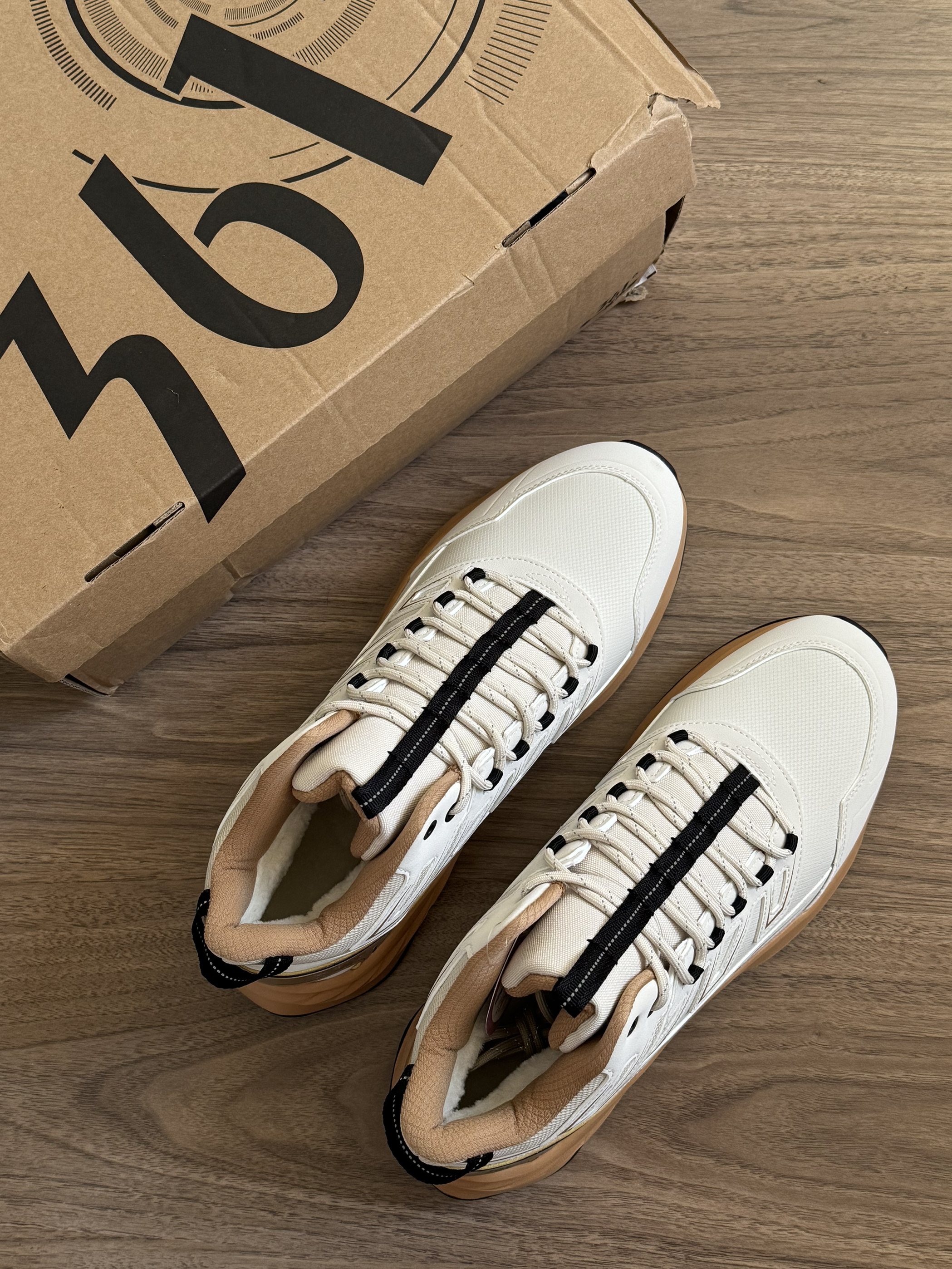 冬天不能没有这双耶~ 燕麦拿铁配色,一眼喜欢住‼️真的好温柔! 上脚暖呼呼的,包裹感很好, 皮革鞋面,能防止水滴渗透✔️ 穿着很好看👀 尺码建议拍大一码!