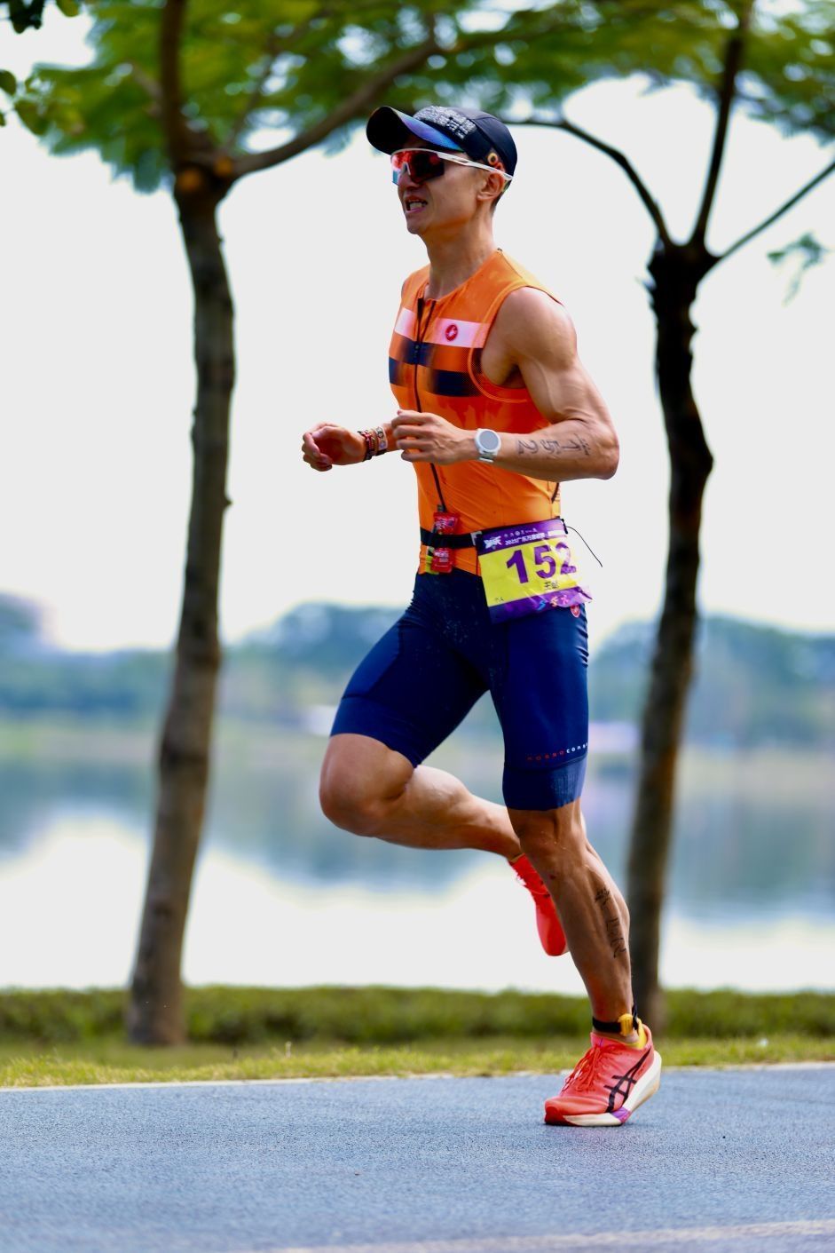 我把这次跑步当成上马前的「模糊疲劳强度课」,虽然太阳暴晒,但一路浇水降温,体感挺不错。1小时21分完成,赛后听说应该是跑步段全场最快。不过前两项太拉跨,跑再快也追不回来。