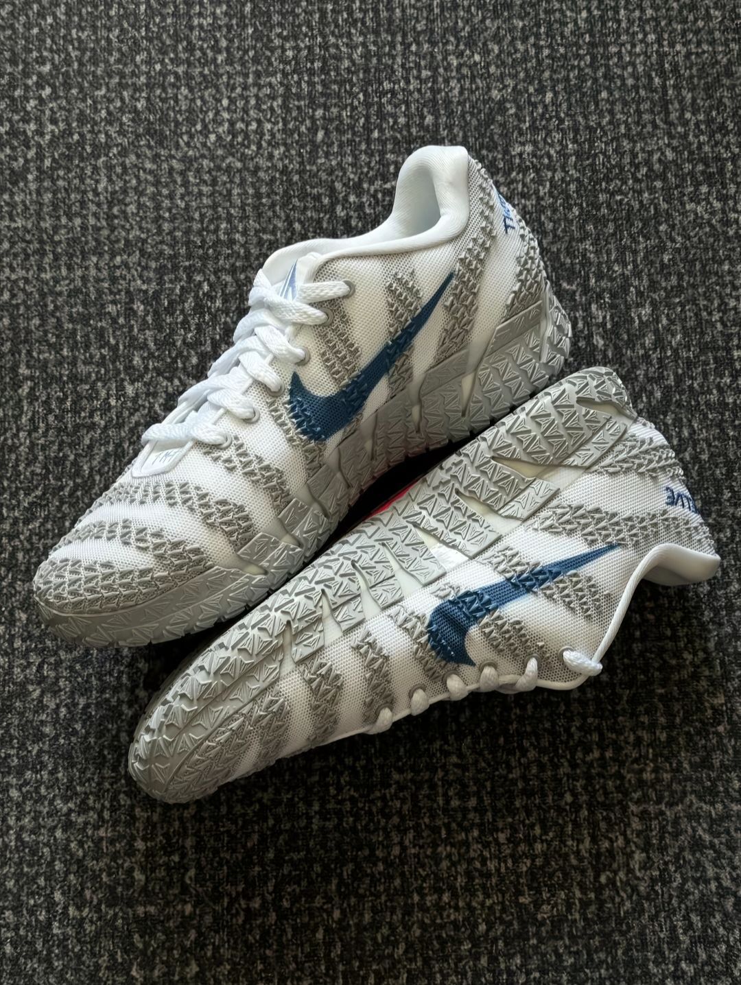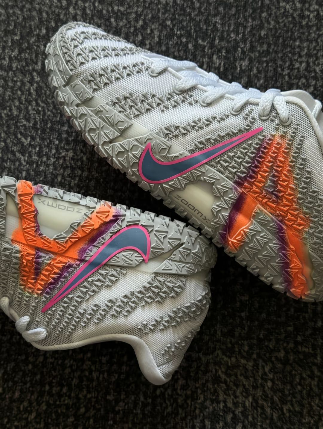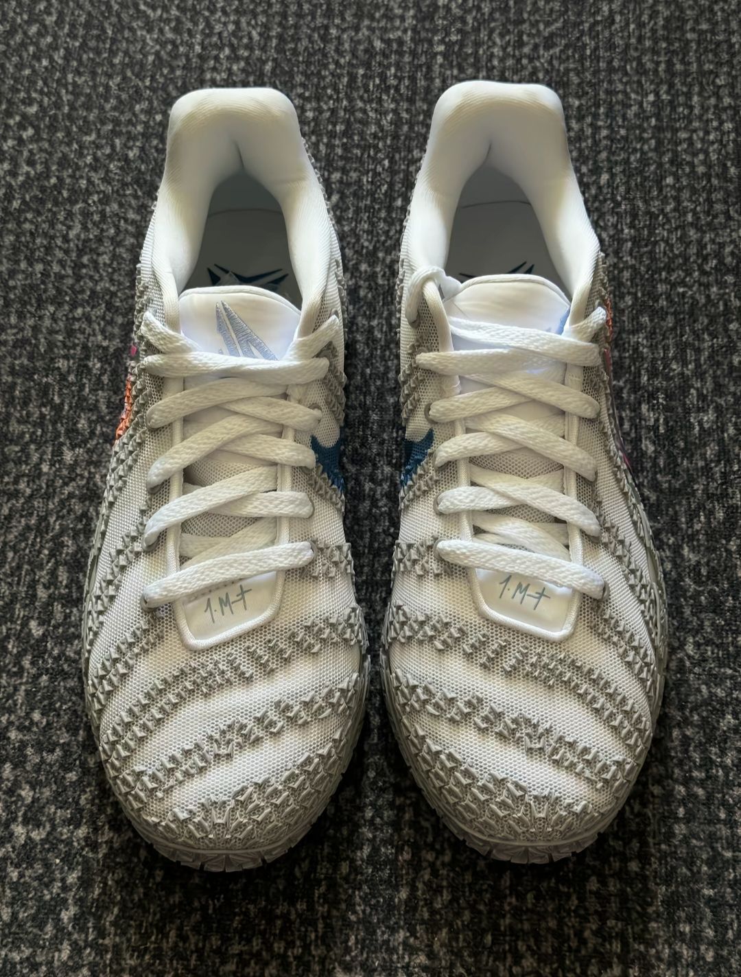 上脚软弹挺明显,ZoomX泡棉踩起来不塌,突破蹬地有反馈,缓震对中等体重挺友好。包裹贴合,后跟不晃,但脚踝处有点空,得系紧鞋带才安心。 抓地还行,室内不滑,就是水晶底容易吸灰。鞋楦不算宽,宽脚建议试穿,而且没有专门的防侧翻设计,脚踝力量弱的得注意点。 整体是双不错的实战鞋
