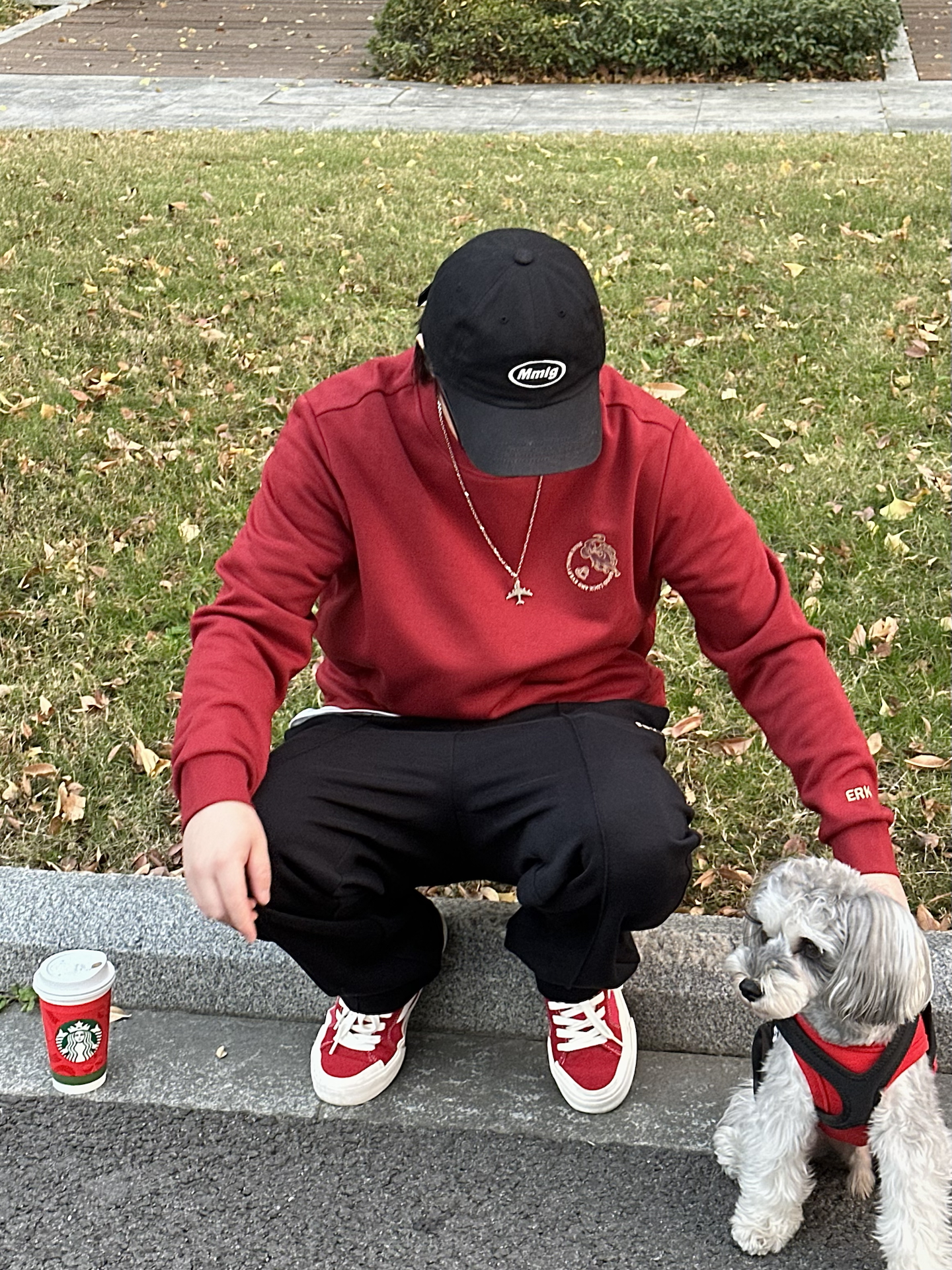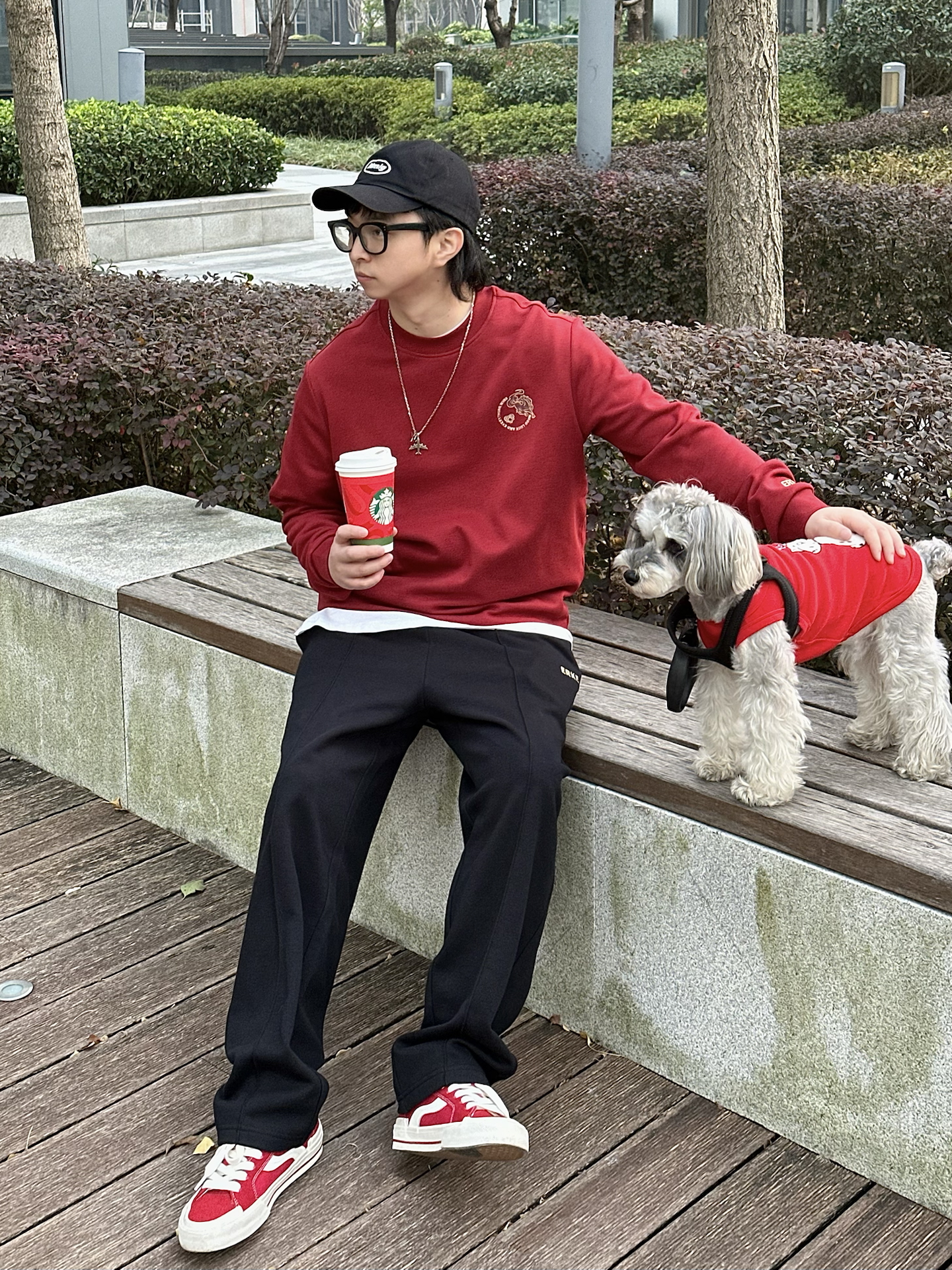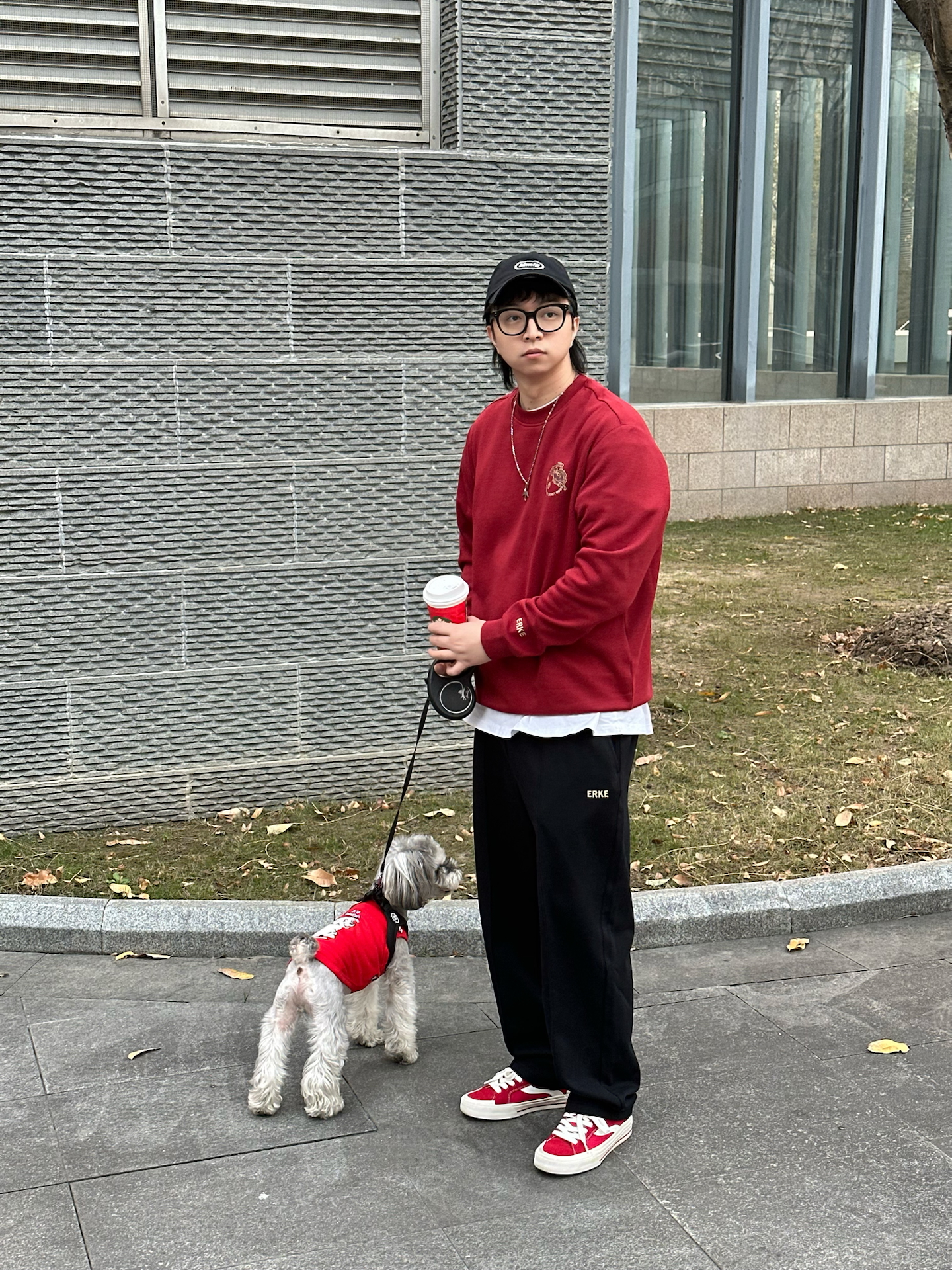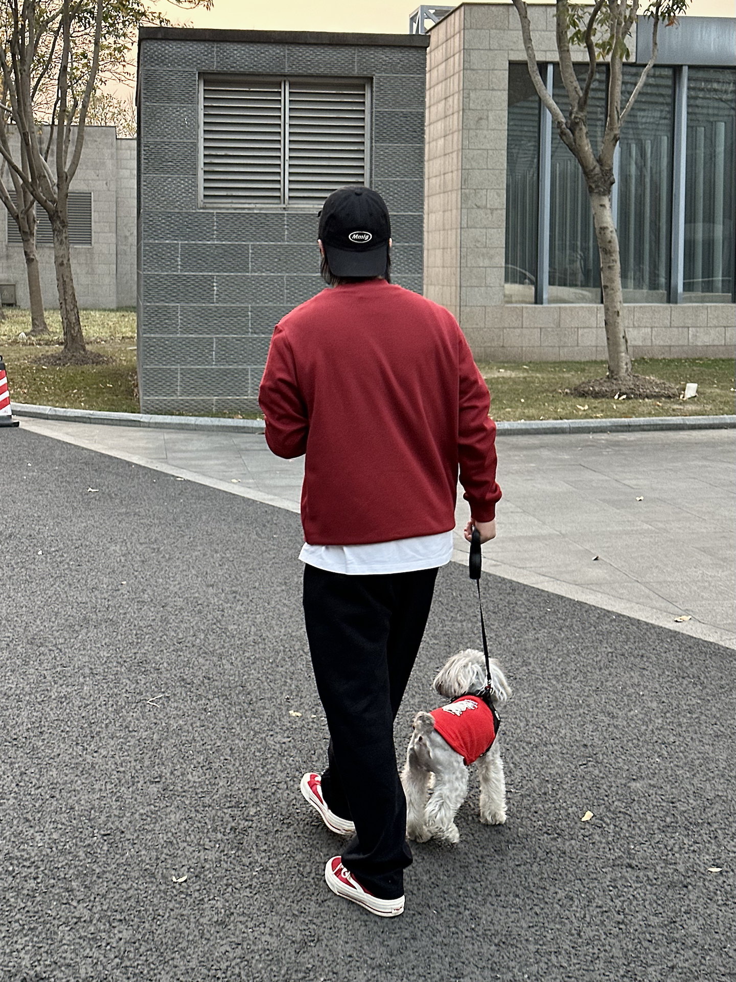 哈喽👋🏻大家好哇 这里是🪨石地夫的穿搭小日记📝 - 今天出门遛狗🦮 穿了红色CNY马年限定卫衣🧨 基础款的宽松版型,很百搭👏🏻 适合明年本命年🐎的我 裤子也是同系列的新年款 金色刺绣very高级✨ 是我喜欢的阔腿裤型☑️ 内里加绒好暖和🔥 #今天出门穿什么 #秋冬穿回舒适区 #我的入冬神裤 #冬季穿搭帅出型 #穿搭博主ootd