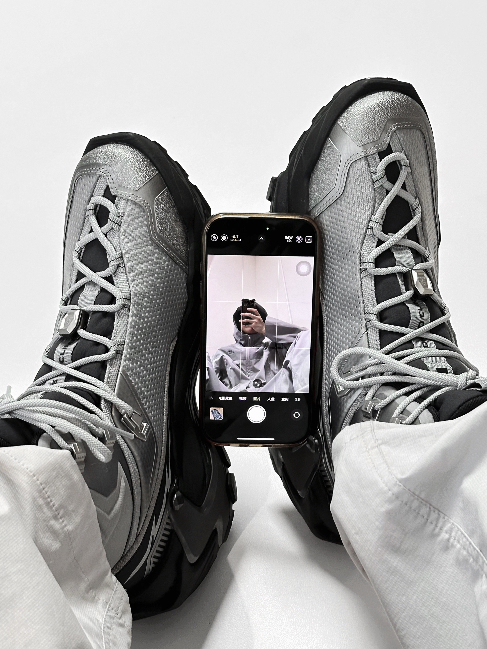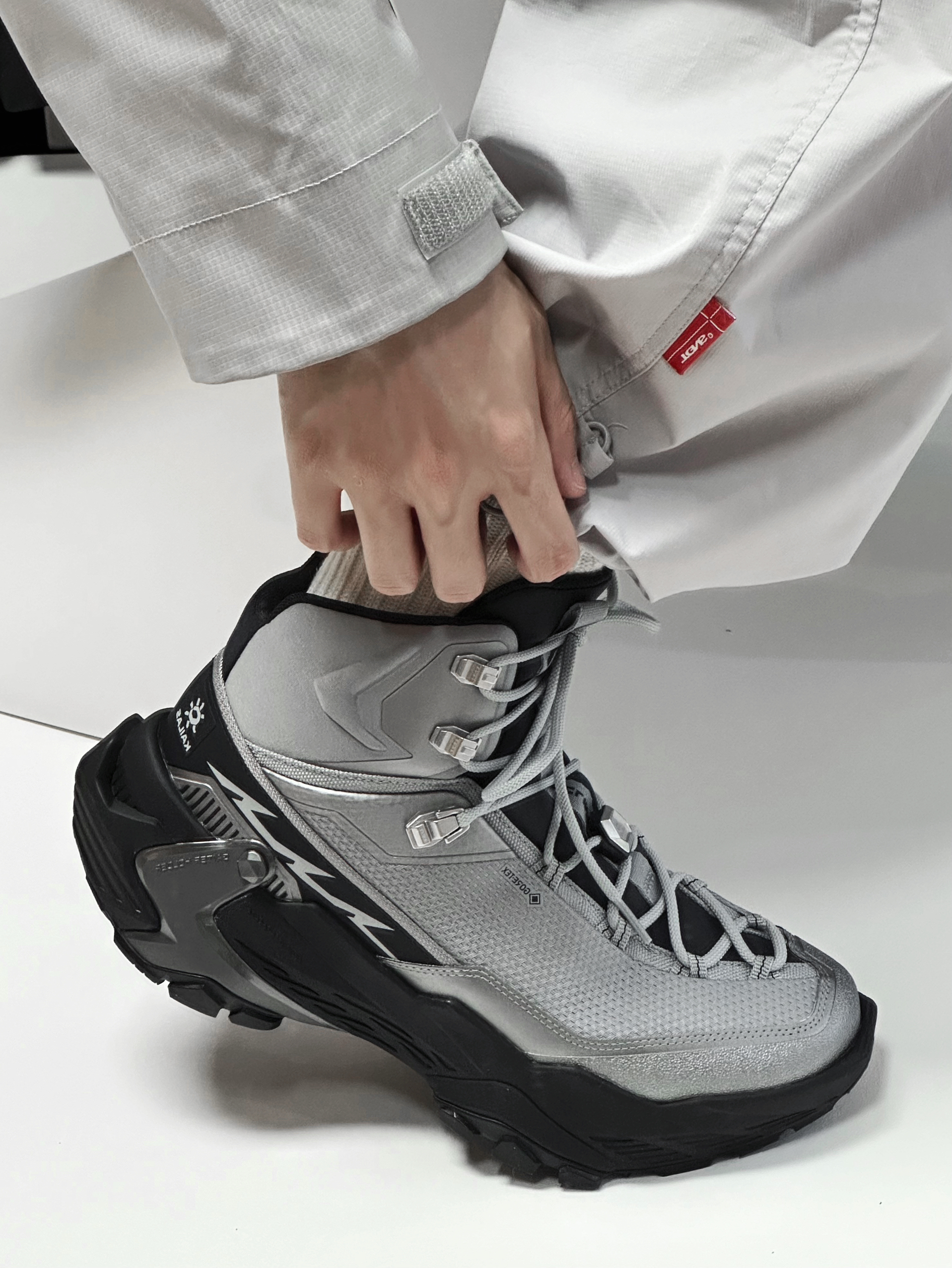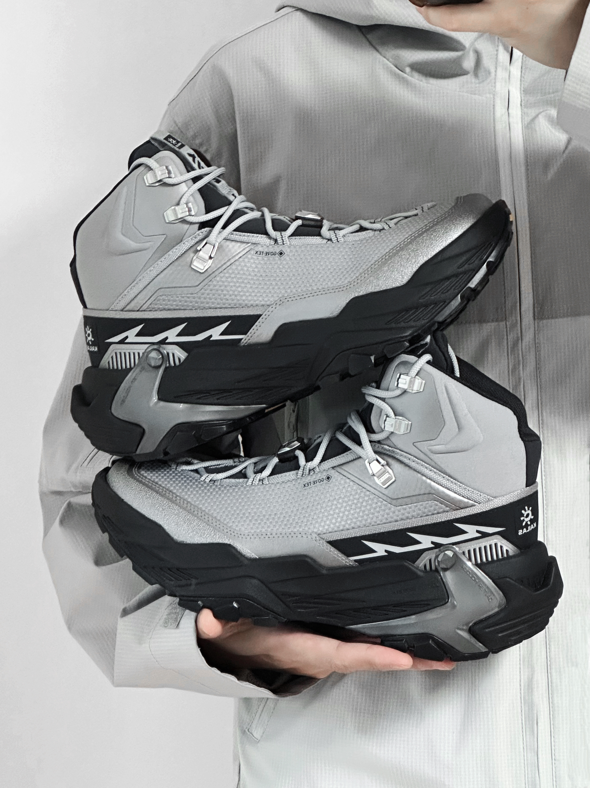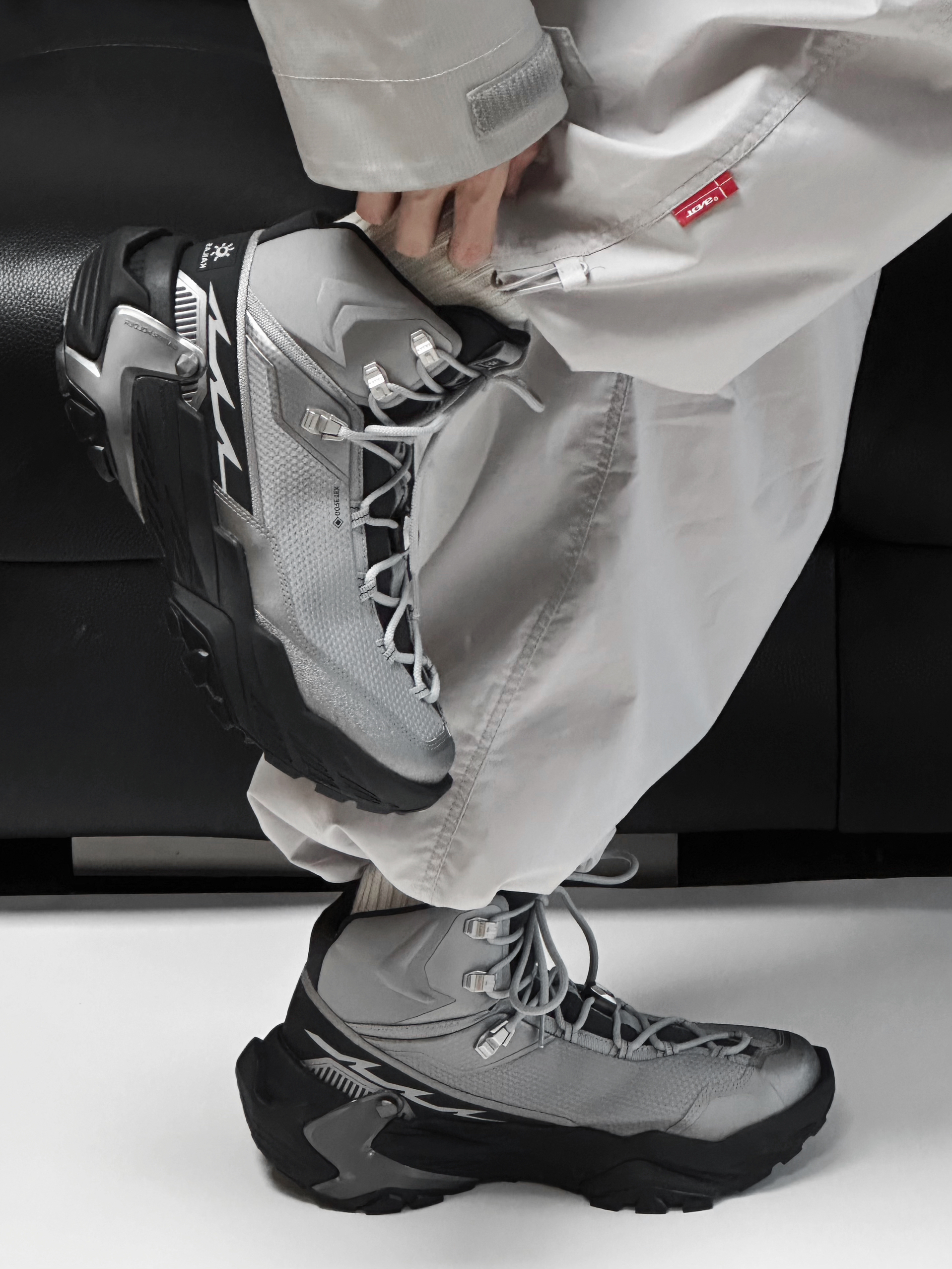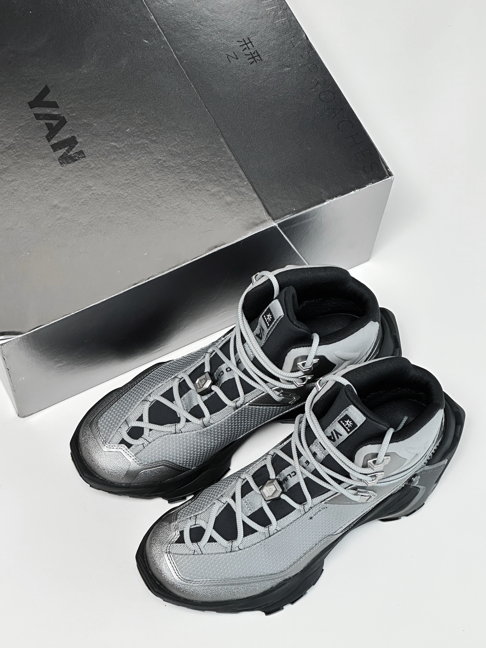 穿一次真的很难不会爱上YAN 低饱和的合金灰和黑色大底搭配 高级感满满 亮银色的几何线条点缀 未来机能感十足 GORE-TEX内靴 防水透汽 全掌 V底 抓地防滑耐磨 可以应对户外复杂地形 EVA中底回弹十足 城市日常通勤也很舒适 真的是能够做到城市到山野的无缝切换