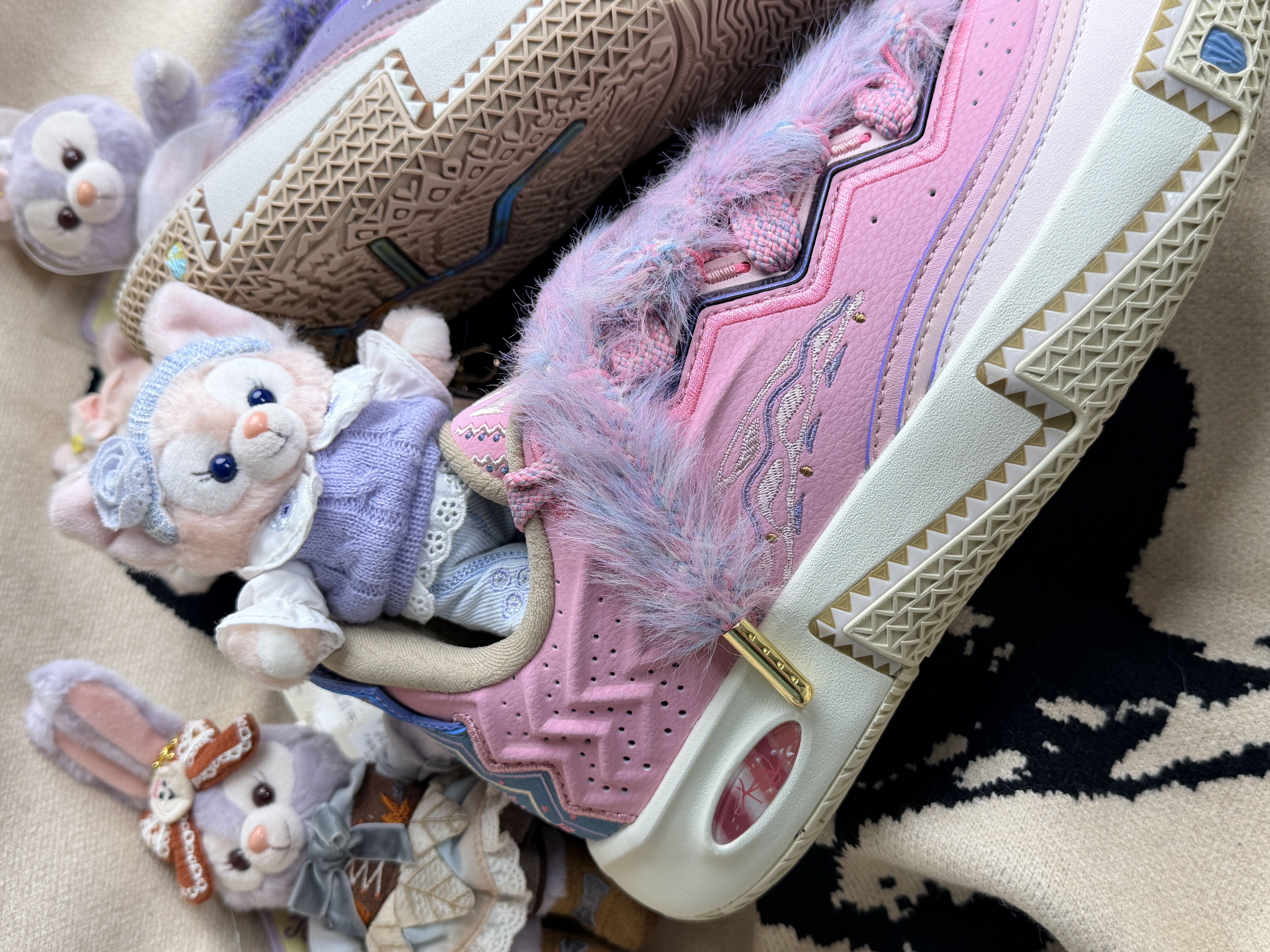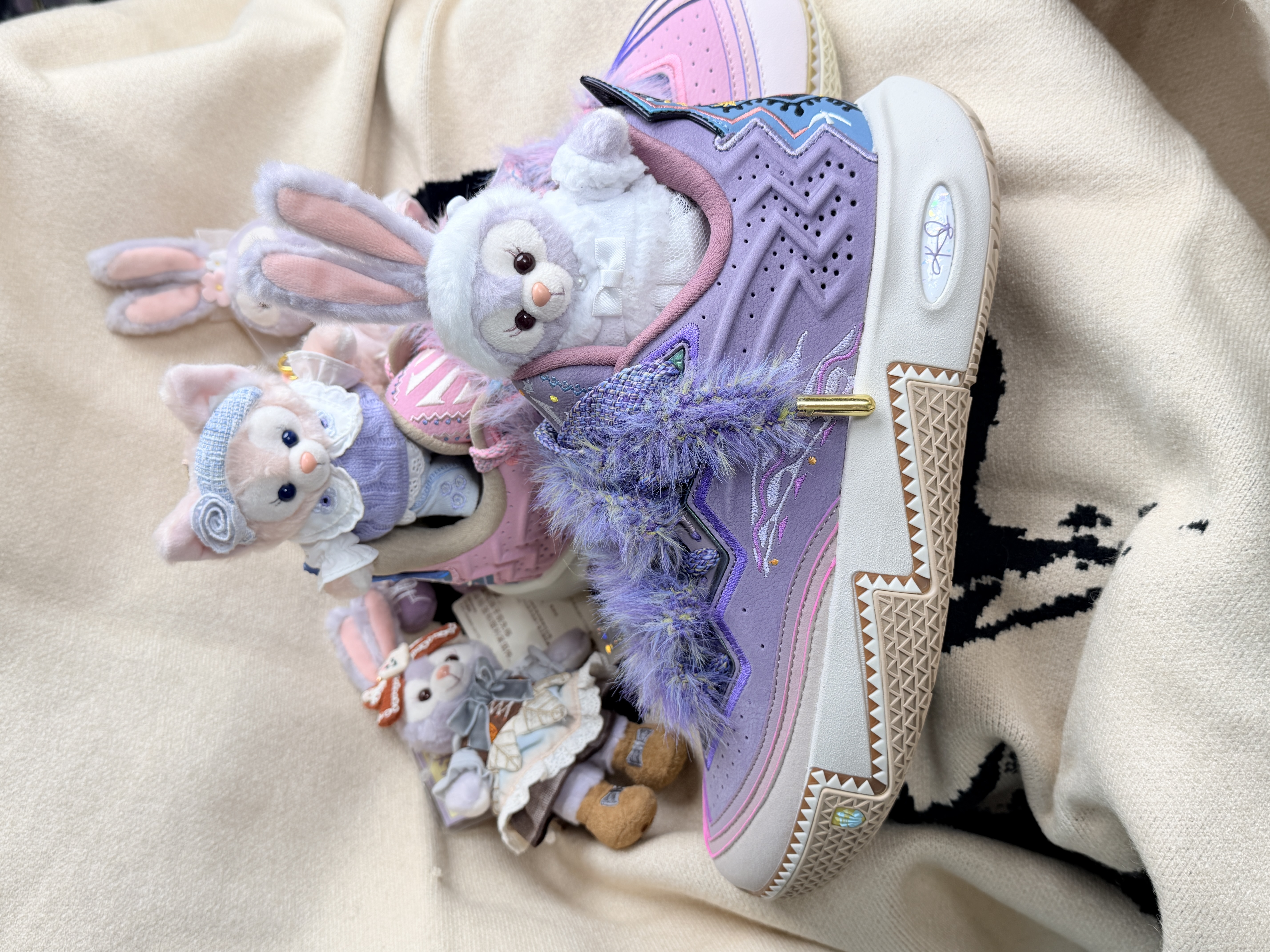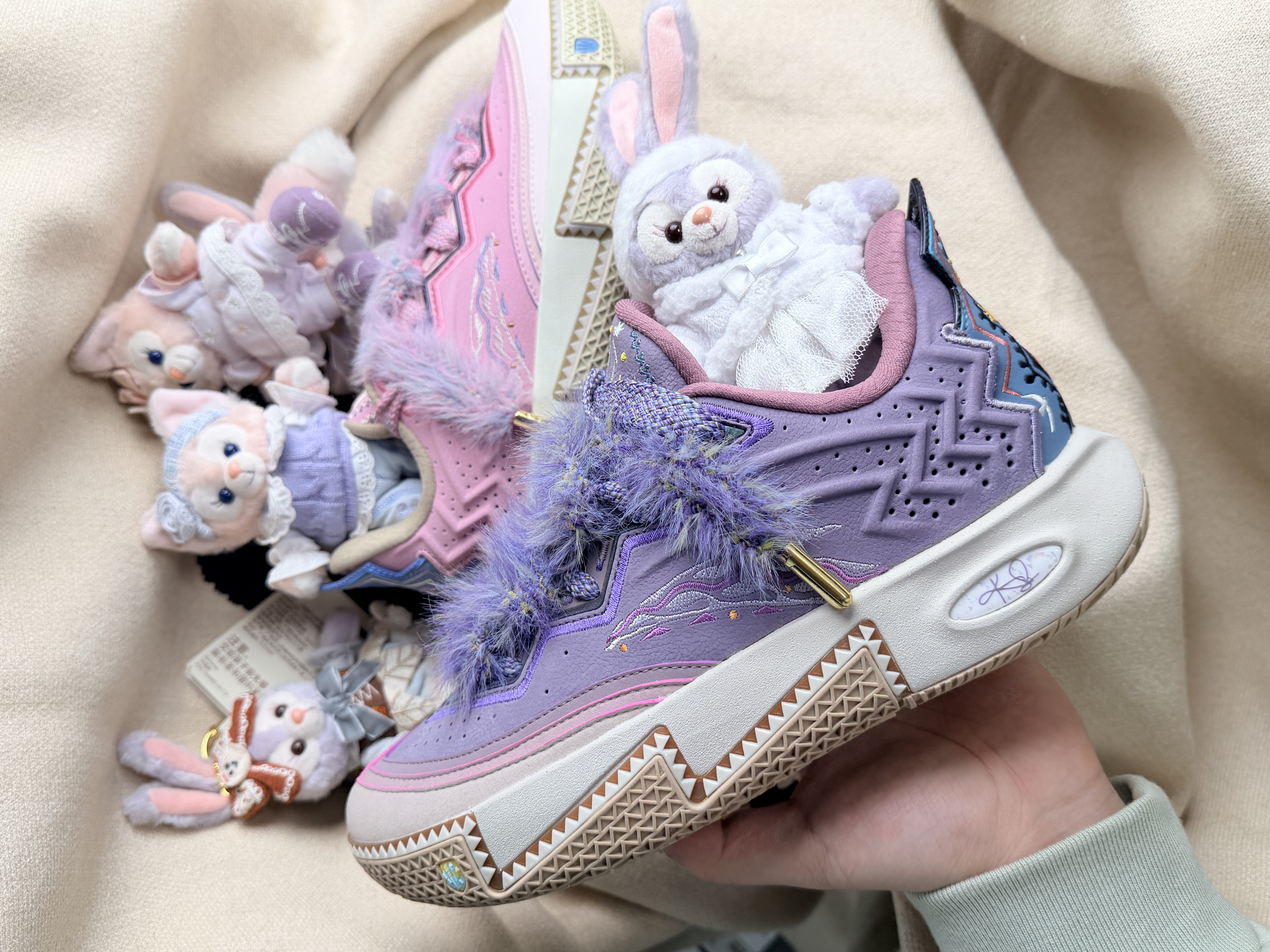 谁懂啊!欧文二代KAI 2这波配色直接戳中了我的💘,女朋友也特别喜欢 首发「球场艺术家」像把星黛露的薰衣草色云肩缝在了鞋上! 毛茸茸鞋带+梦幻紫渐变,连鞋舌都像兔子耳朵软乎乎的🐰 鞋身的刺绣像星黛露裙子上的蕾丝边,自带柔光滤镜✨ 而这次给女儿阿祖莉的「小公主配色」,直接是琳娜贝儿本狐! 奶fufu的樱花粉+毛绒鞋带,鞋侧的刺绣像小狐狸的尾巴尖🦊 连鞋盒都像童话书封面,这哪里是实战鞋,明明是...
