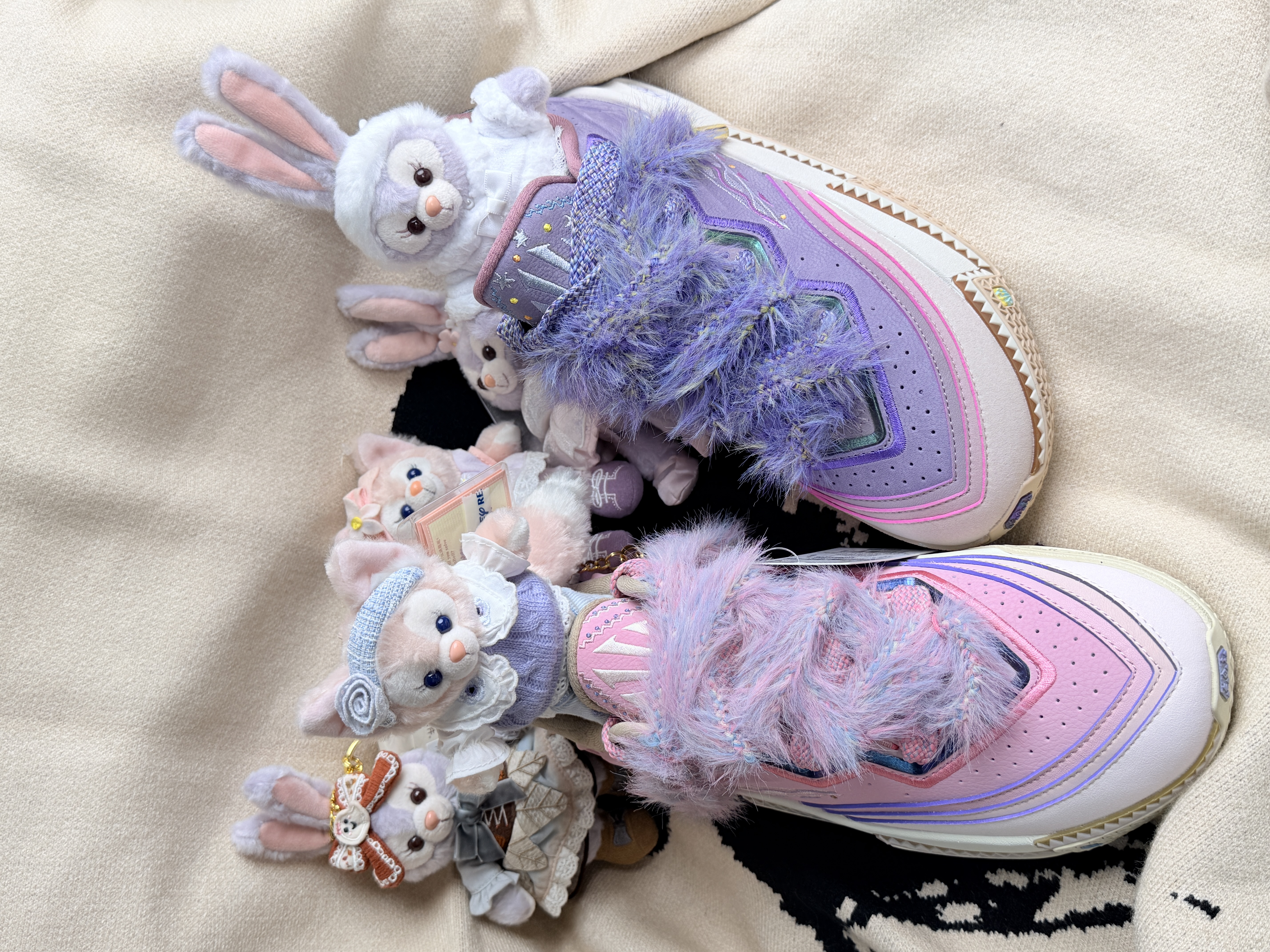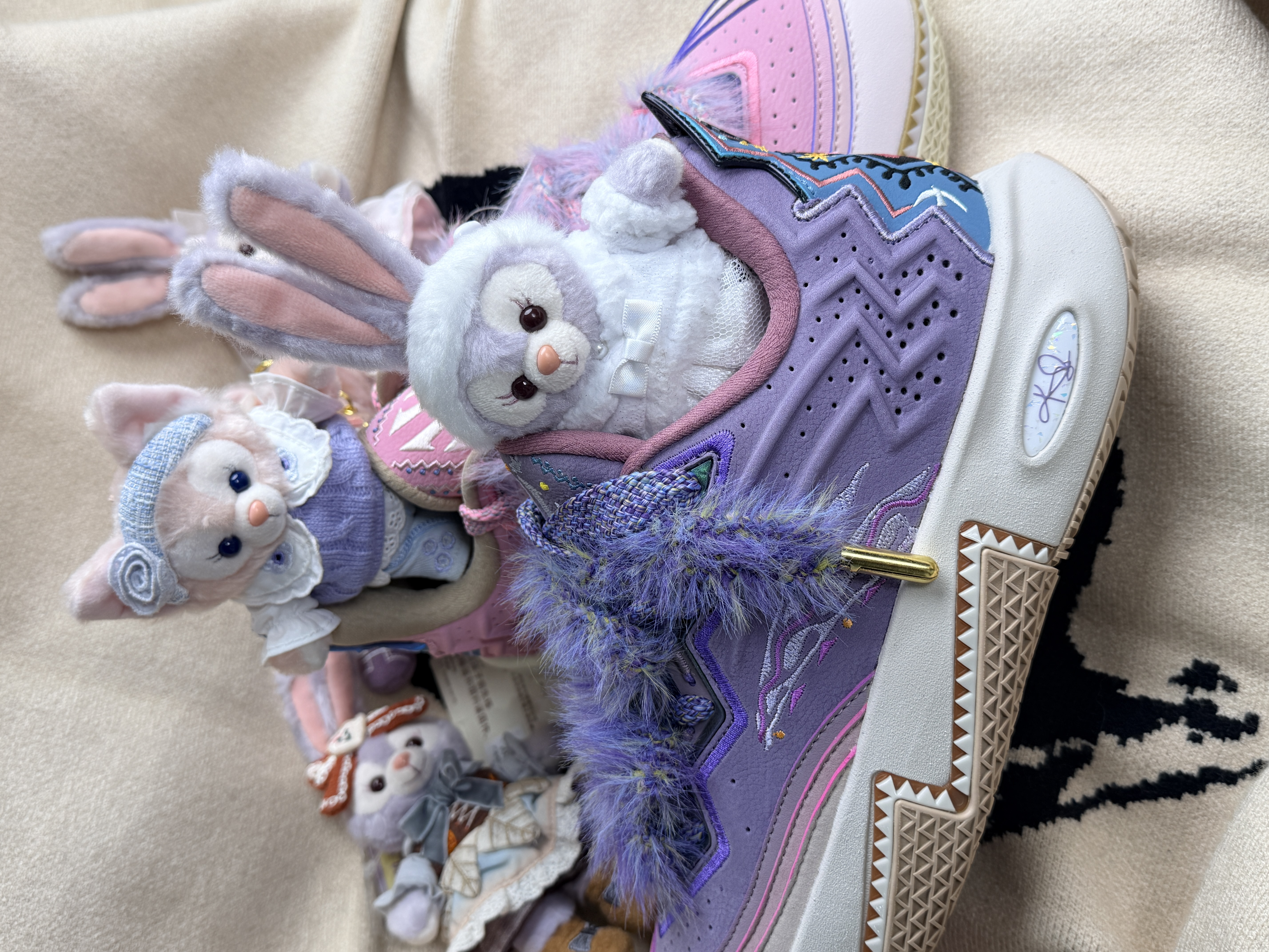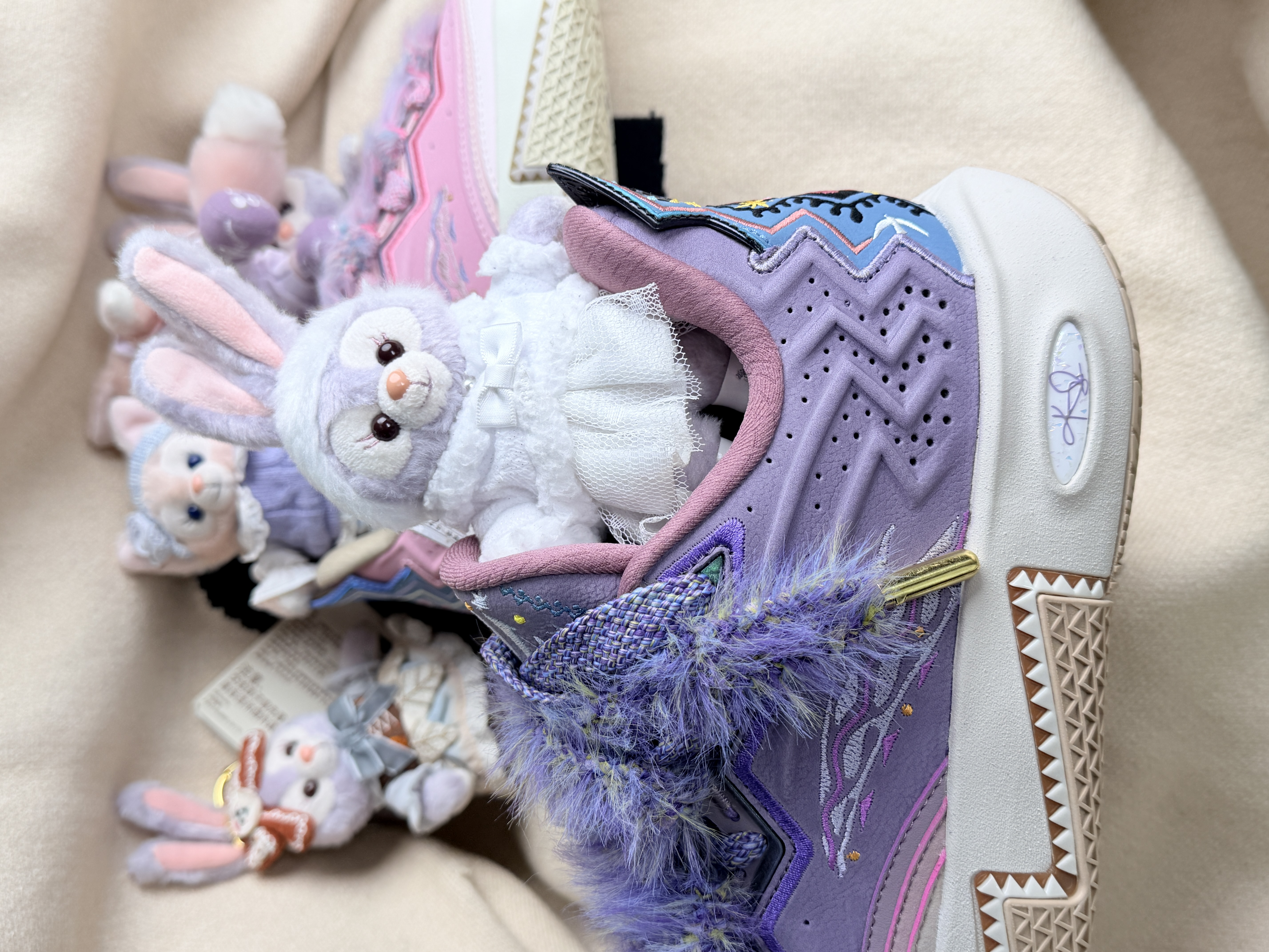 谁懂啊!欧文二代KAI 2这波配色直接戳中了我的💘,女朋友也特别喜欢 首发「球场艺术家」像把星黛露的薰衣草色云肩缝在了鞋上! 毛茸茸鞋带+梦幻紫渐变,连鞋舌都像兔子耳朵软乎乎的🐰 鞋身的刺绣像星黛露裙子上的蕾丝边,自带柔光滤镜✨ 而这次给女儿阿祖莉的「小公主配色」,直接是琳娜贝儿本狐! 奶fufu的樱花粉+毛绒鞋带,鞋侧的刺绣像小狐狸的尾巴尖🦊 连鞋盒都像童话书封面,这哪里是实战鞋,明明是...