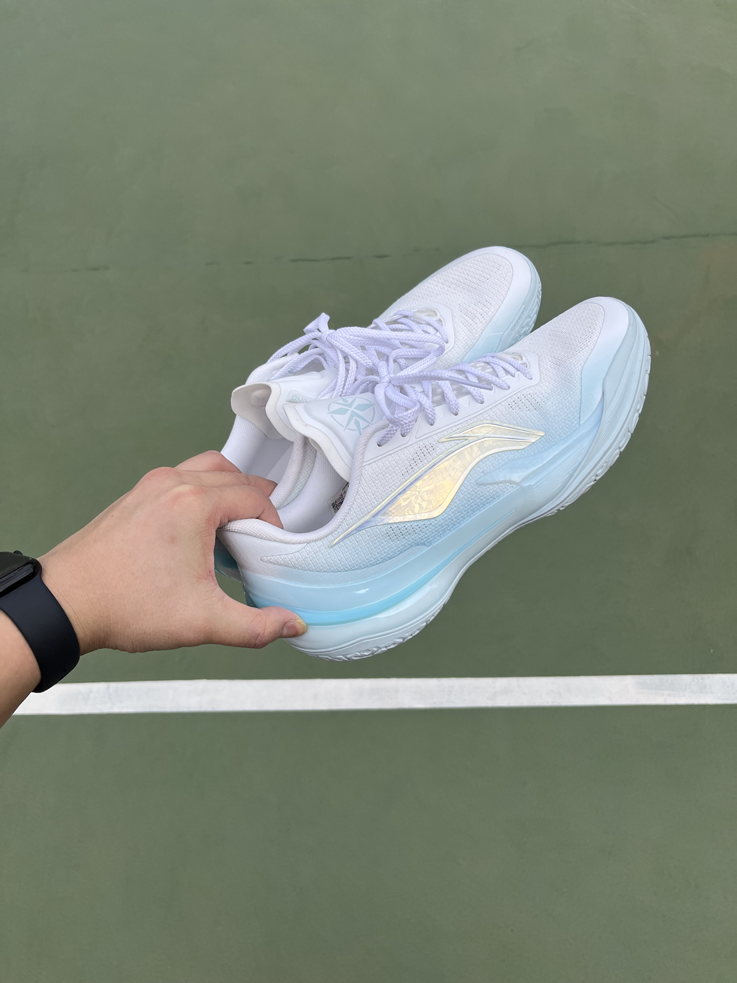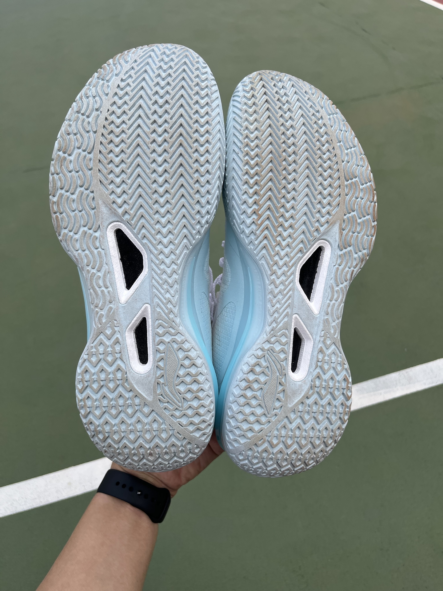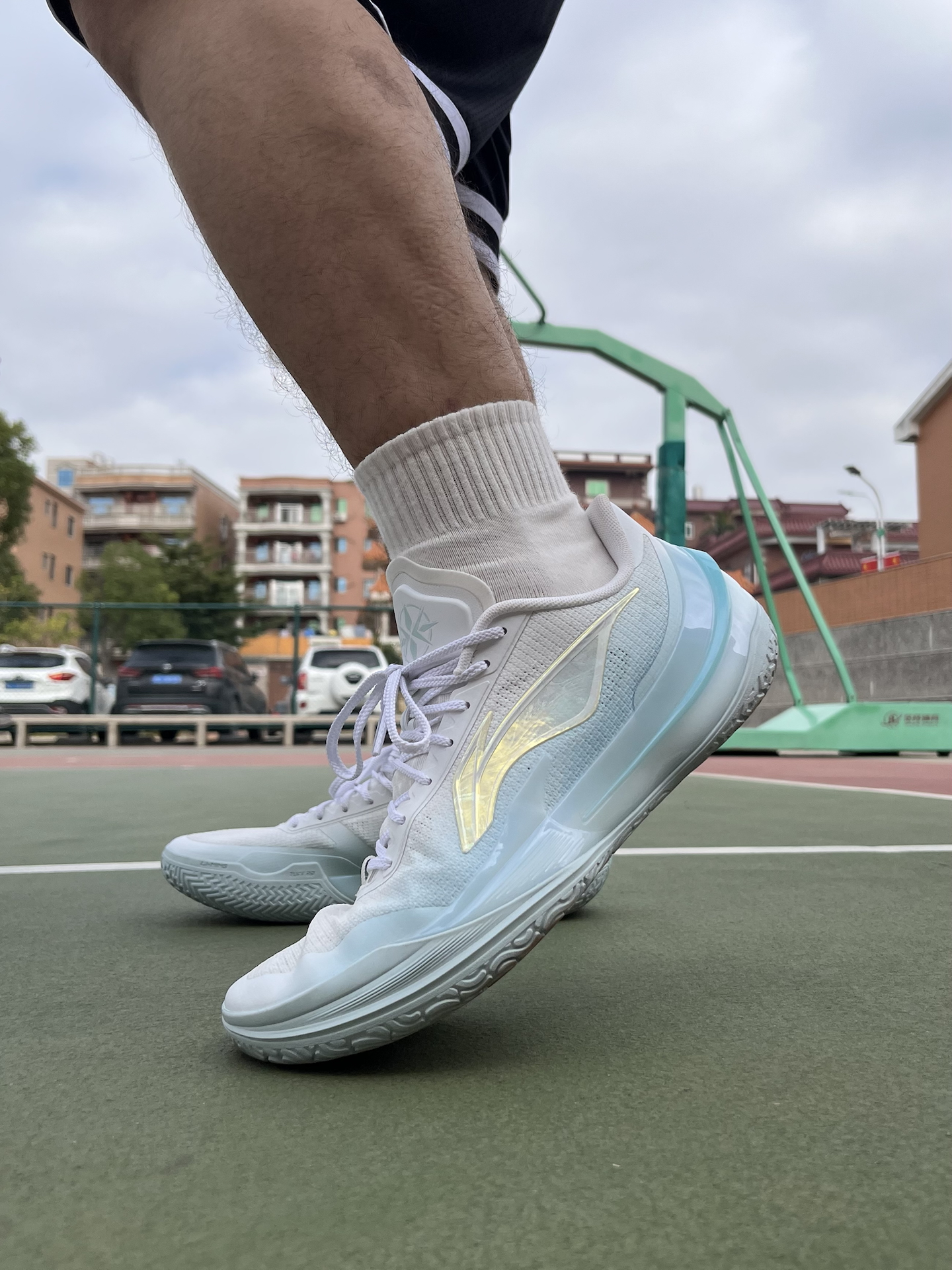 周末练球,天气稍微回暖,还是习惯长袖配短裤,打球更自在 说说脚上这双利刃5V2 波光,穿了大半年磨合差不多了 大部分时间都在外场打,橡胶底的磨损,没有想象中那么大 全掌䨻+TPU包裹,脚感韧中带弹,启动不拖沓 而且低帮球鞋,脚踝灵活,急停跳投还是稳的 #人人都是球鞋博主 #实战球鞋看我的 #一人一双篮球鞋 #穿这双去打球 #学生党打球穿什么
