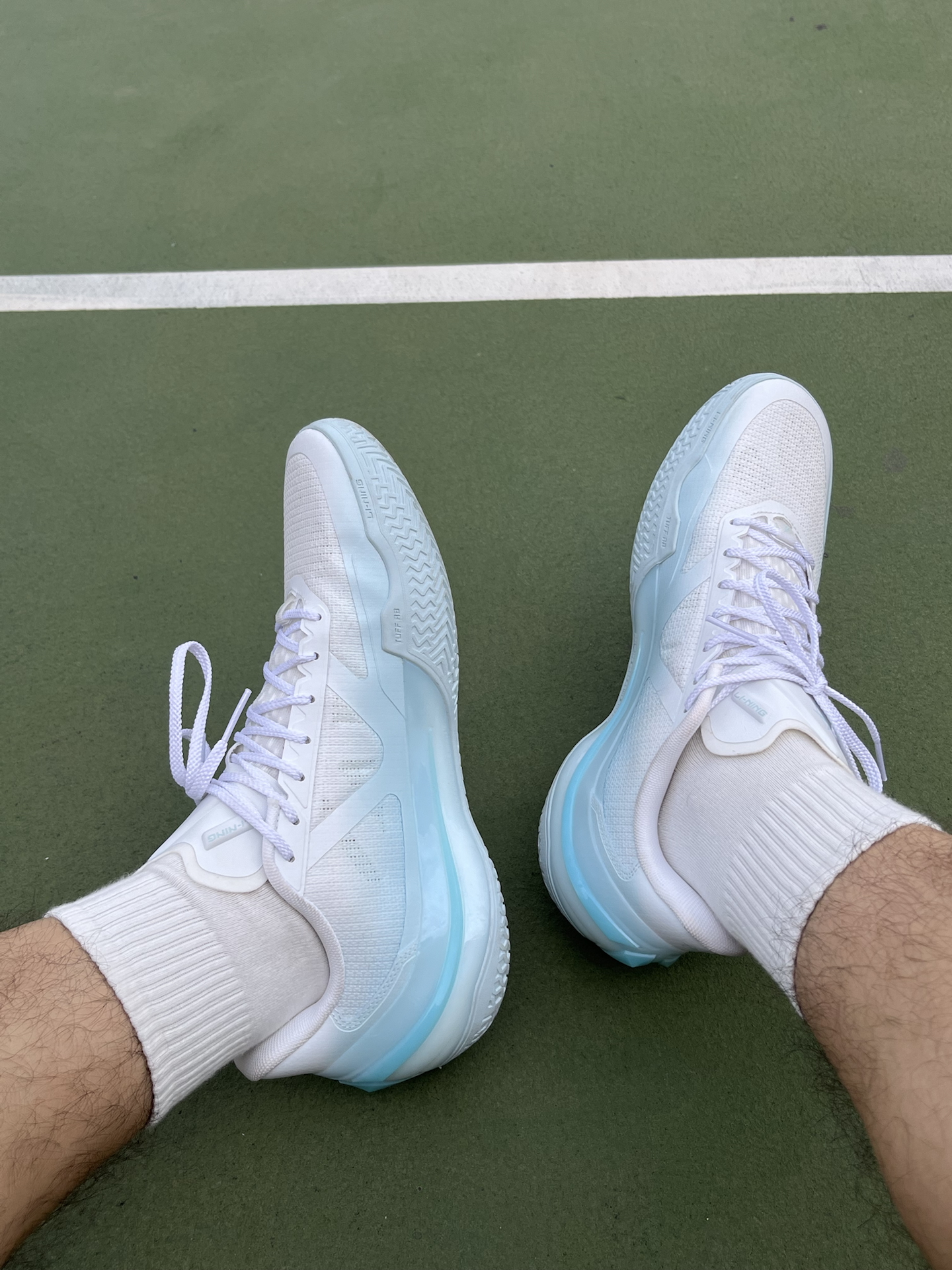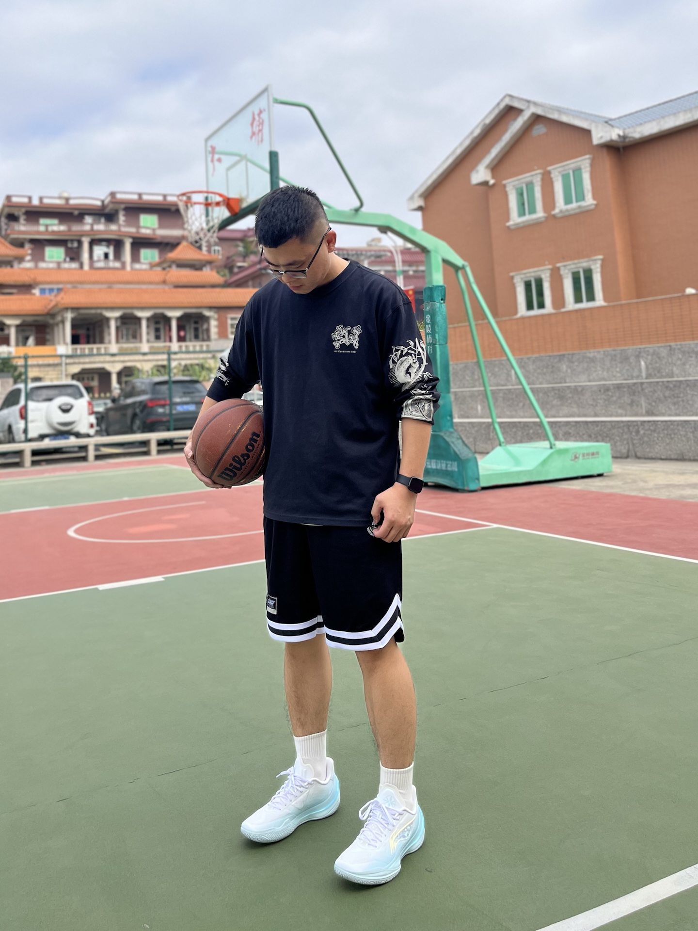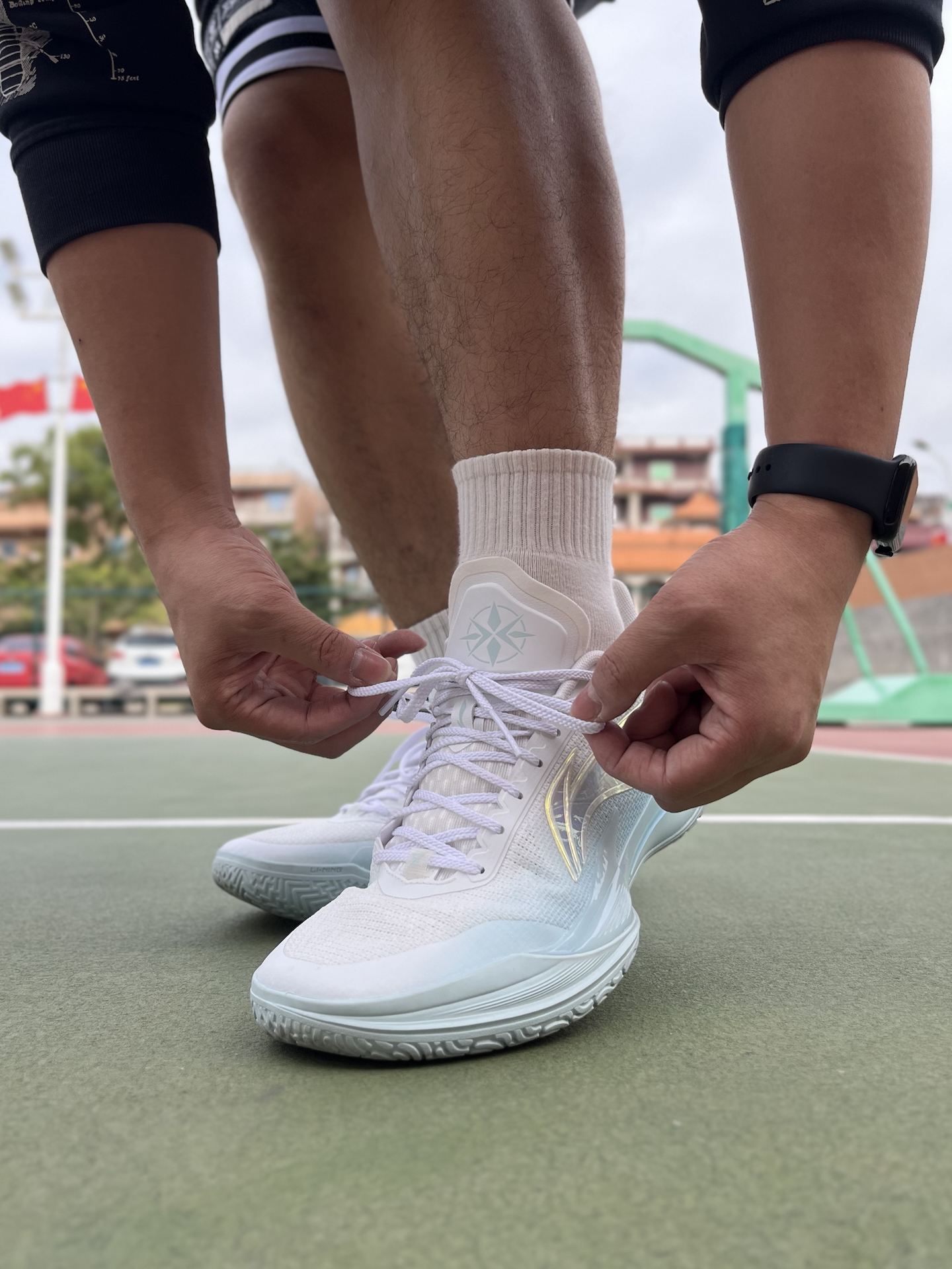 周末练球,天气稍微回暖,还是习惯长袖配短裤,打球更自在 说说脚上这双利刃5V2 波光,穿了大半年磨合差不多了 大部分时间都在外场打,橡胶底的磨损,没有想象中那么大 全掌䨻+TPU包裹,脚感韧中带弹,启动不拖沓 而且低帮球鞋,脚踝灵活,急停跳投还是稳的 #人人都是球鞋博主 #实战球鞋看我的 #一人一双篮球鞋 #穿这双去打球 #学生党打球穿什么