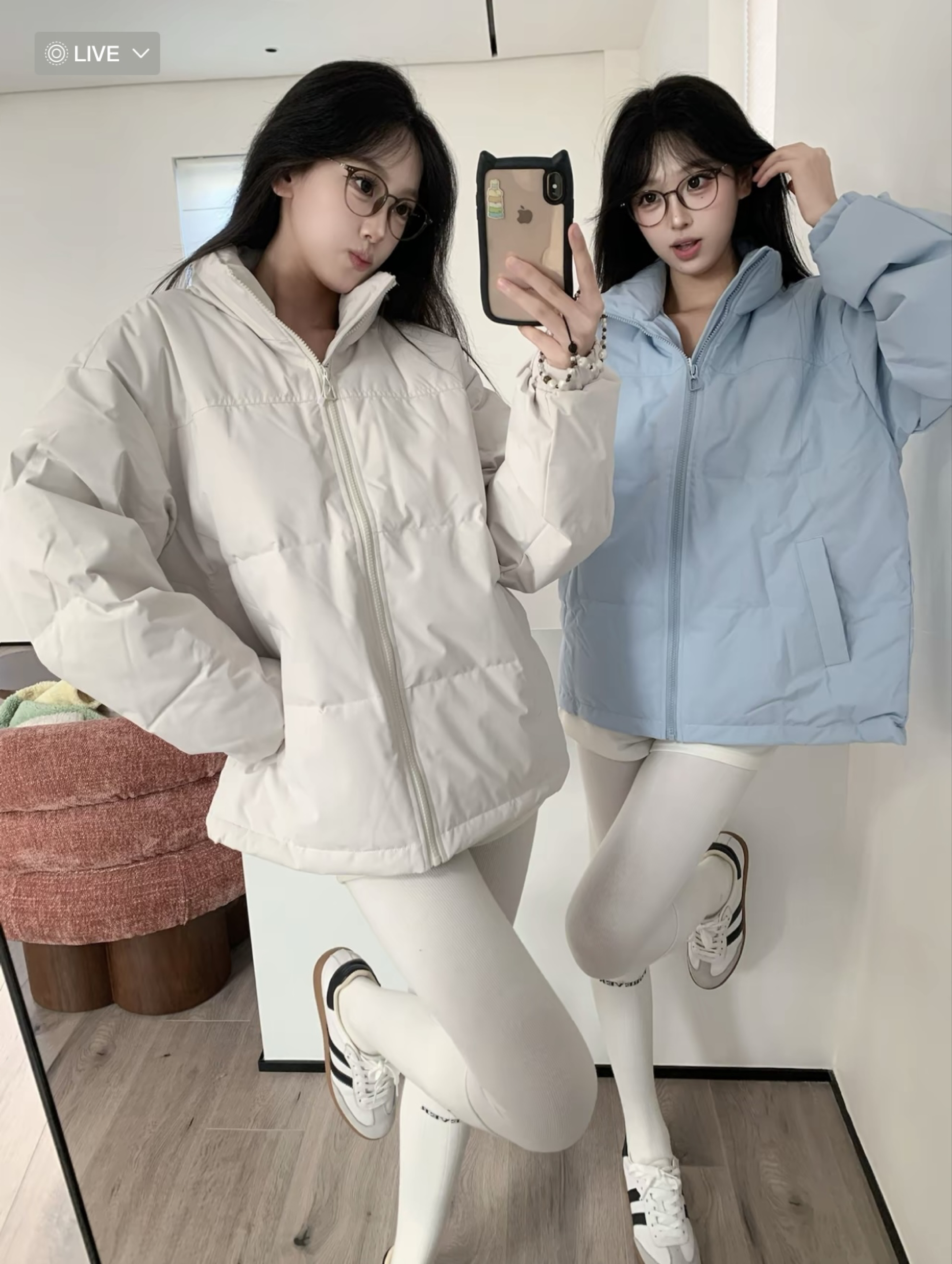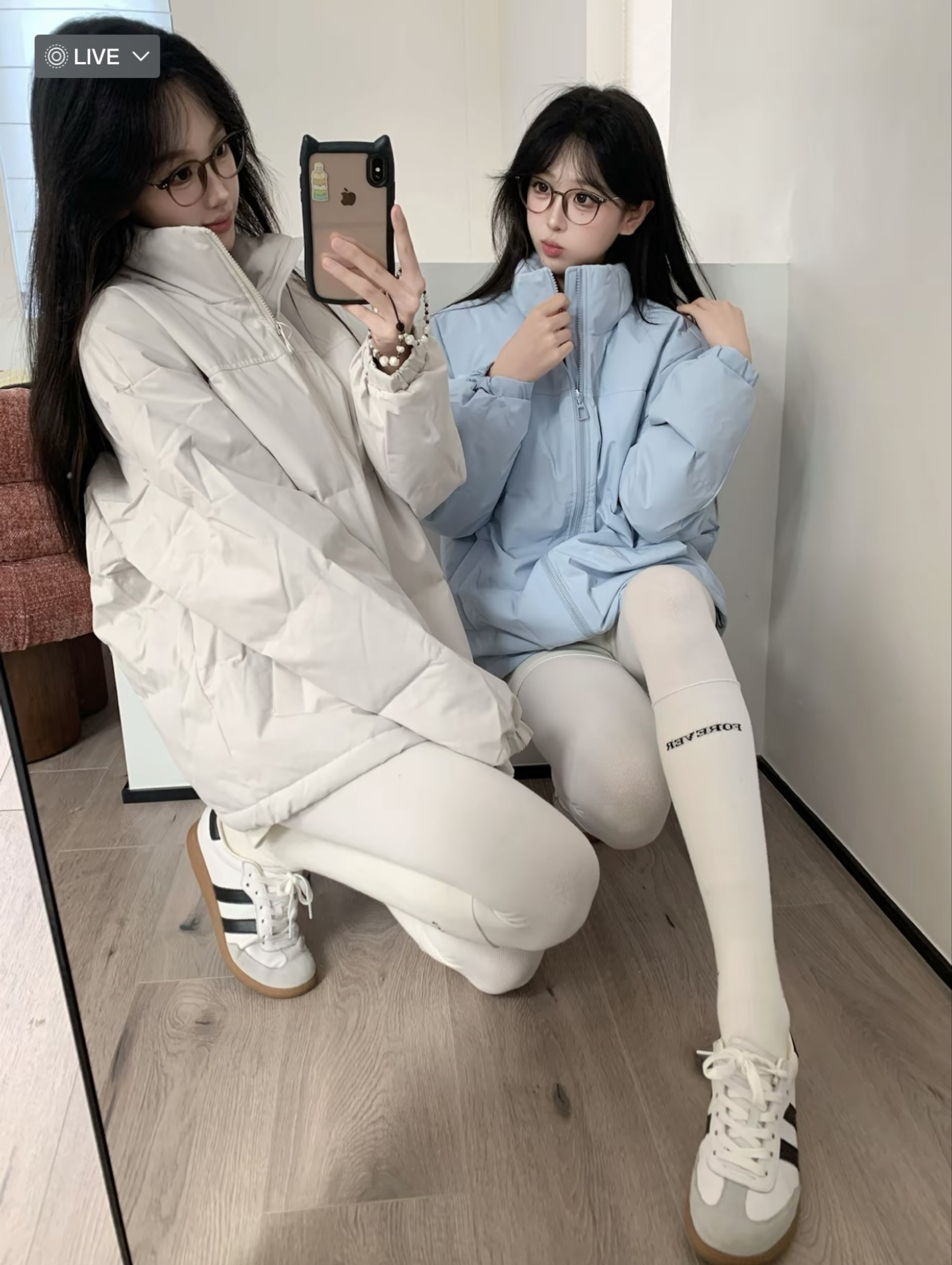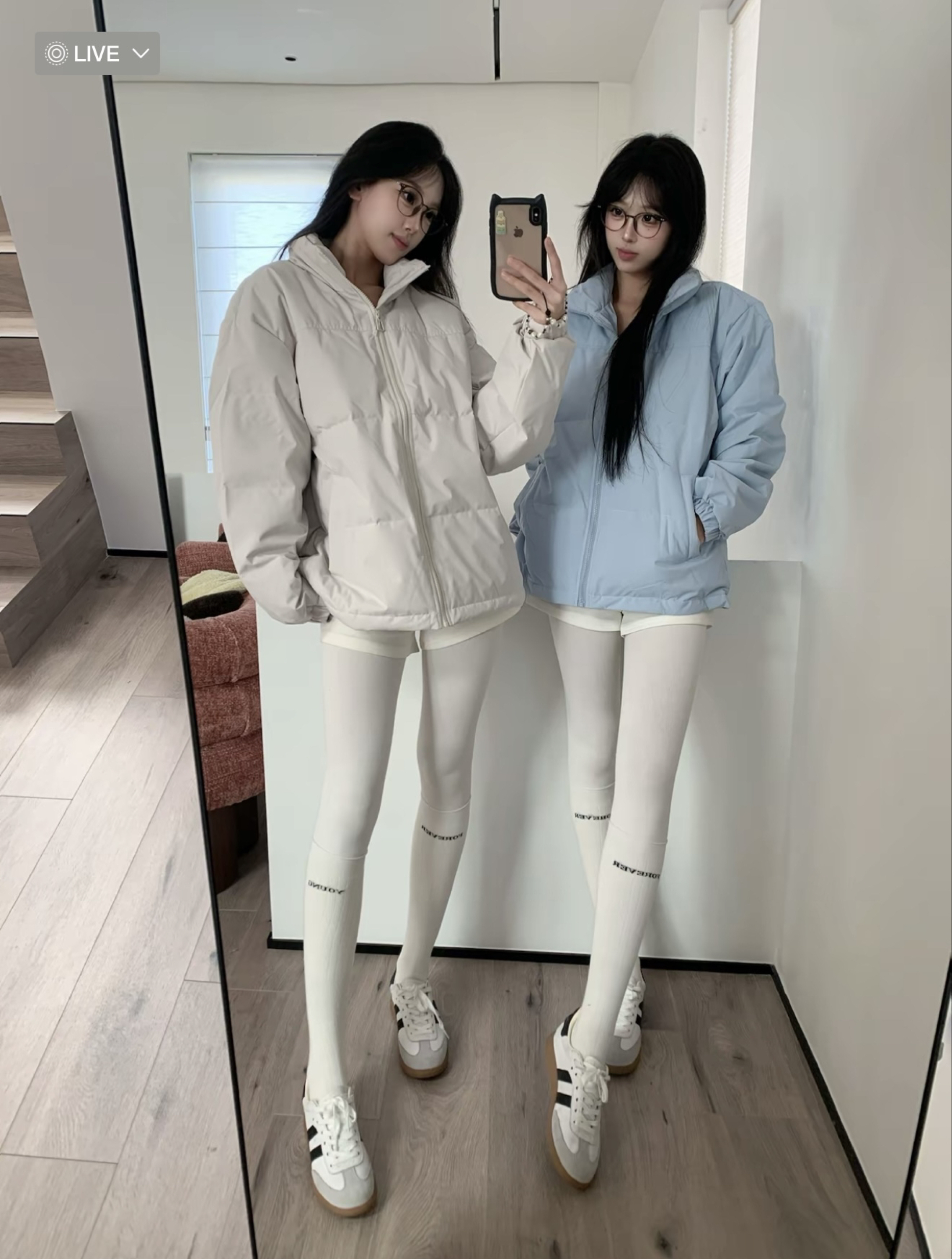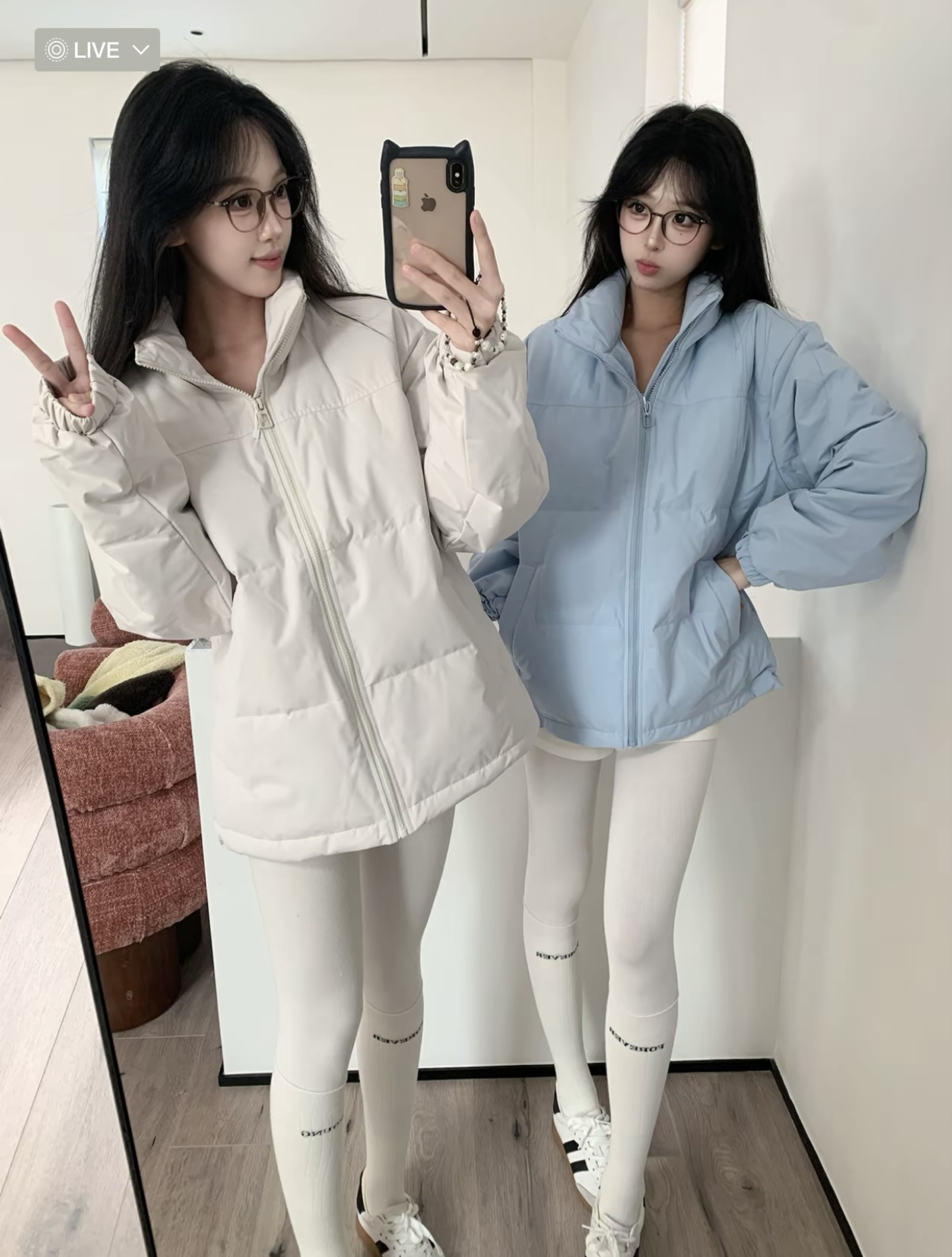 这套“温柔系冬日穿搭”太适配日常啦!浅色系羽绒服(奶白/浅蓝)走慵懒松弛感,蓬松版型既保暖又藏肉;搭配白色紧身裤+同色系长袜,顺色显腿直还自带清冷氛围感,再踩一双复古小白鞋,温柔又不费力❄️