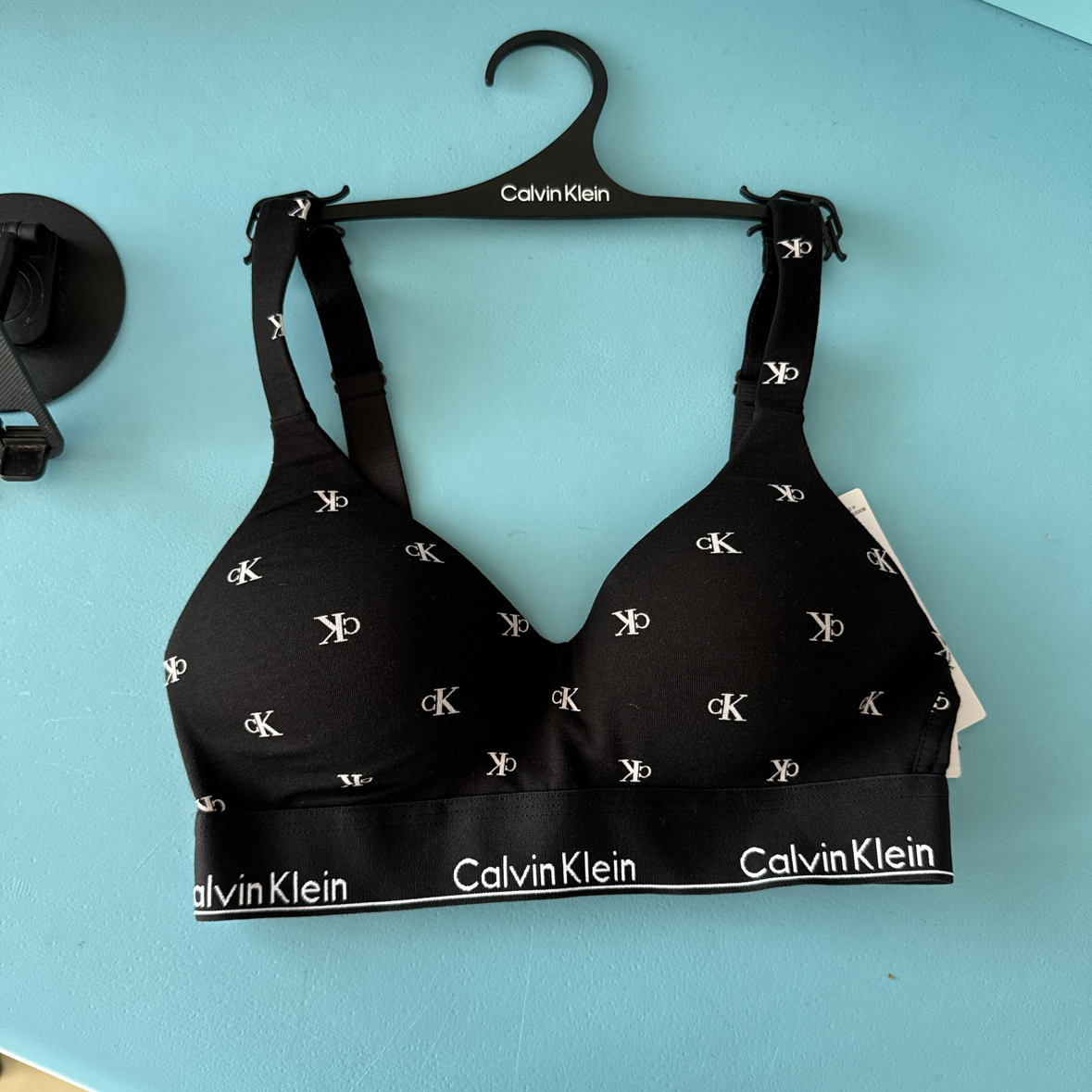 这件Calvin Klein满印logo内衣真的是“舒适+时髦”双在线的宝藏款! • 颜值党狂喜:经典黑底配满印CK字母,简约又自带高级感,外穿露边也完全不尴尬,适配各种辣妹穿搭~ • 舒适度拉满:无钢圈设计+软弹面料,贴肤又不压胸,日常通勤、轻度运动都能穿,像裹了层云朵似的自在。 • 细节很走心:宽边底围带了Calvin Klein标识,既加固了承托力,又让基础款多了点辨识度,肩带还能调节...
