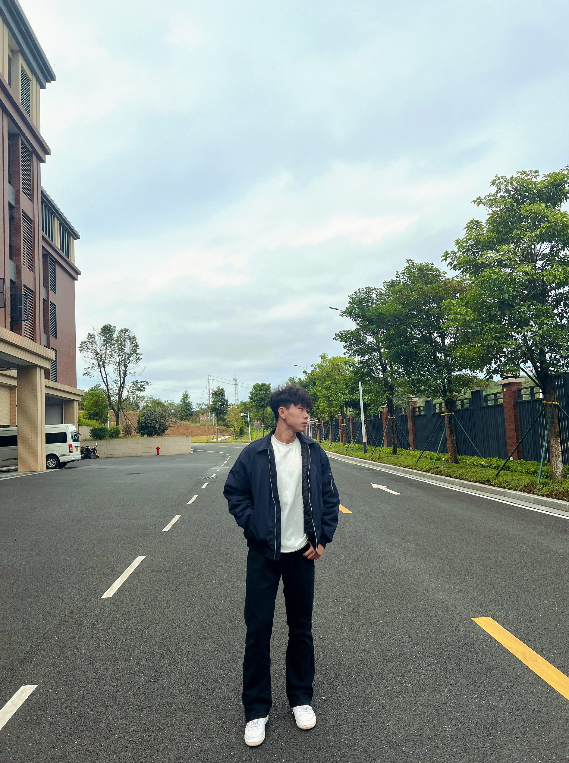 我们都不懂离别的重量 直到某天冷空气裹夹着回忆 藏蓝色教练夹克,版型休闲挺括;内搭白色纯色T恤,简约百搭;黑色直筒裤修饰腿型,白色休闲鞋增添清爽感。搭配技巧:基础款内搭平衡外套风格,深浅色彩层次分明,直筒裤与休闲鞋打造随性日常风,整体简约协调又具质感。