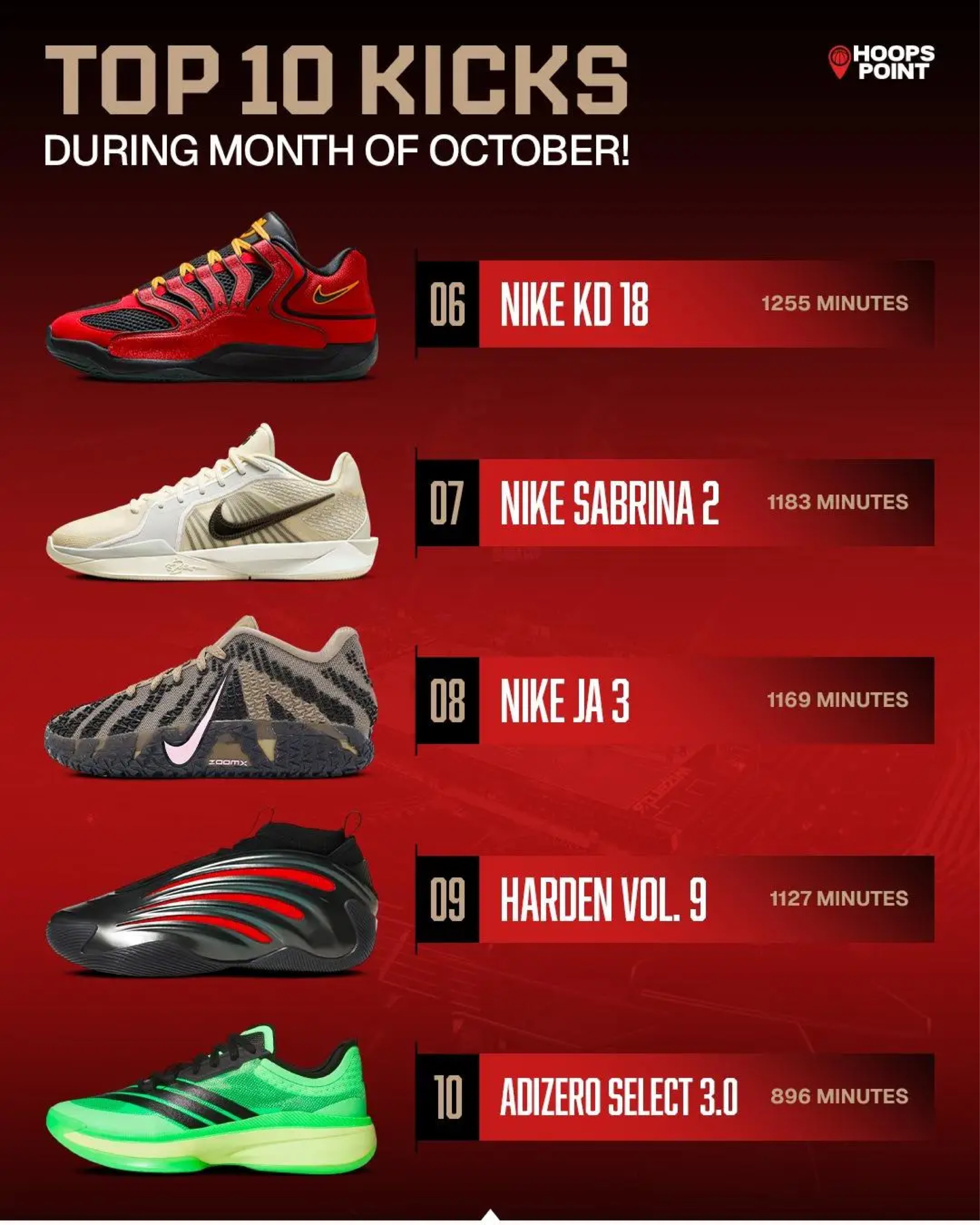 十月NBA球鞋上脚时长TOP10新鲜出炉!没想到科比重磅鞋款还是球员们的心头好,赛场统治力直接拉满💥 ✅ Nike Kobe 6 狂砍3960分钟断层第一,差点冲4000分钟的成绩太能打! ✅ Kobe 5(2161分钟)、Kobe 4(1449分钟)强势跻身前五,曼巴精神在球鞋圈从未褪色~ ✅ G.T. Cut 3、Book 1紧随其后,KD、哈登等签名鞋也稳占一席之地! 经典永不过时说的就...