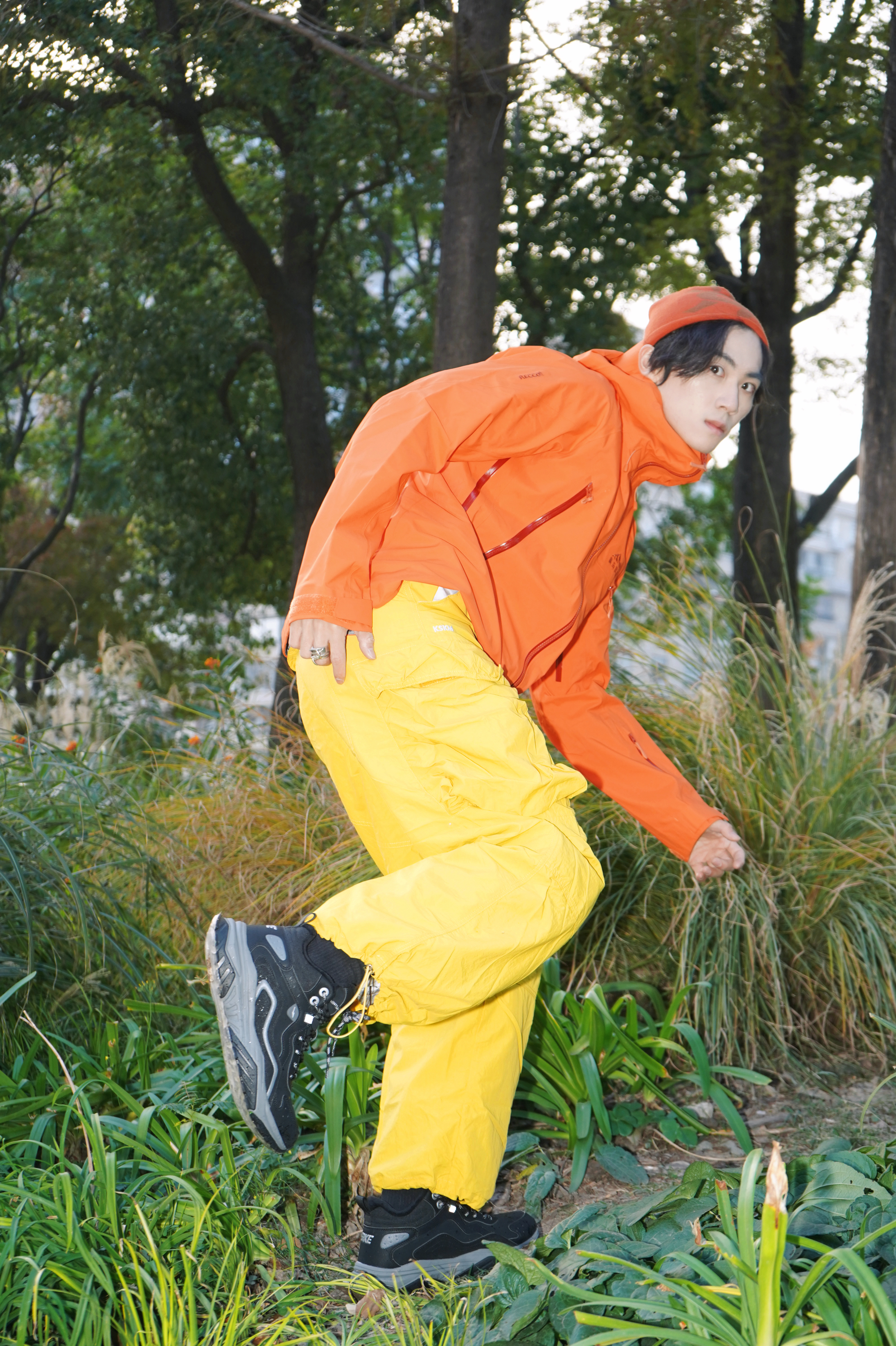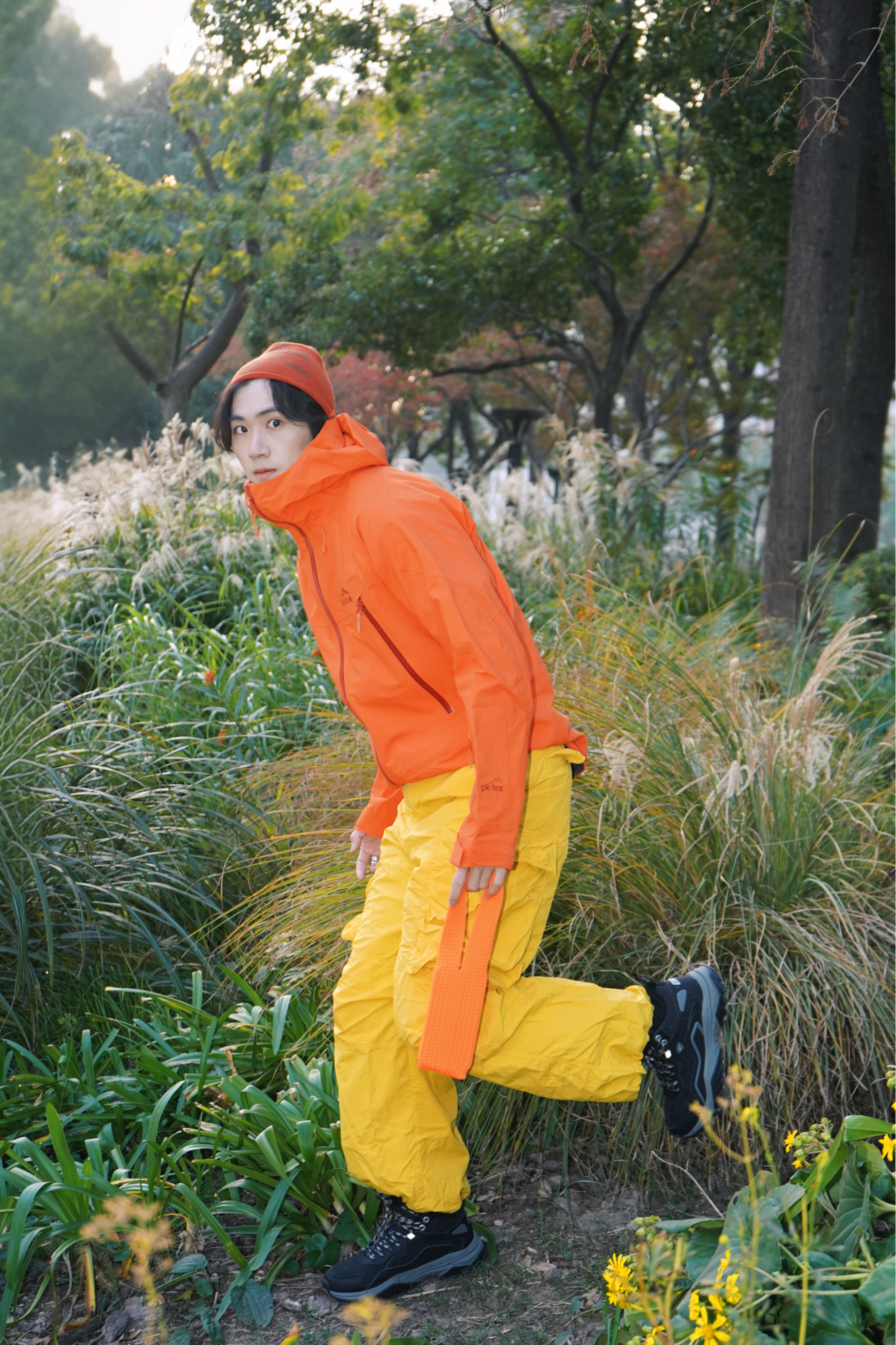 每次感觉进山都是在充电⚡️电量已恢复到100% 这回多巴胺配色穿梭山野, 一路溪流+森林的景观太治愈我了, 碰巧还遇到绝美落日🌅配上我的新款冲锋衣! 简直太美了,超好出片! ⛰️全程轻装上阵去,轻量化的户外路线太适合打工人的周末了, 在穿上一双衬脚的徒步鞋,防风加绒还能防滑,走在湿地都不用担心滑倒了!