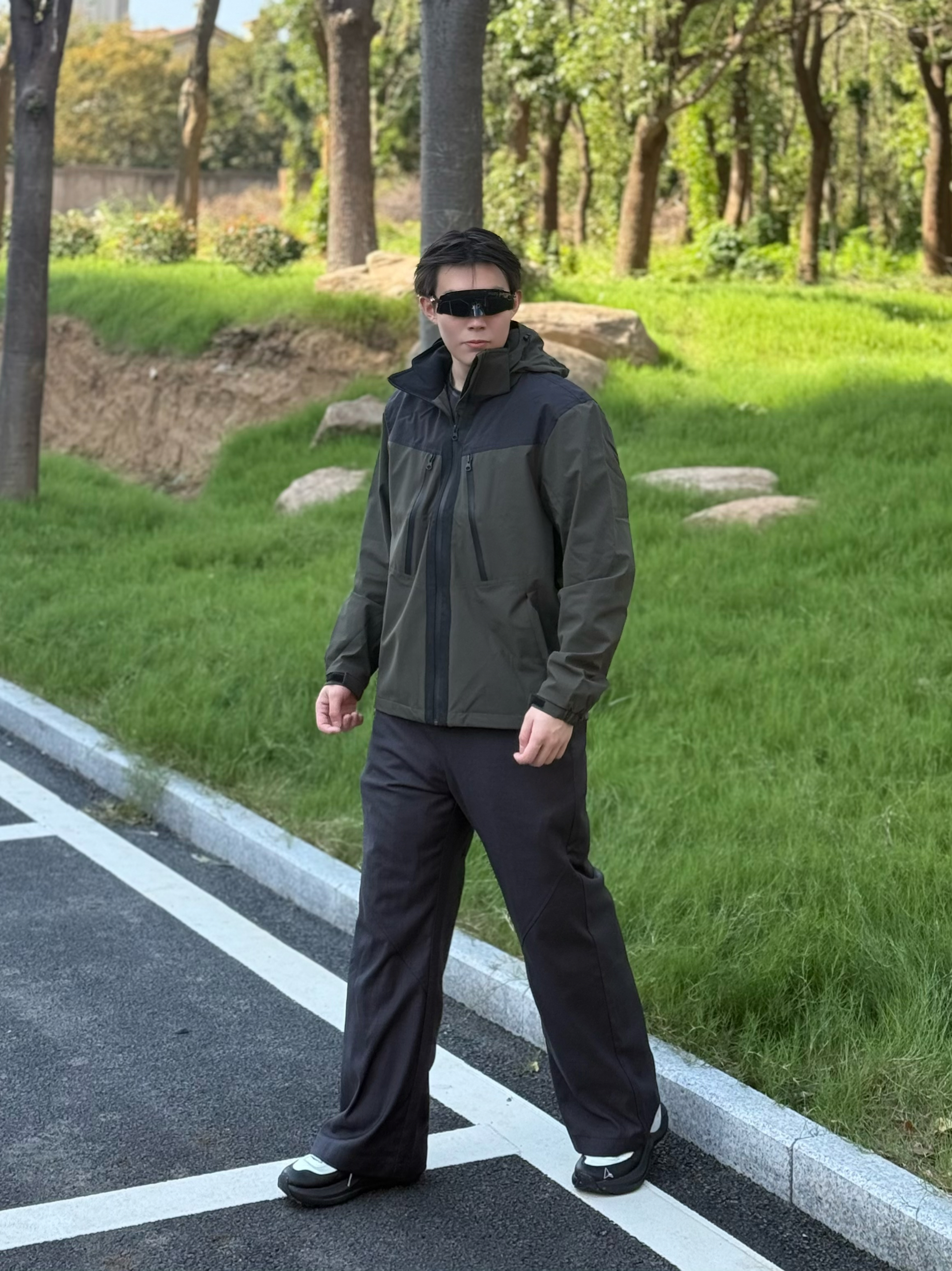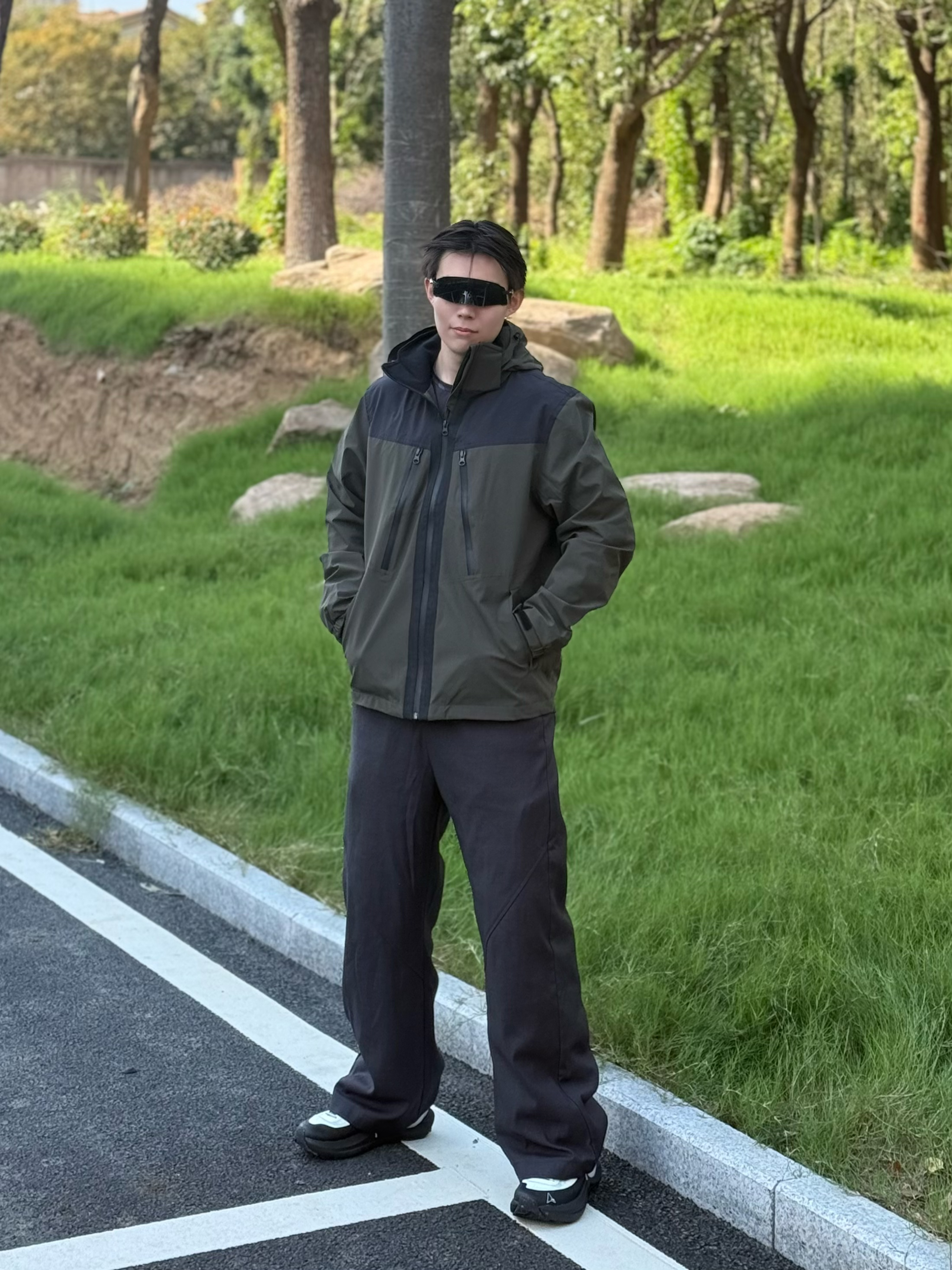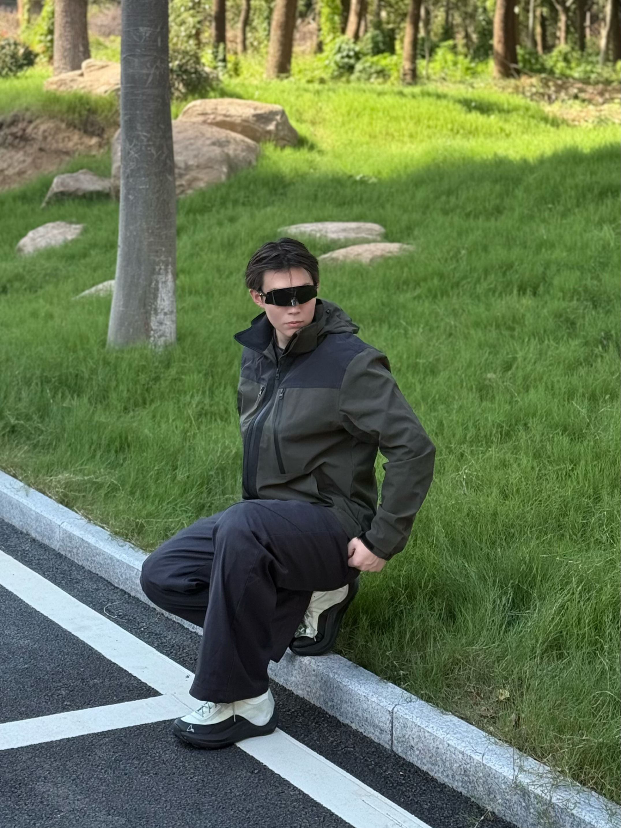 今日ootd主打一个户外风格 上衣一件墨绿色拼黑色冲锋衣搭配一件灰色休闲裤鞋子选择一双roa徒步鞋 戴上一副欧克利眼镜 这身户外运动安全感拉满 又帅又实用!