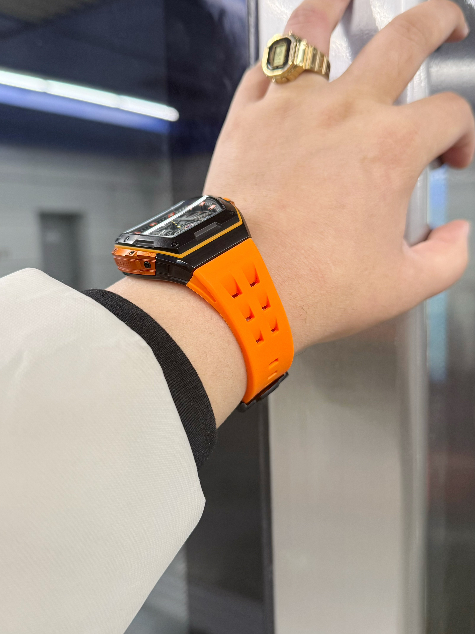 在山野的这几年,是实实在在的把每一时分都过出自己喜欢的样子, 和大自然对话,也和风雨掰手腕, 汗水、溪水、雨水顺着身子往下淌,浸得袖口发沉,经过蹭过表盘,水珠滚落,映衬着指针划过,放大了时间,也看清了自己。 哪怕在攀登或者长距离徒步,我都有戴表的习惯,因为看着自己的来时路,都是对自己的见证。 玛莎拉蒂黑武士记录了我的突破,山野无声,内心有声,勇者走出的征服路,体现在每一次硬核户外的脚步上。