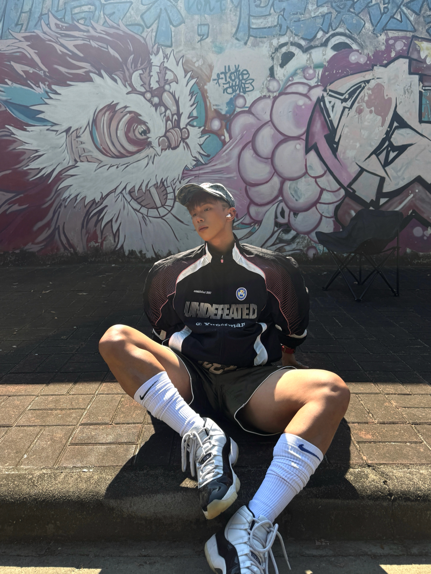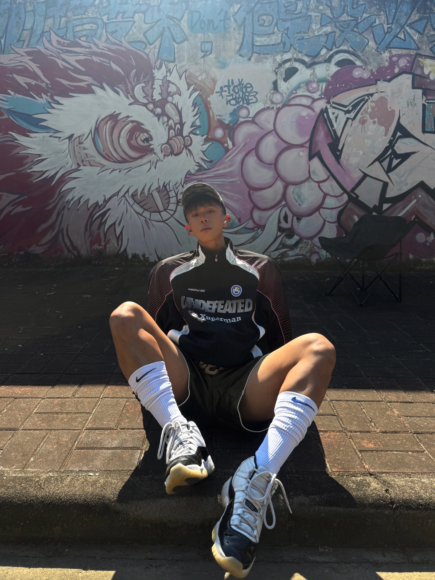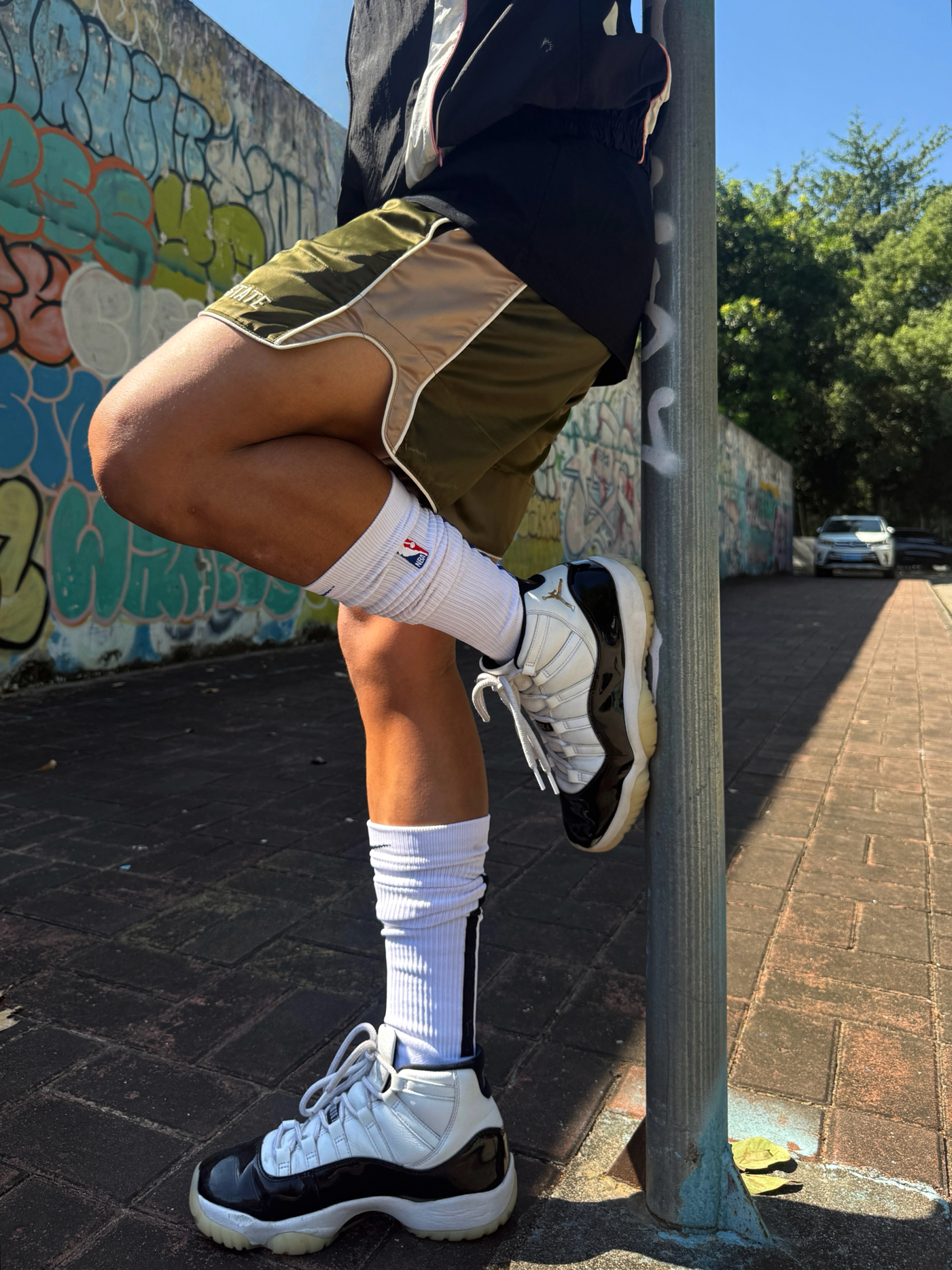 Hey bro‼️这里是小熊的穿搭日记 黑紫undefeated夹克+军绿拳击短裤🥊 街头感和机能风的结合十分巧妙 再配上超高筒篮球袜 腿型显长显直💡 👟穿上我超爱的aj11 dmp 白黑金配色+漆皮鞋身 复古又自带光泽感 搭运动街头风能直接盘活儿整套穿搭✨ 你们觉得aj11dmp搭配这件黑紫夹克怎么样❓ 想看看你们的aj11搭配小心机👇🏻 #复古球鞋选哪双 #今日份帅气球鞋分享 ...