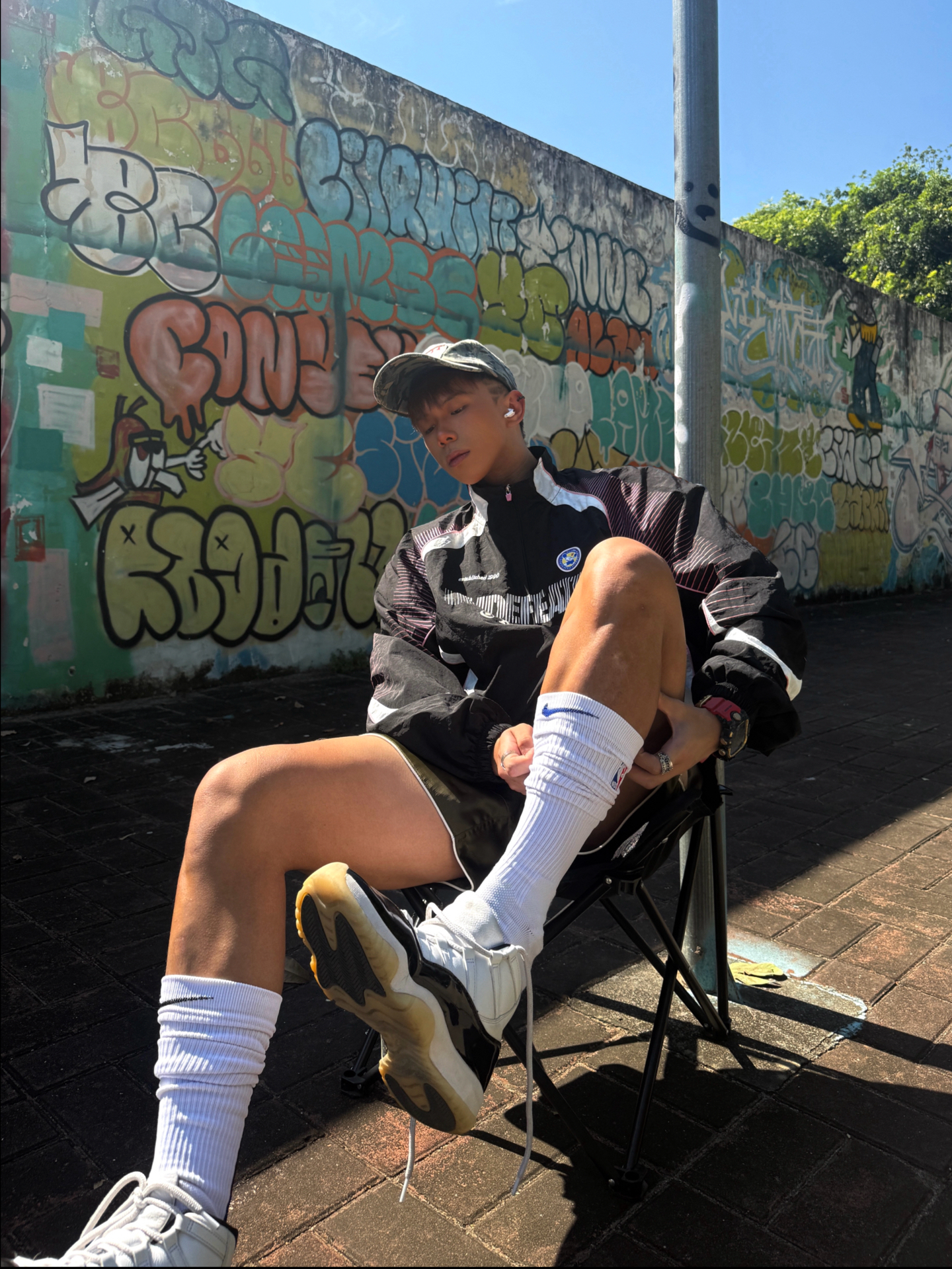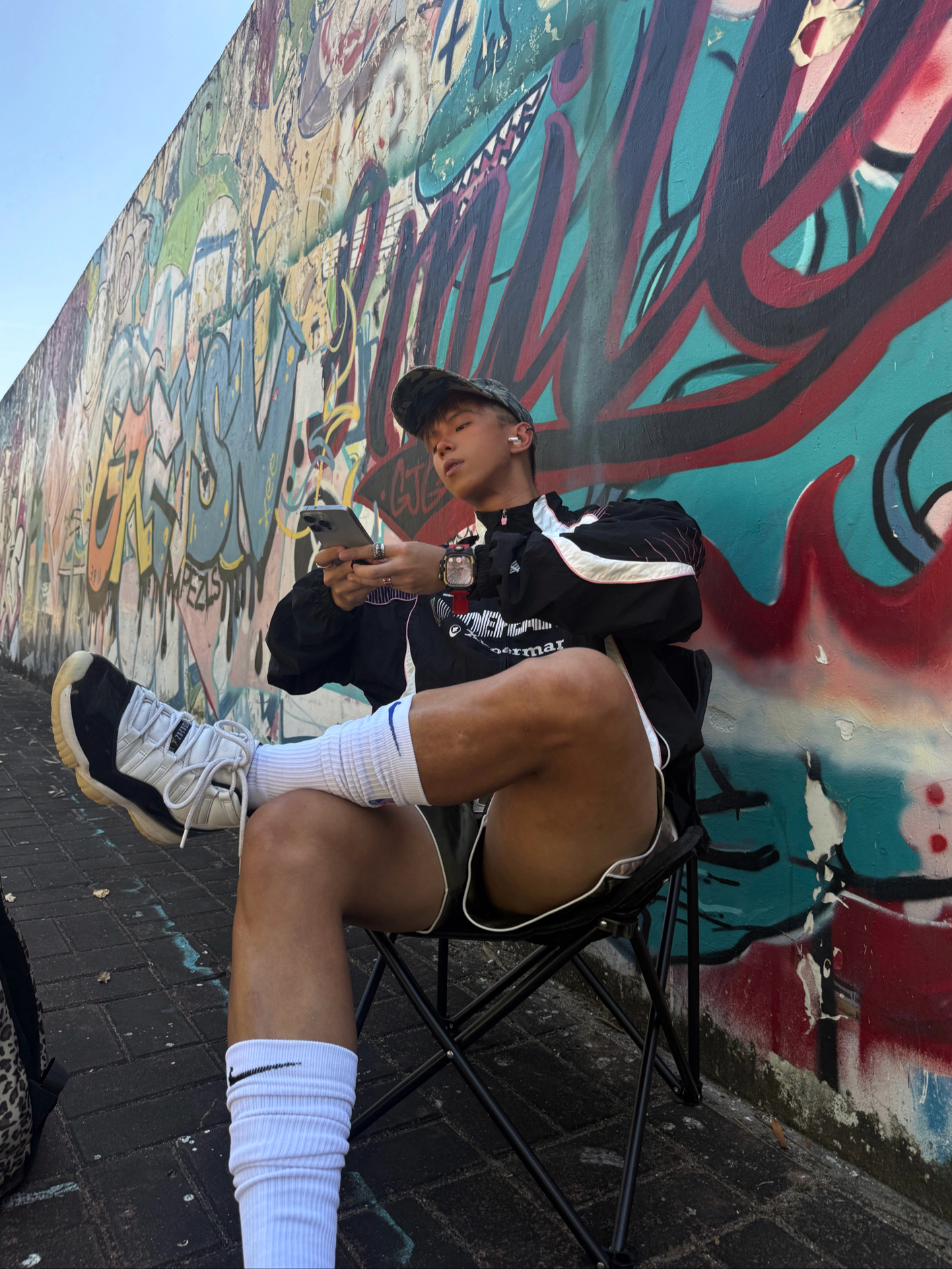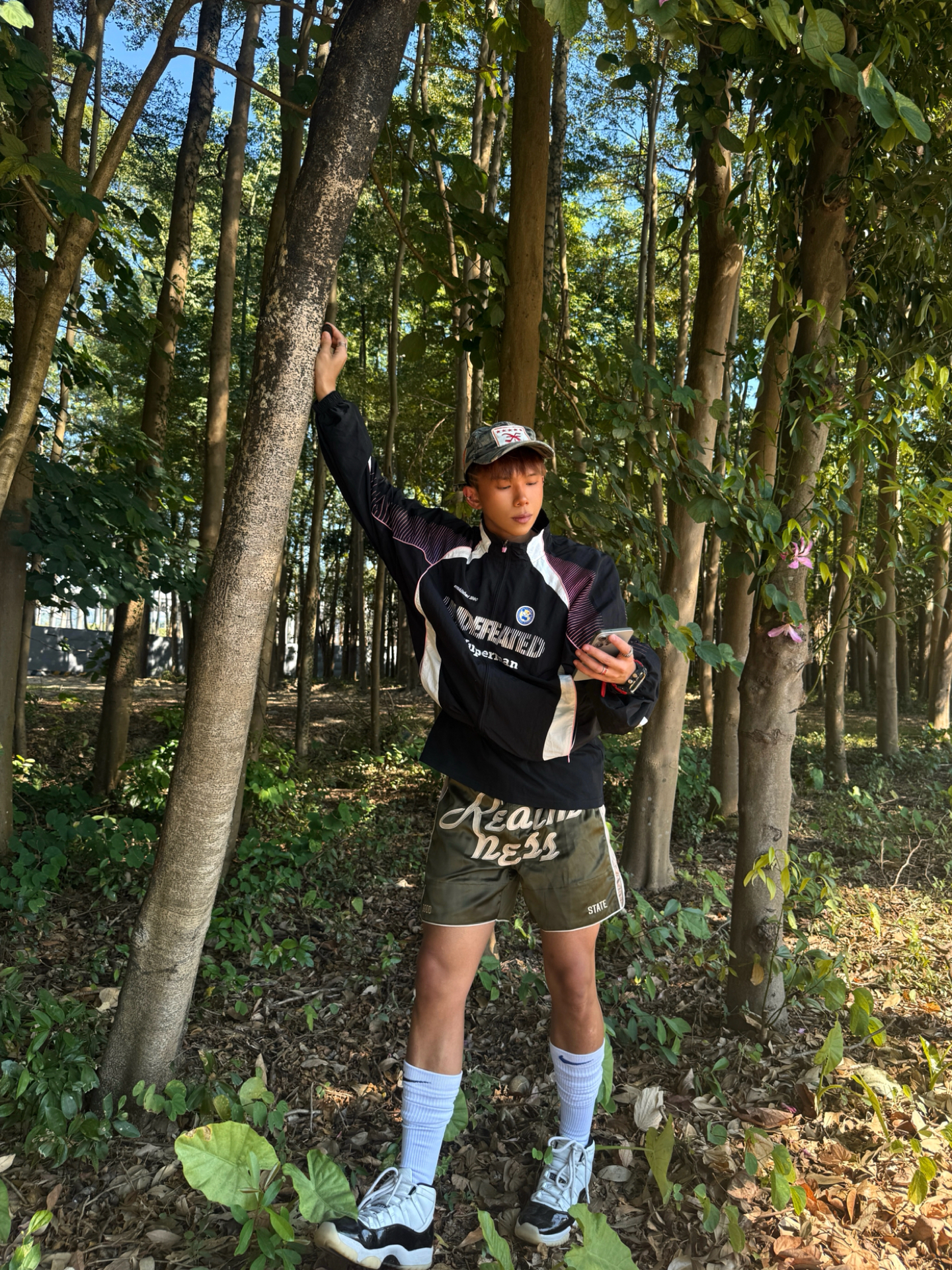 Hey bro‼️这里是小熊的穿搭日记 黑紫undefeated夹克+军绿拳击短裤🥊 街头感和机能风的结合十分巧妙 再配上超高筒篮球袜 腿型显长显直💡 👟穿上我超爱的aj11 dmp 白黑金配色+漆皮鞋身 复古又自带光泽感 搭运动街头风能直接盘活儿整套穿搭✨ 你们觉得aj11dmp搭配这件黑紫夹克怎么样❓ 想看看你们的aj11搭配小心机👇🏻 #复古球鞋选哪双 #今日份帅气球鞋分享 ...