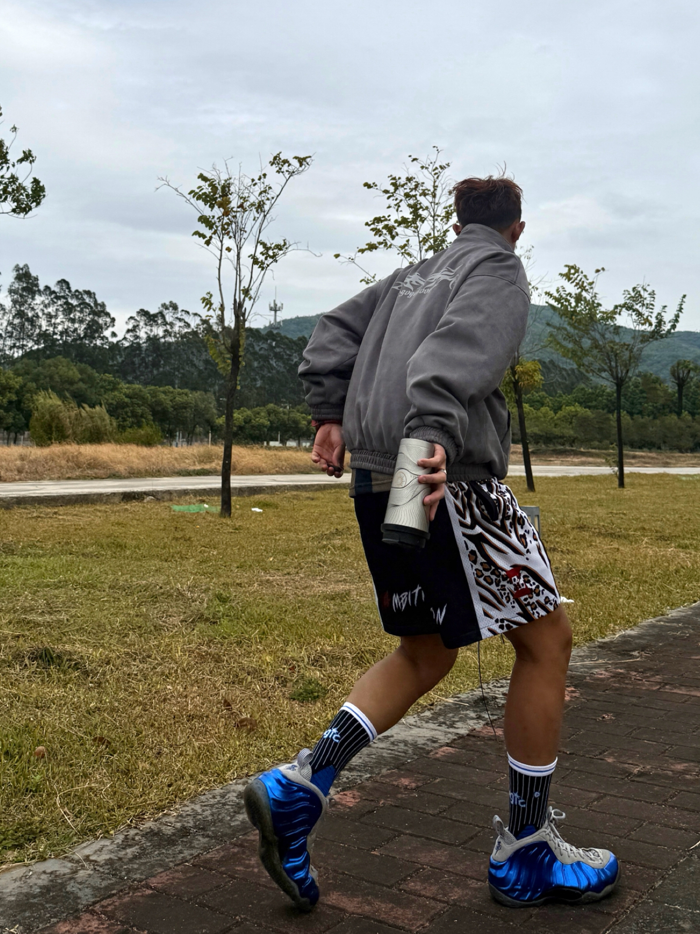 Hey bro‼️这里是小熊的穿搭日记 oversize立领灰外套+豹纹拼接短裤 宽松上衣的慵懒中和露腿的随性 南方秋冬这么穿刚好 不臃肿又自带街头属性💯 👟上脚电光蓝喷 亮面宝蓝发泡+浅灰鞋身 光泽感随光线变化超吸睛 本来灰+黑的ootd挺低调的 蓝喷一踩直接成为吸睛焦点💡 你们初冬会尝试上宽下露吗❓ 想看看你们的球鞋+休闲外套的搭配⬇️ #一件开启潮冬 #南方降温这样穿 #我的...