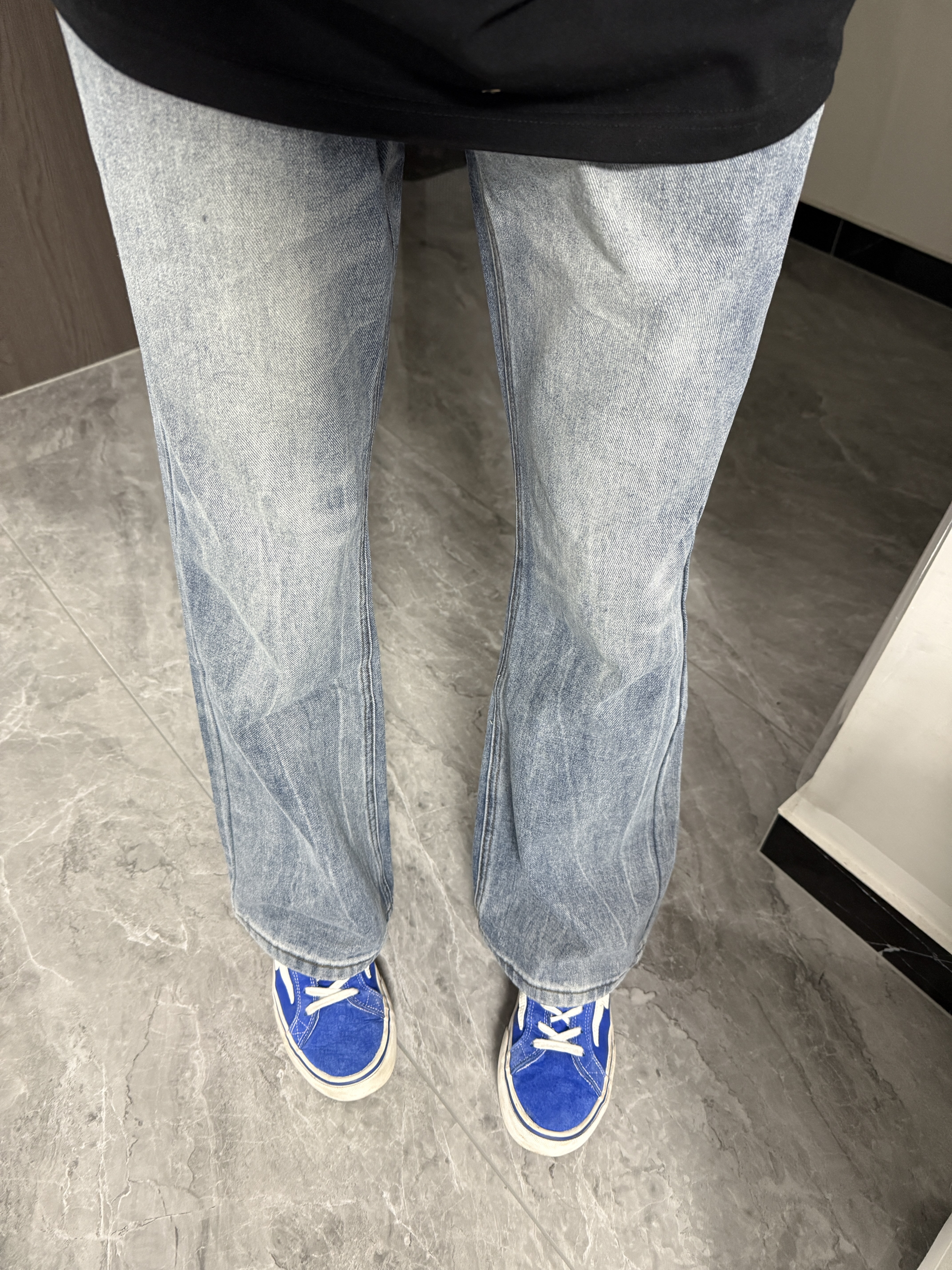 通勤穿这套清爽又帅气啊~修身显瘦的直筒牛仔裤真是百穿不腻 日常也很好搭配 做旧渐变水洗蓝的款式还蛮高街的 最后搭双同色系小板鞋简单帅气 谁穿谁是大帅哥!!