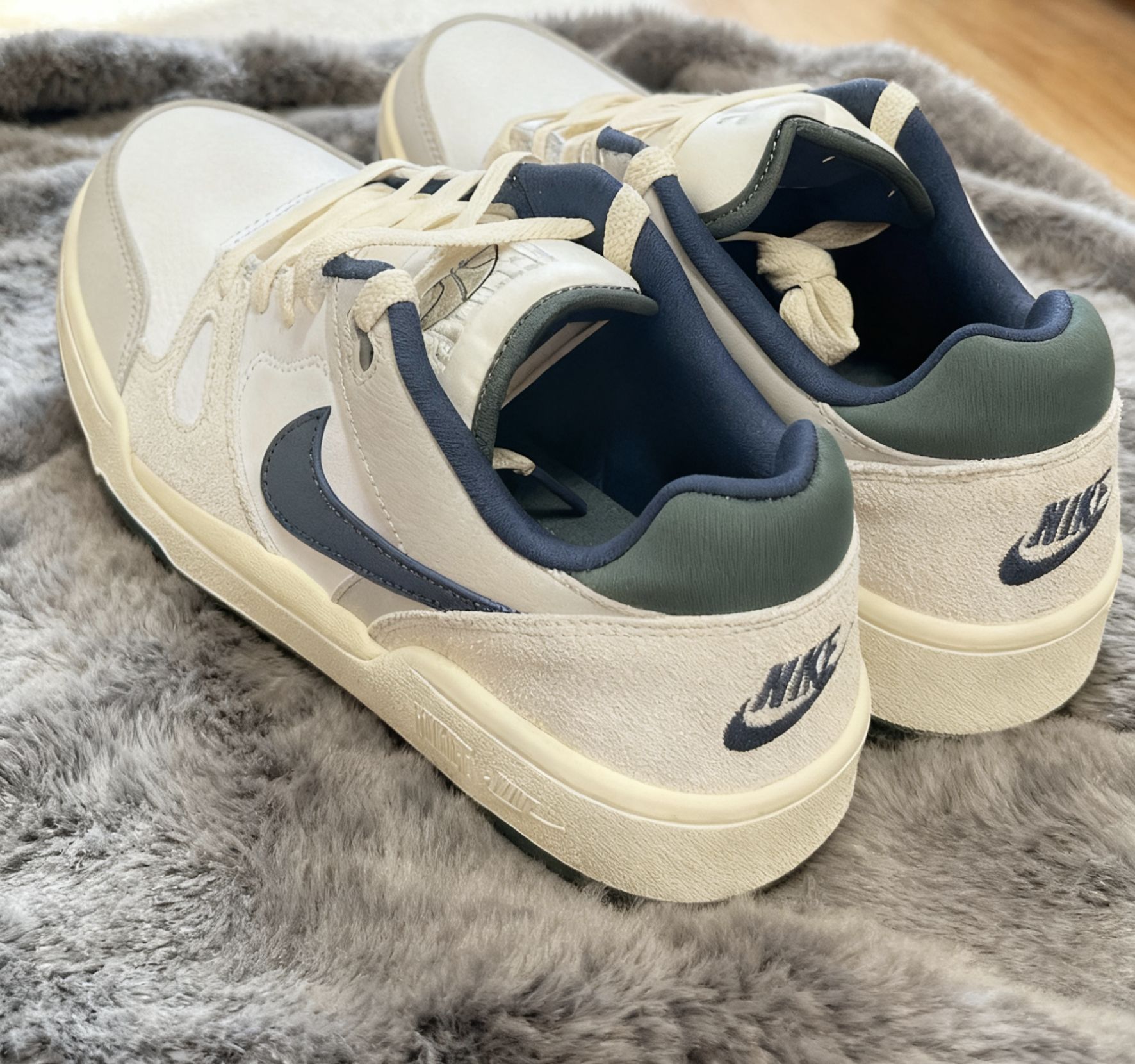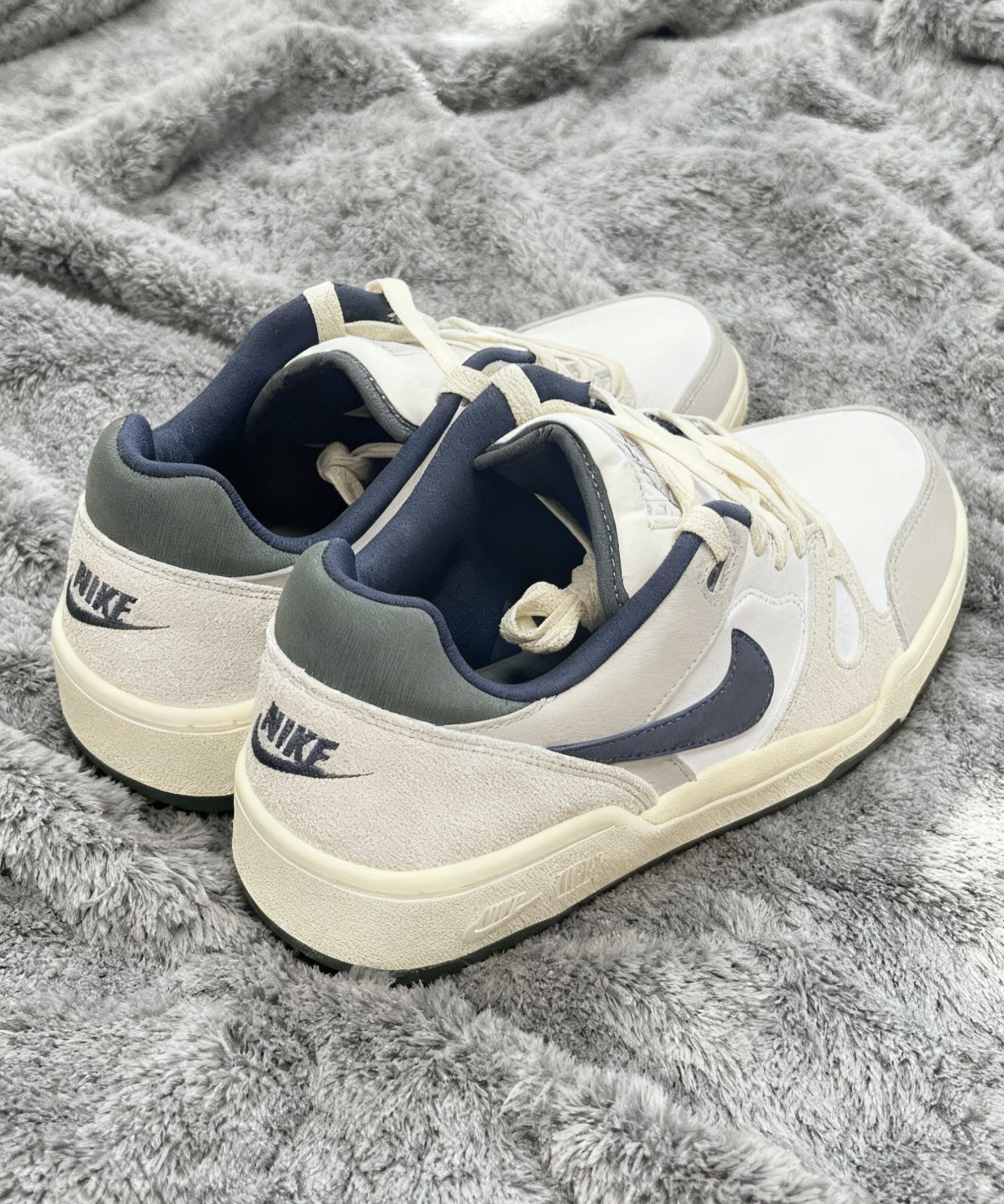 新入的这双Nike Low,直接让我放弃了鞋柜里其他鞋——这配色、这质感,真的是“上脚即种草”! 拿到手第一感觉是“干净得像块云朵蛋糕”:米白+浅灰的基底,配上低饱和的藏蓝勾子,连鞋舌里的蓝衬都像特意调过的莫兰迪色,完全不挑穿搭,搭牛仔裤是清爽少年感,配运动裤又很松弛。 重点夸夸质感:鞋身是软乎乎的麂皮+细腻皮革拼接,摸起来不像几百块的鞋,踩进去鞋口的绒布衬里巨贴...