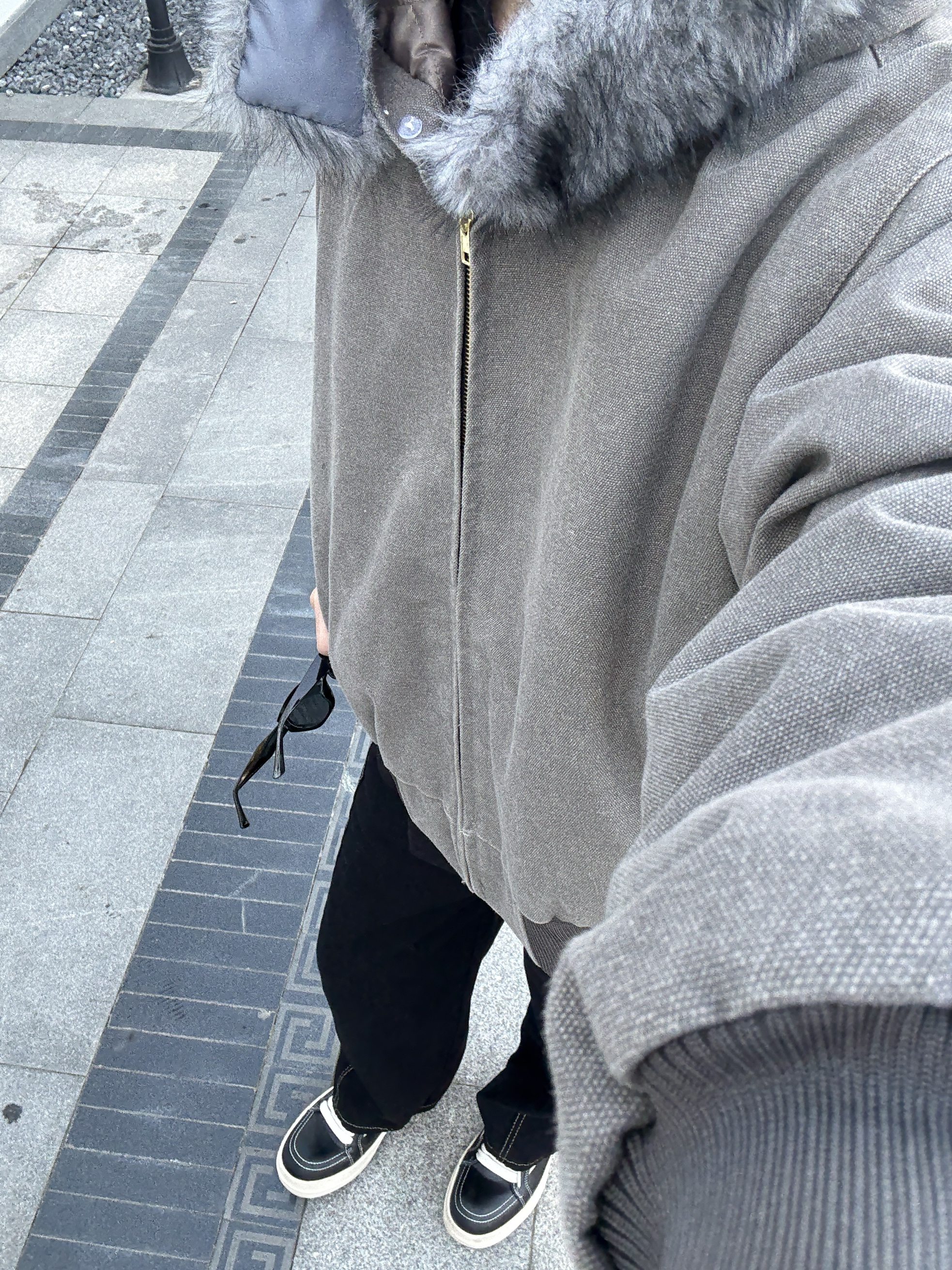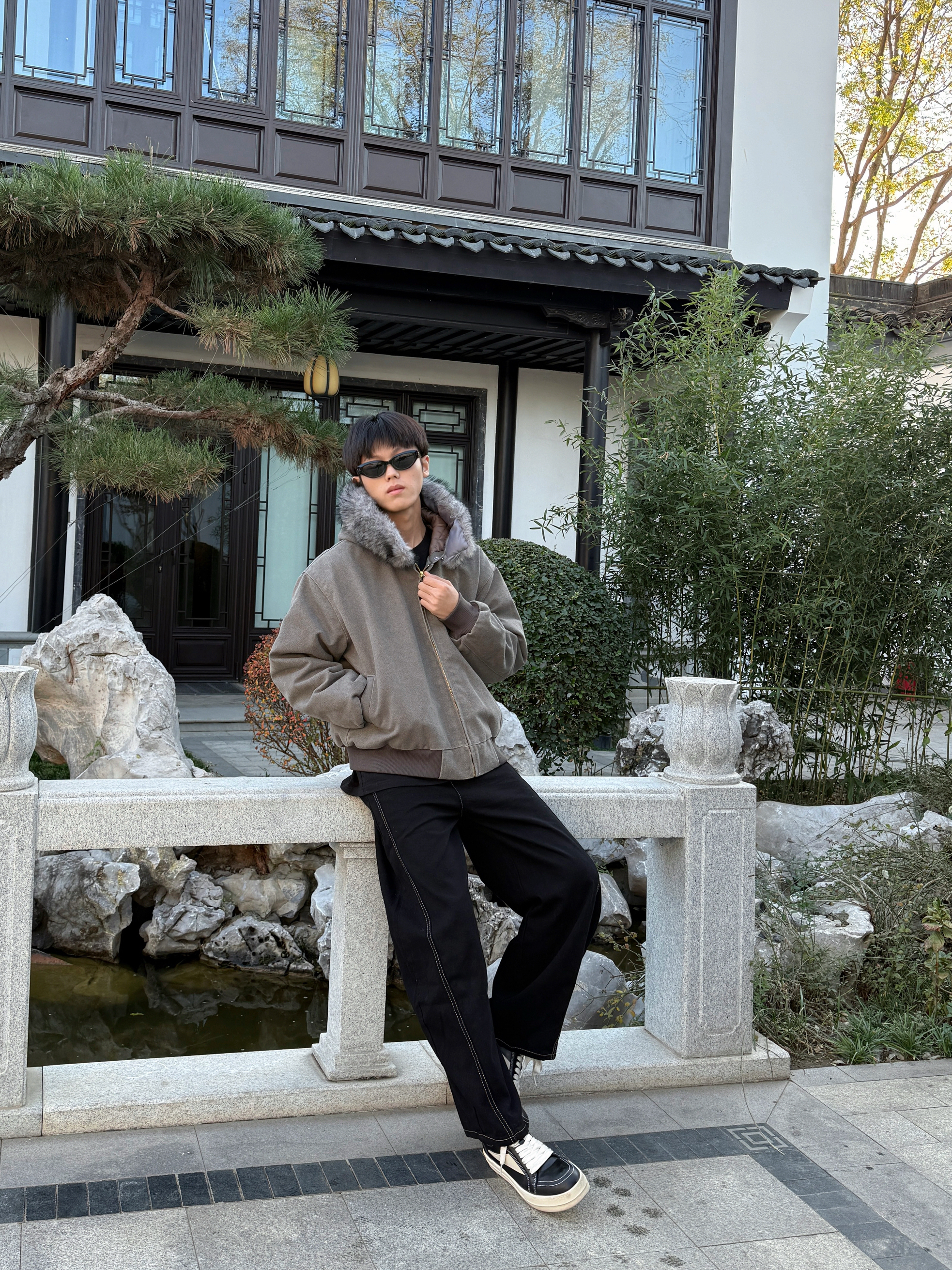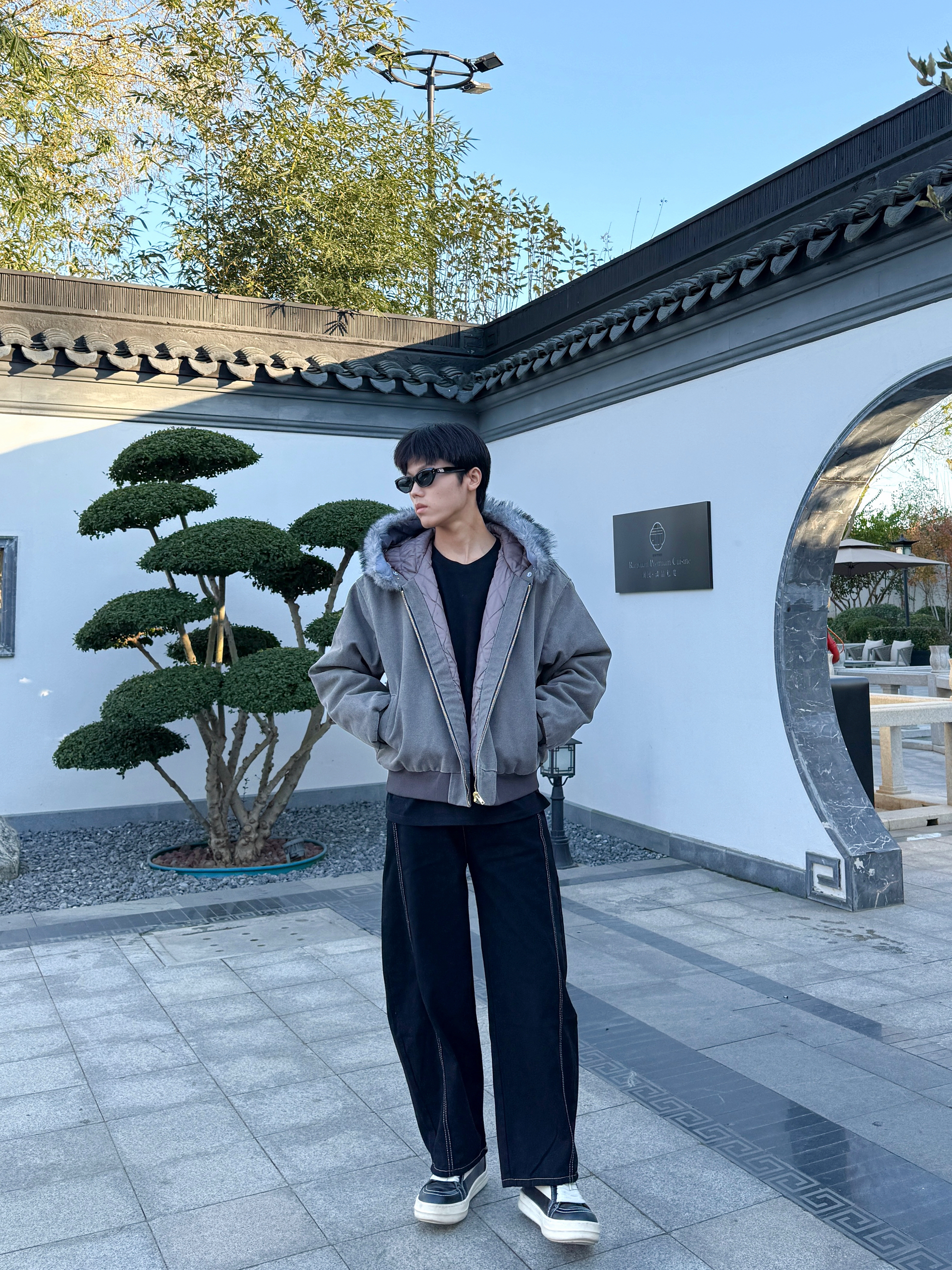 这个秋冬谁还没穿过座山雕! 灰色毛领设计软乎还显贵 内里夹棉抗冻不臃肿 连帽设计轻松拿捏松弛感😎 裤子搭配一条弯刀牛仔裤 宽松直筒的版型显瘦时尚 配双厚底鞋直接帅气出街!