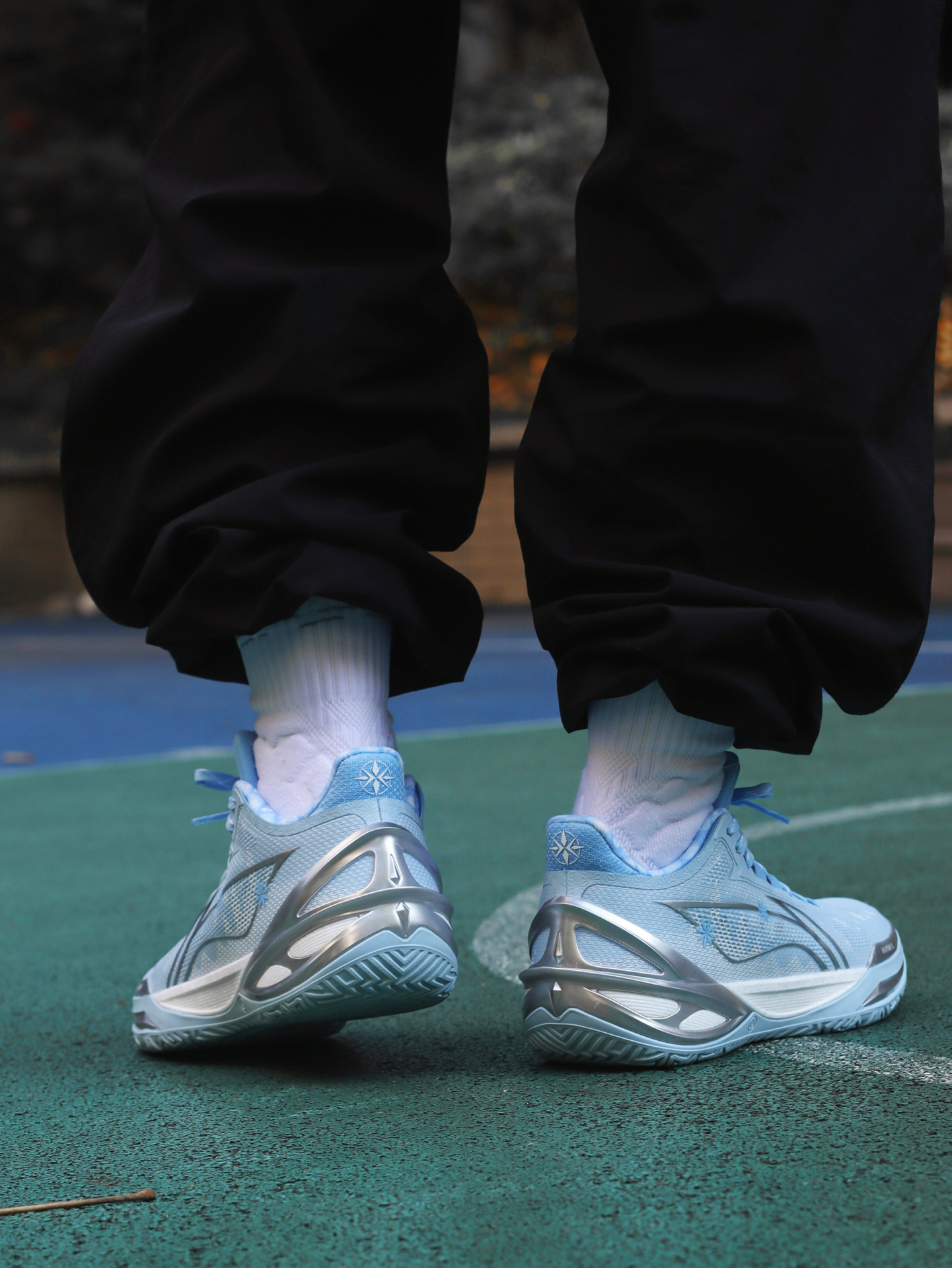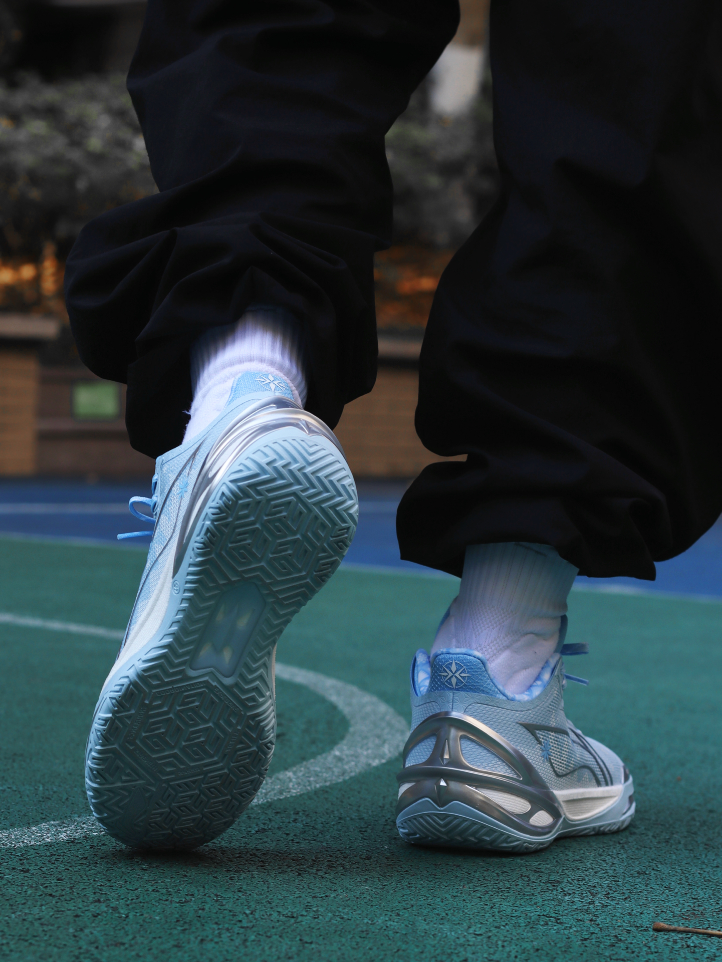 这双利刃6「履霜」配色拿到手穿了几场,确实是我今年很喜欢的团队实战鞋。 开箱第一眼就被颜值拿捏了,鞋身线条利落,侧边银色TPU上点缀着雪花图案,质感很棒,特别适合秋冬季节。 上脚无需磨合,直接去球场也没问题。相比5代,脚感更软弹,稳定性也更好。跑动起来,侧向支撑很扎实,启动发力时反馈明确,一点儿不拖沓。全掌䨻科技+PEBAX板的组合,让整体穿着感舒适又贴地。 外底我这次给好评,室内外场抓地都挺稳,...