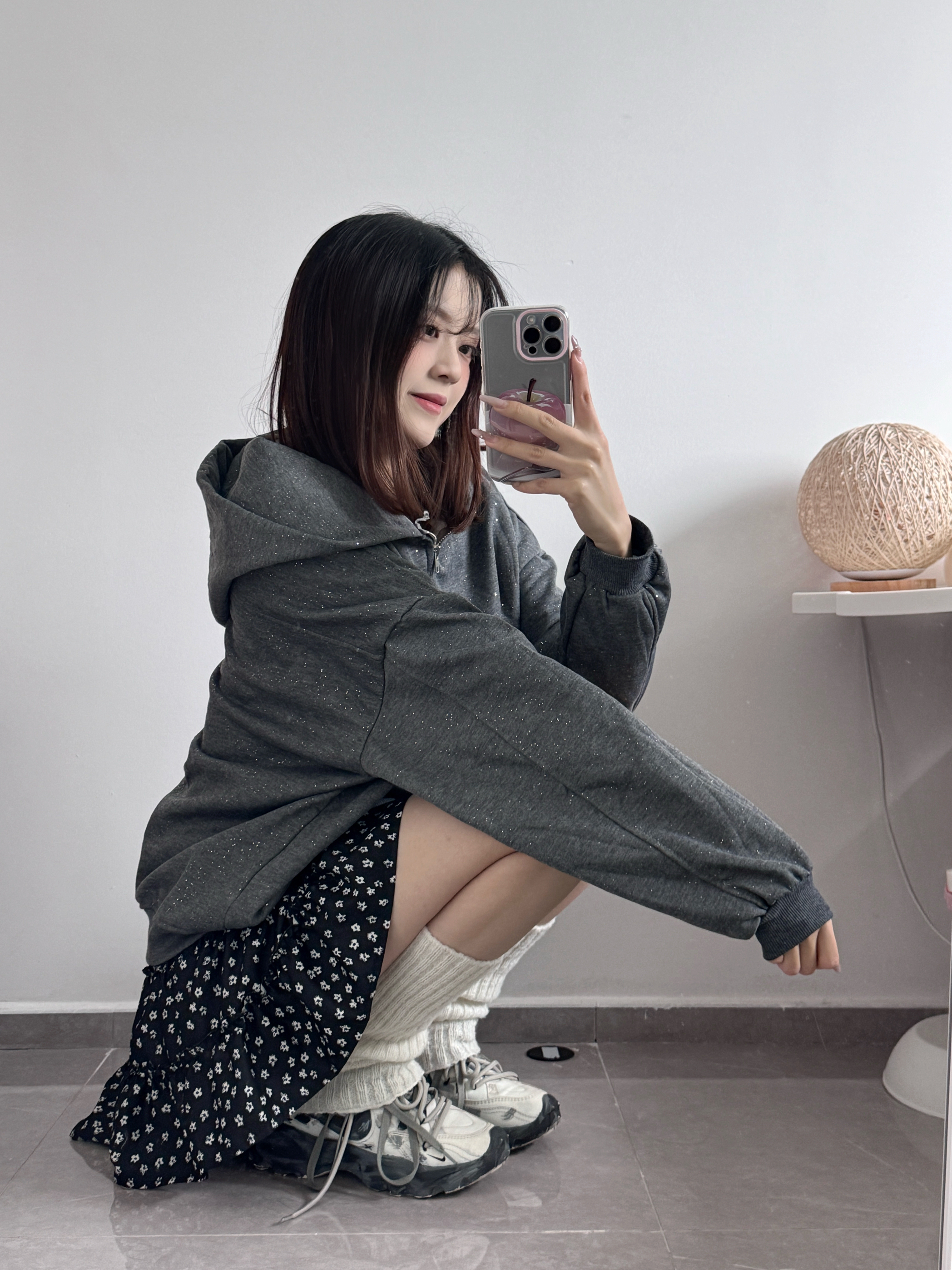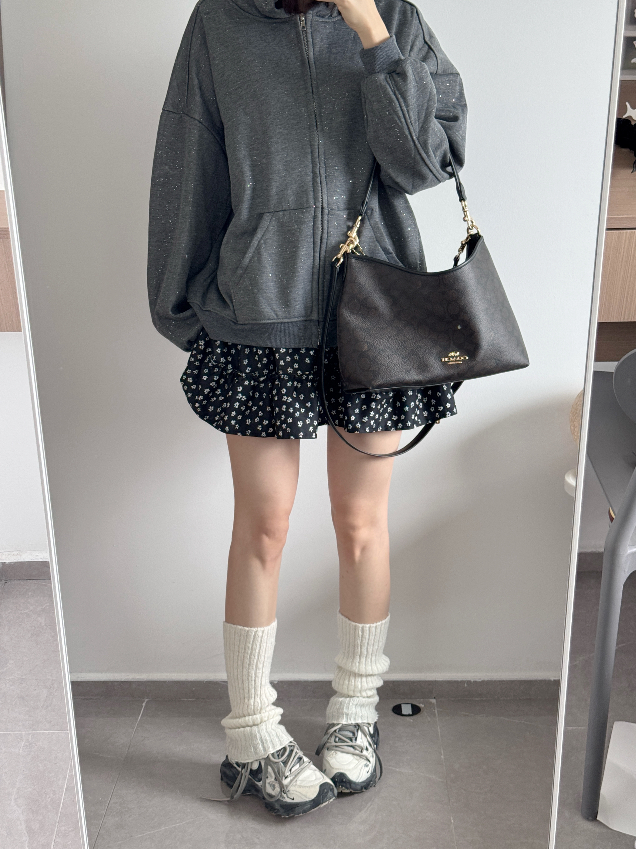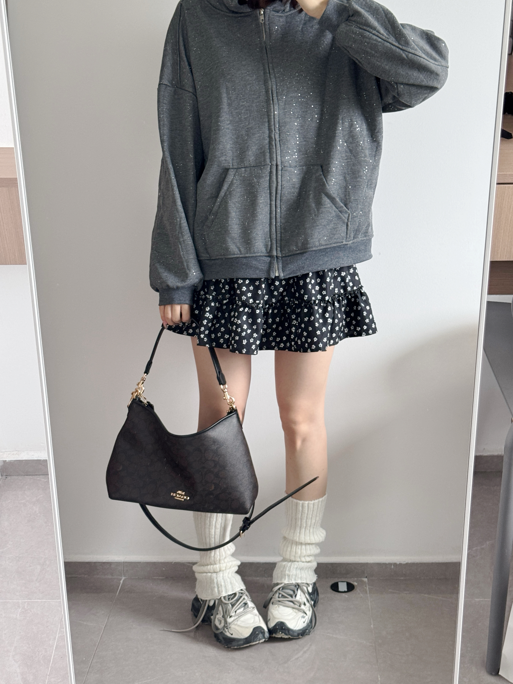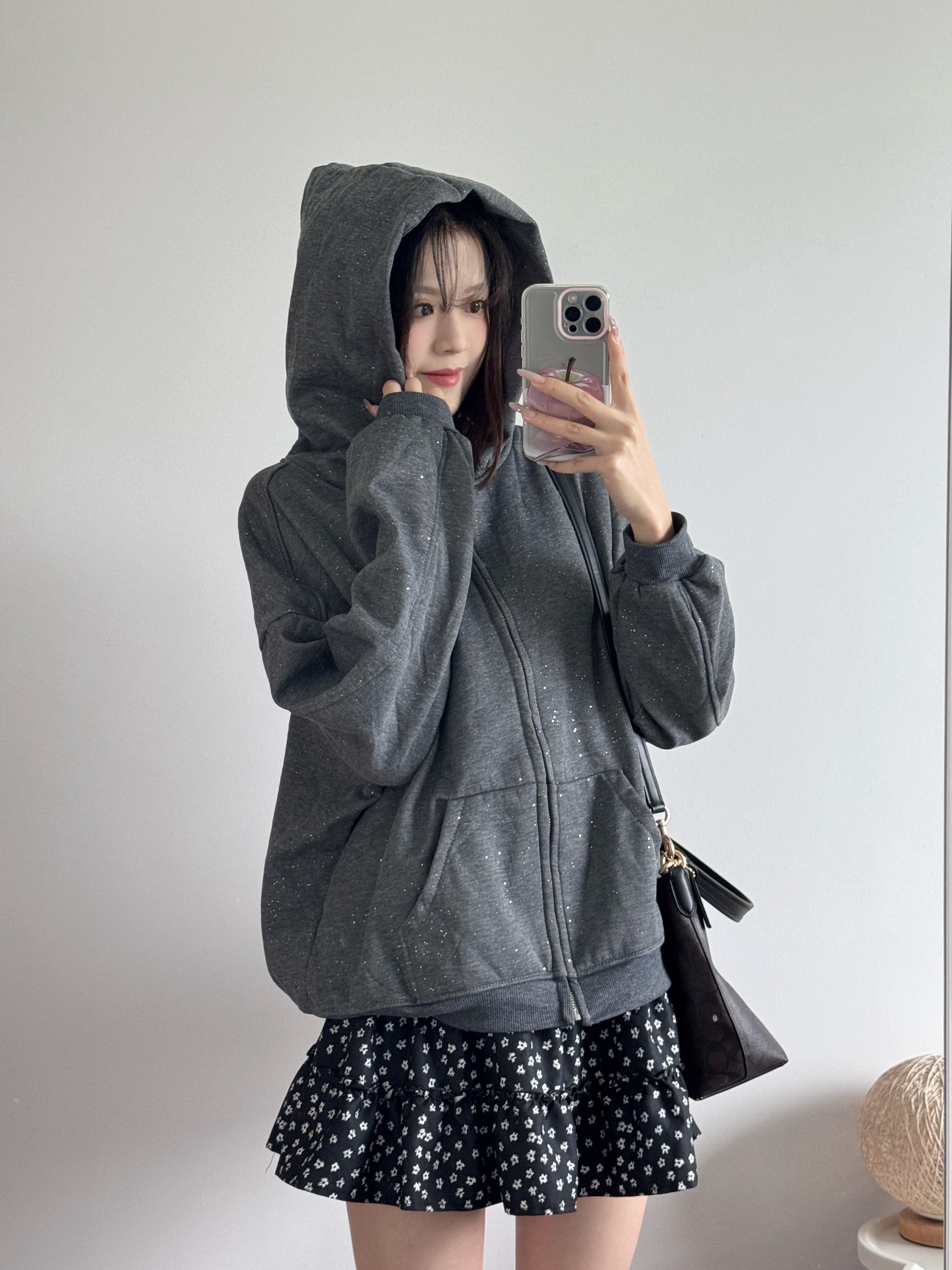 一闪一闪碎星✨卫衣也太好看啦~ 灰色好高级百搭呀 永不过时✌️ 内里加绒的挺暖和的!! 搭配碎花裙一套韩系少女感十足 再冷一点还可以叠穿羽绒服棉服大衣哦🥰