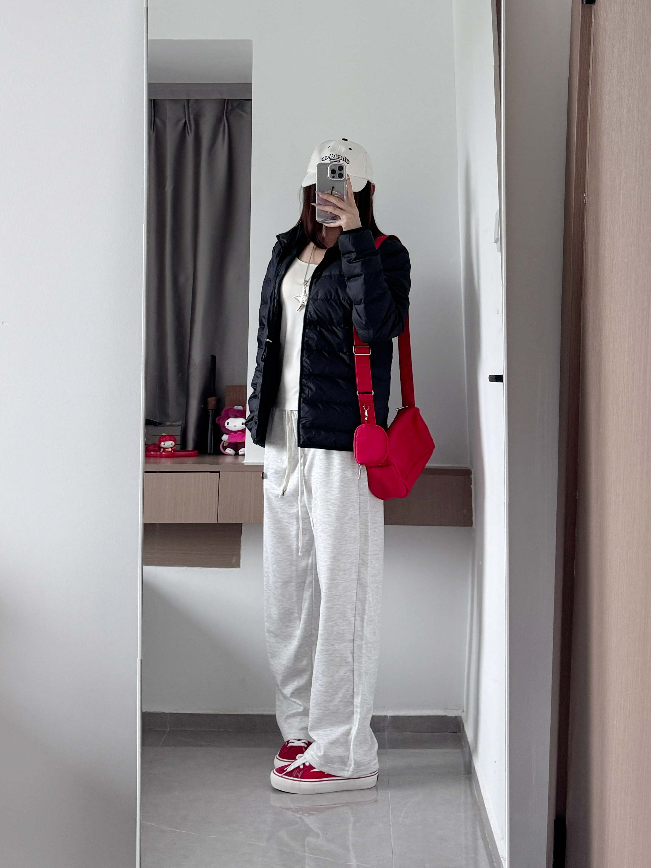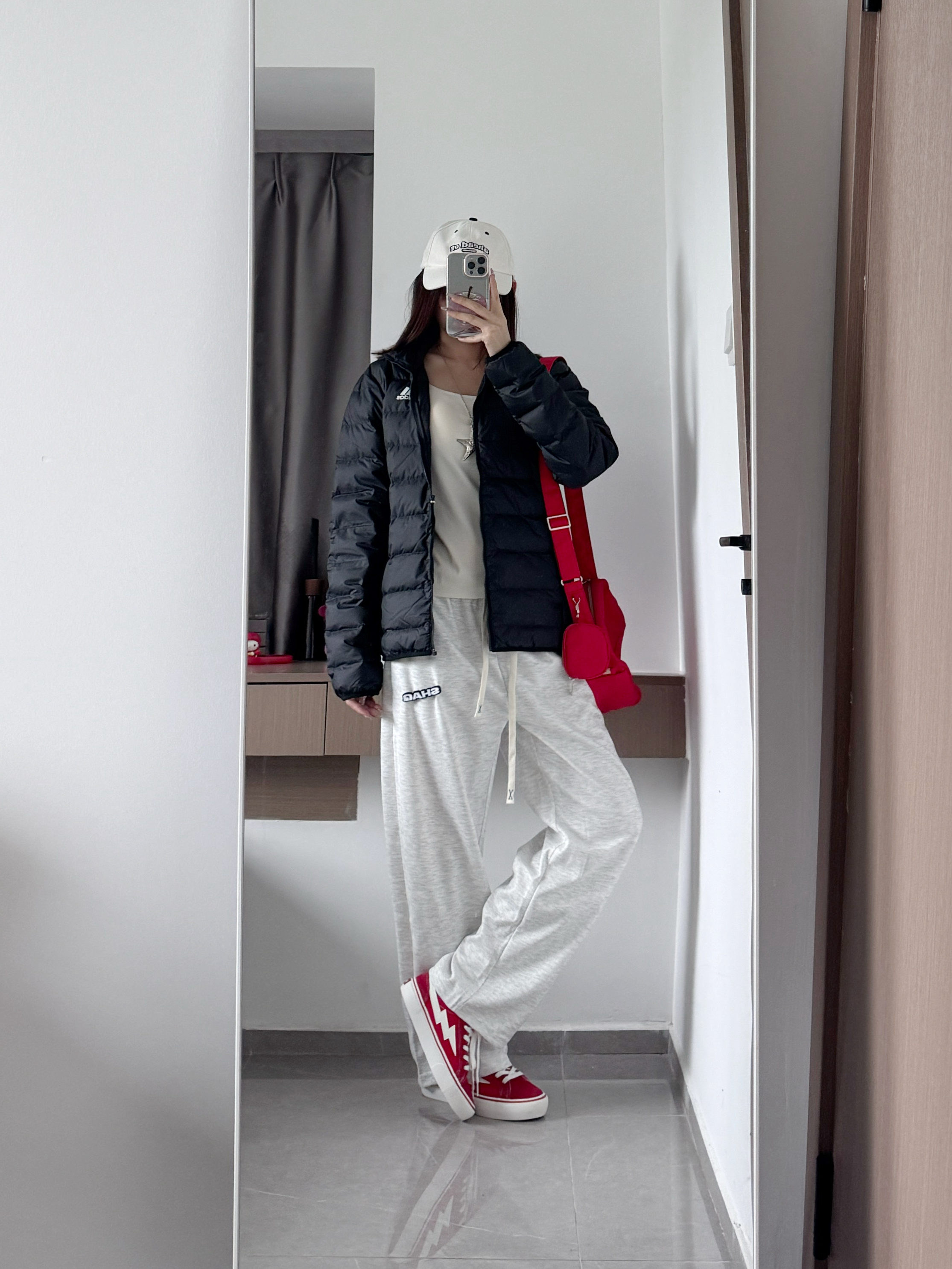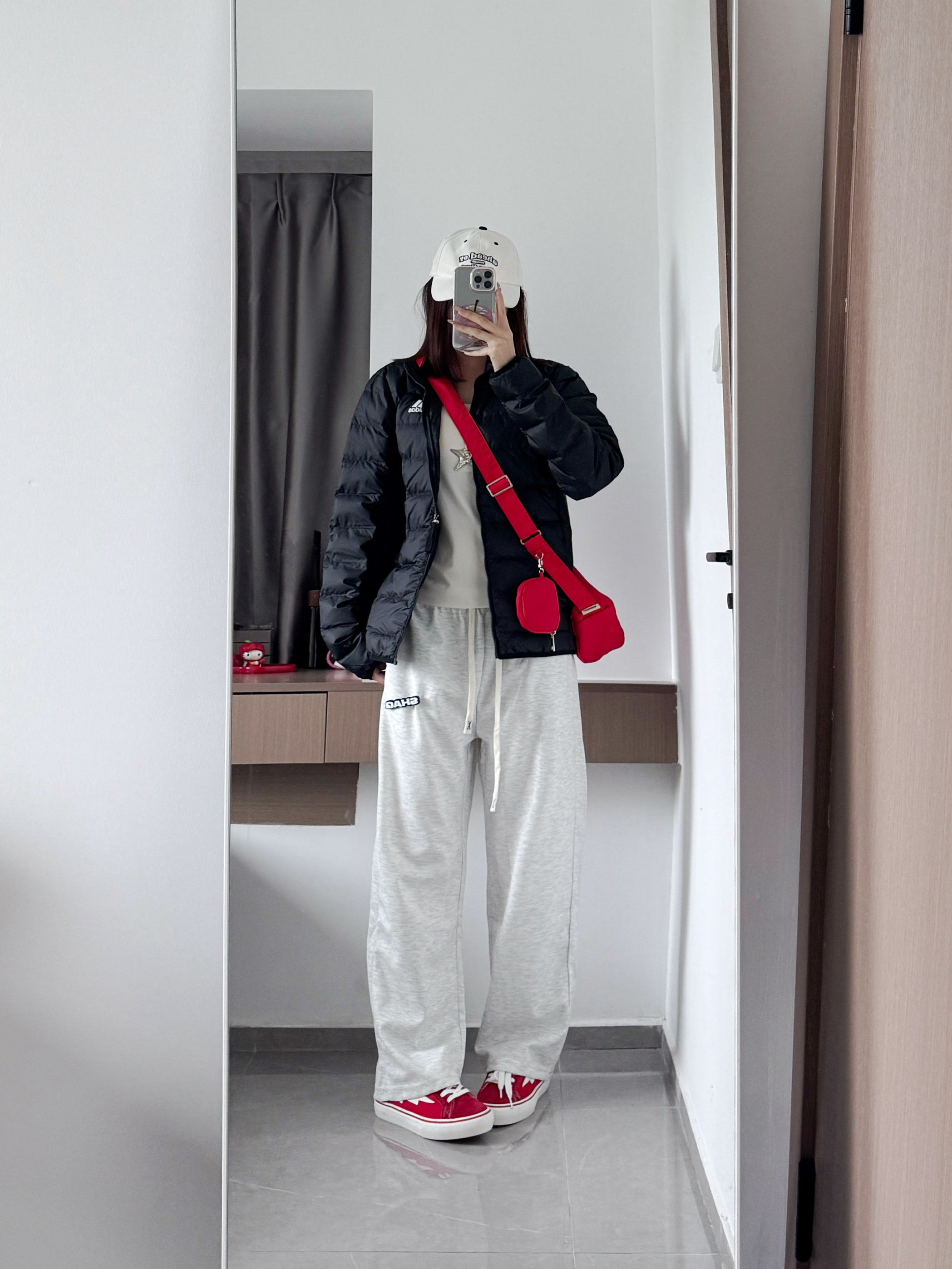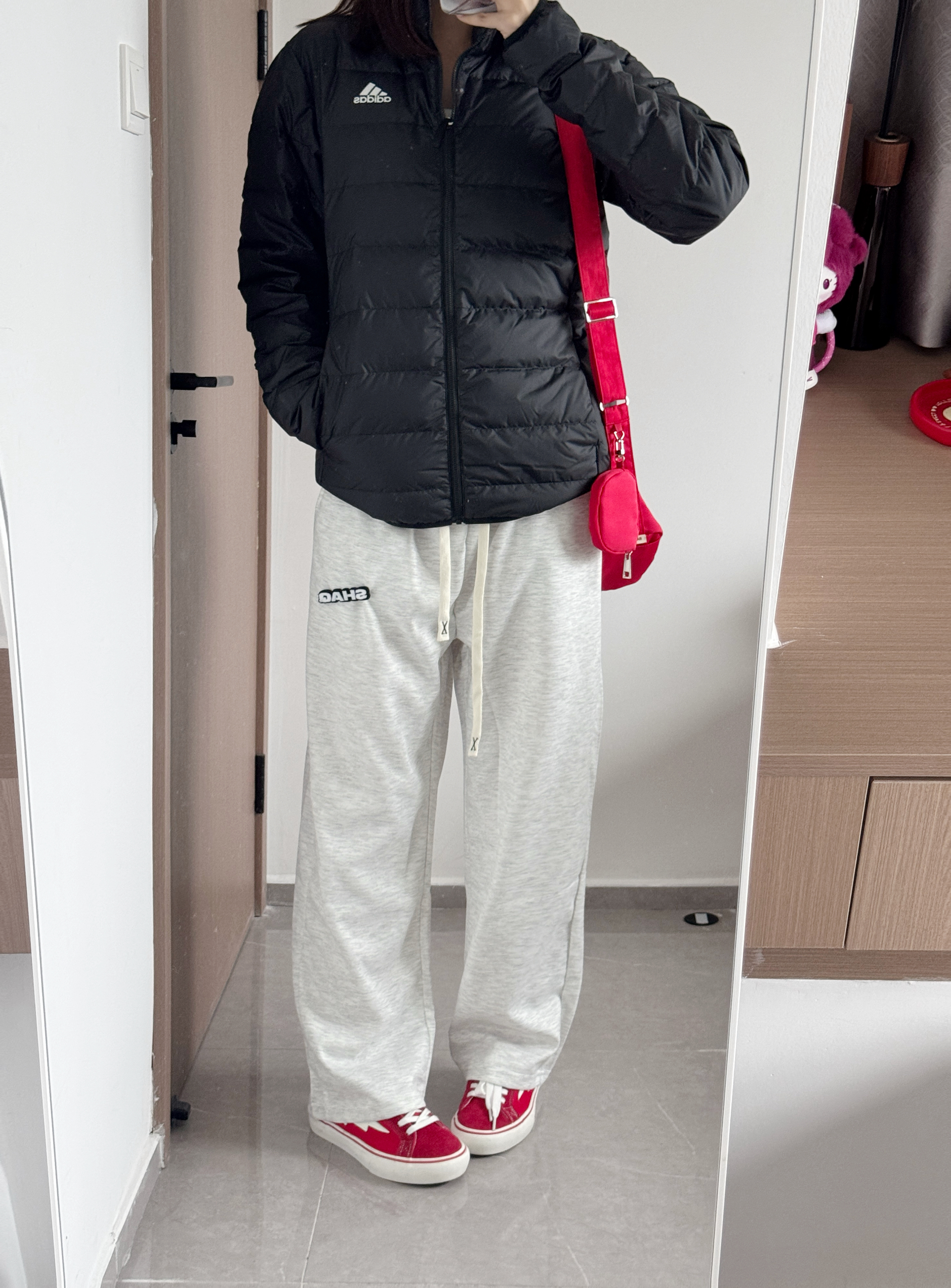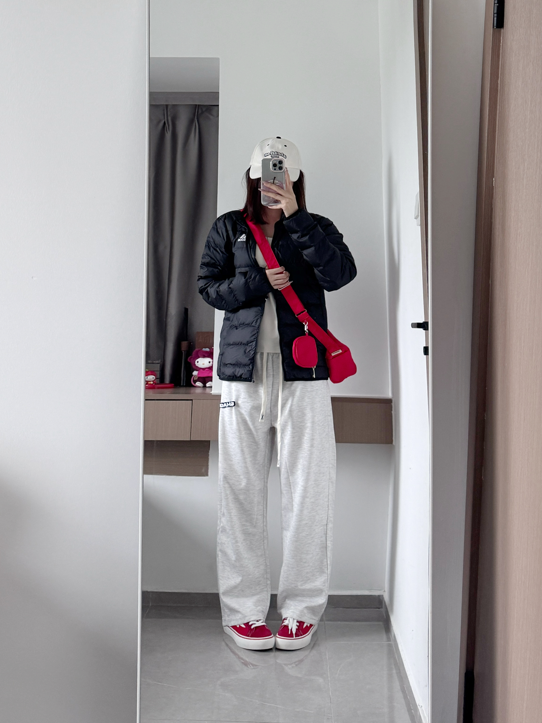 秋冬泰喜欢穿休闲裤啦 灰色经典又百搭 宽松直筒版型嘎嘎显瘦~ 上身尊滴好舒服啊 好适合日常通勤穿✌️ 属于一年四季都能穿的一款