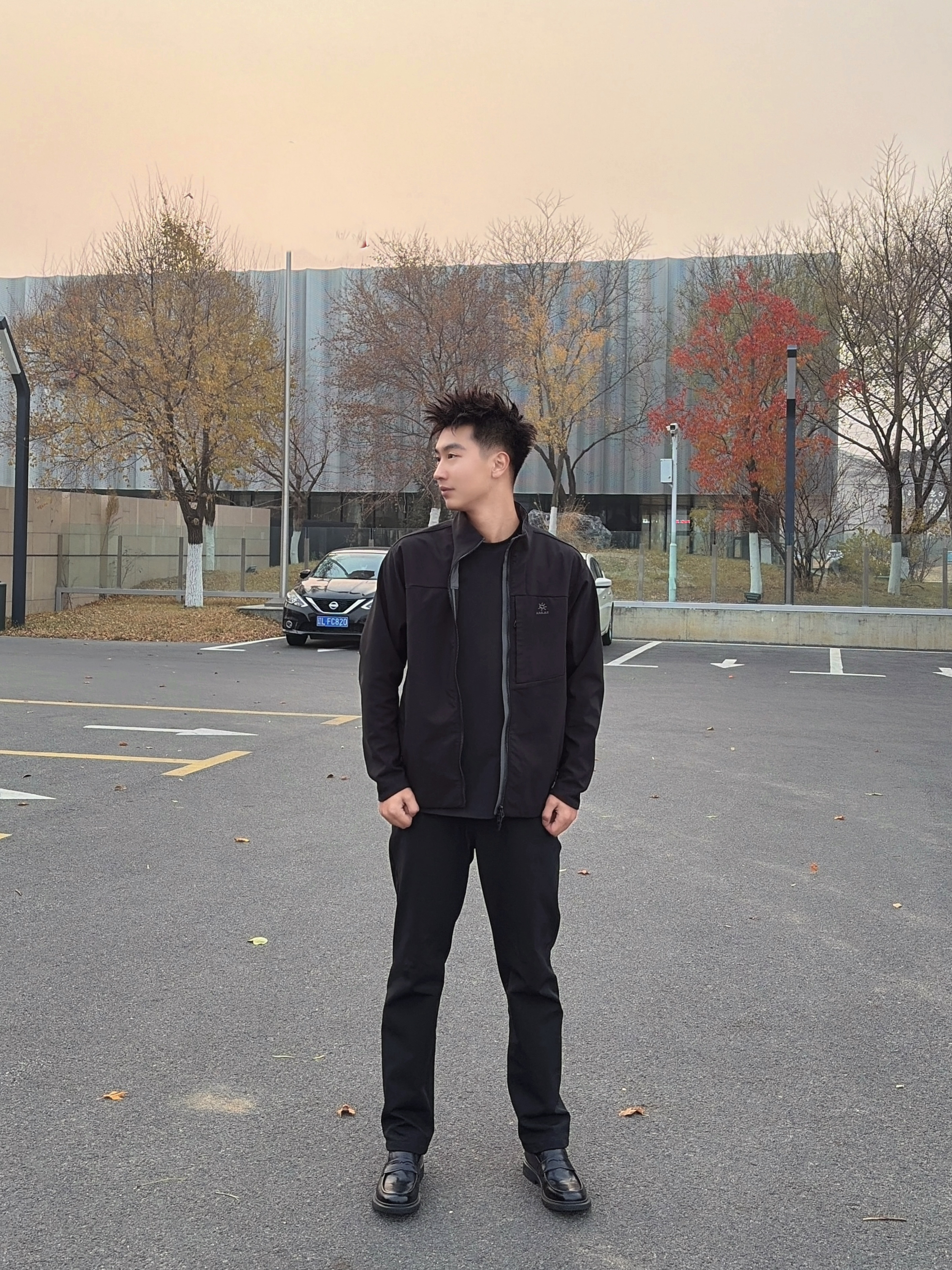 今日穿搭 全黑穿搭也能穿出层次: 机能夹克的暗纹细节+西裤的垂感线条 搭配 HARSON/哈森 家乐福鞋提气场 不用系鞋带超方便,鞋面很软完全不磨脚 鞋底自带回弹,通勤休闲穿都可以 随便站都有“不费力的帅”