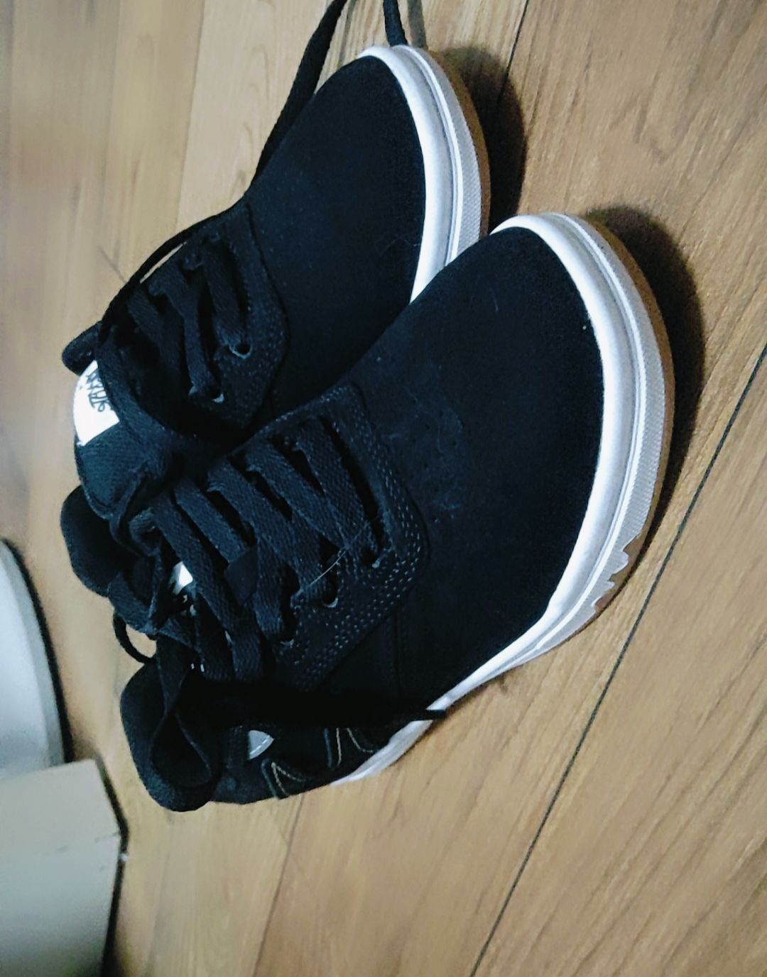 这双极路客板鞋上脚第一感觉就是特别跟脚!鞋垫很厚很弹。 翻毛皮鞋面柔软地包裹着双脚,完全不磨后跟。 穿它通勤逛街不累脚,冷粘大底的弹性让每一步都很有回弹感。减震效果十分不错。 黑白配色真的很省心,搭配各种裤子都没压力,十分百搭。