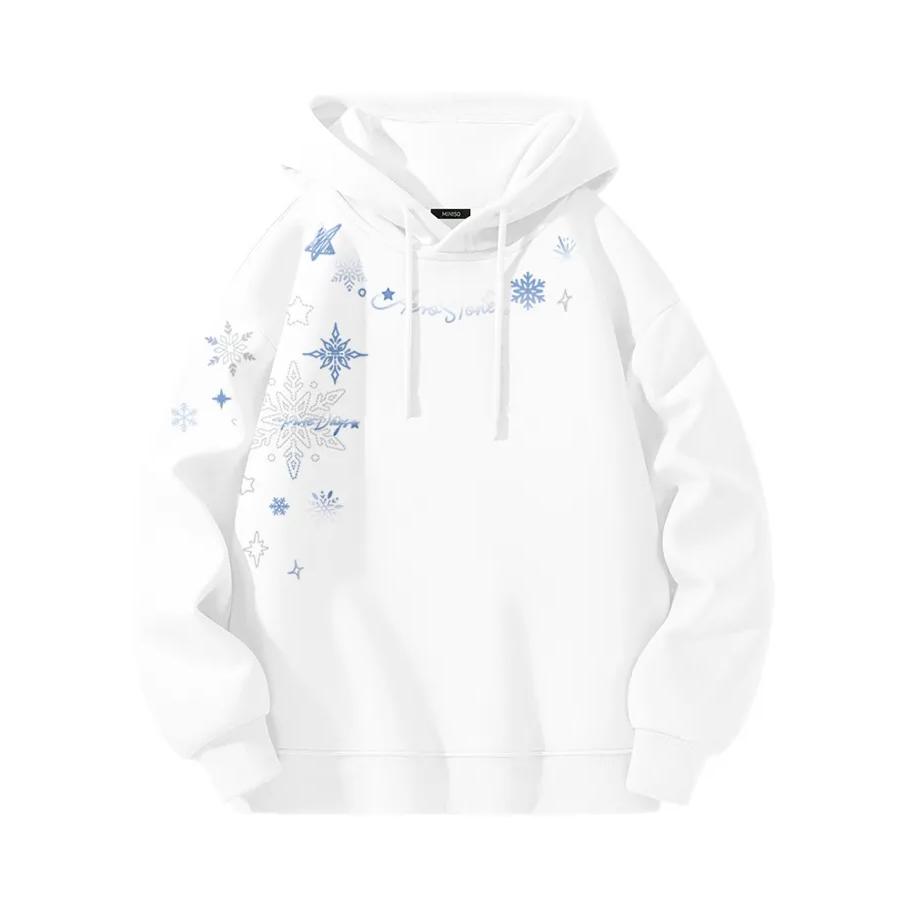 这个卫衣真的很美啊 纯白的底色然后点缀了好多蓝色雪花 仿佛置身冰雪世界里 但是衣服又相反相当的暖和 因为这件卫衣是加绒的! 内里都是很柔软的的毛绒 贴肤还保暖 版型吧还是比较宽松的 所以不论是内搭还是单穿都不错 就是纯白的颜色 大家穿的时候得注意一下 最后尺码供大家参考 模特 身高170 体重 56KG 选择尺码 L 个人认为这个大小是正好的 集美们可以参考下大小 #冬季保暖卫衣...