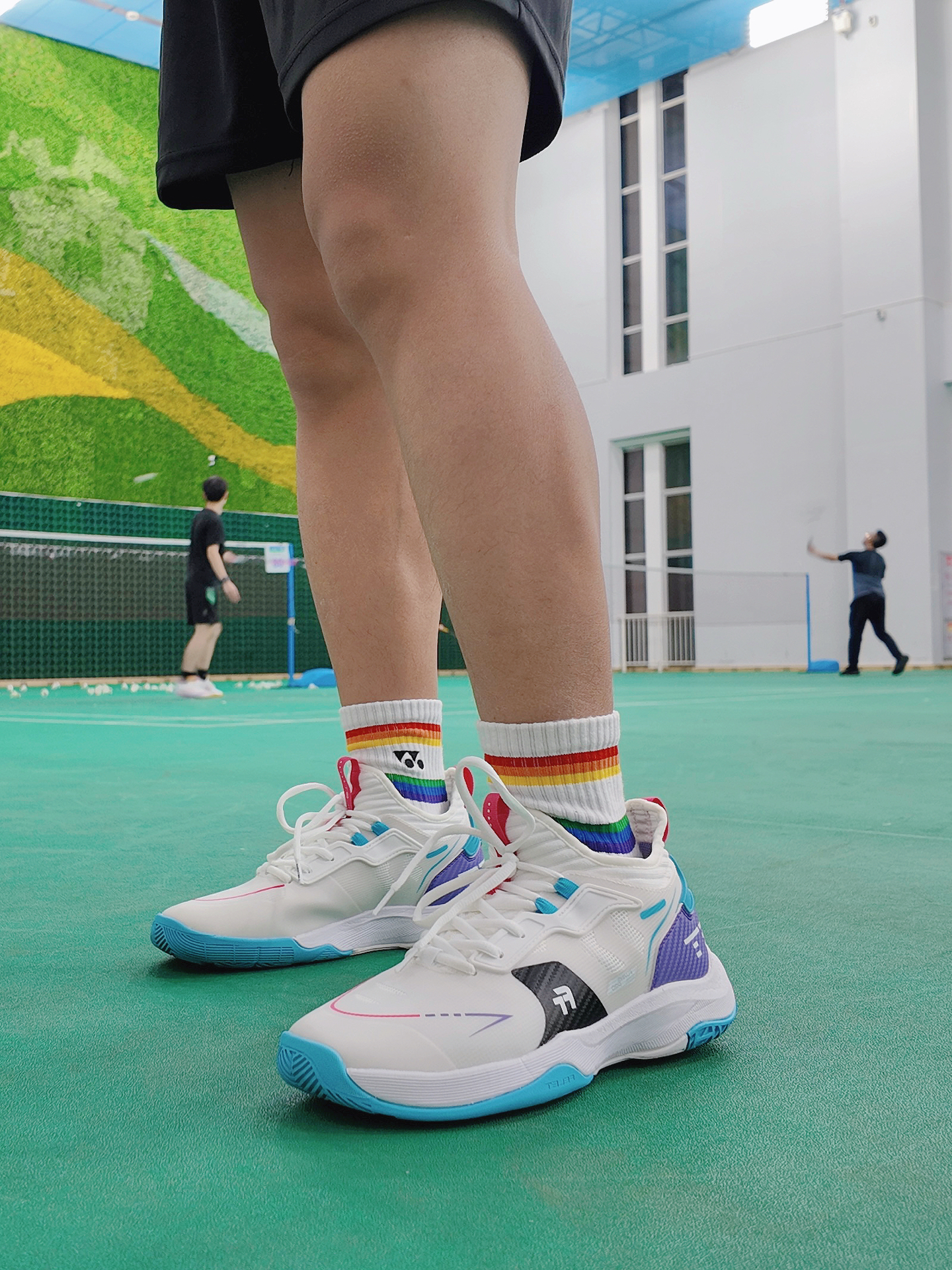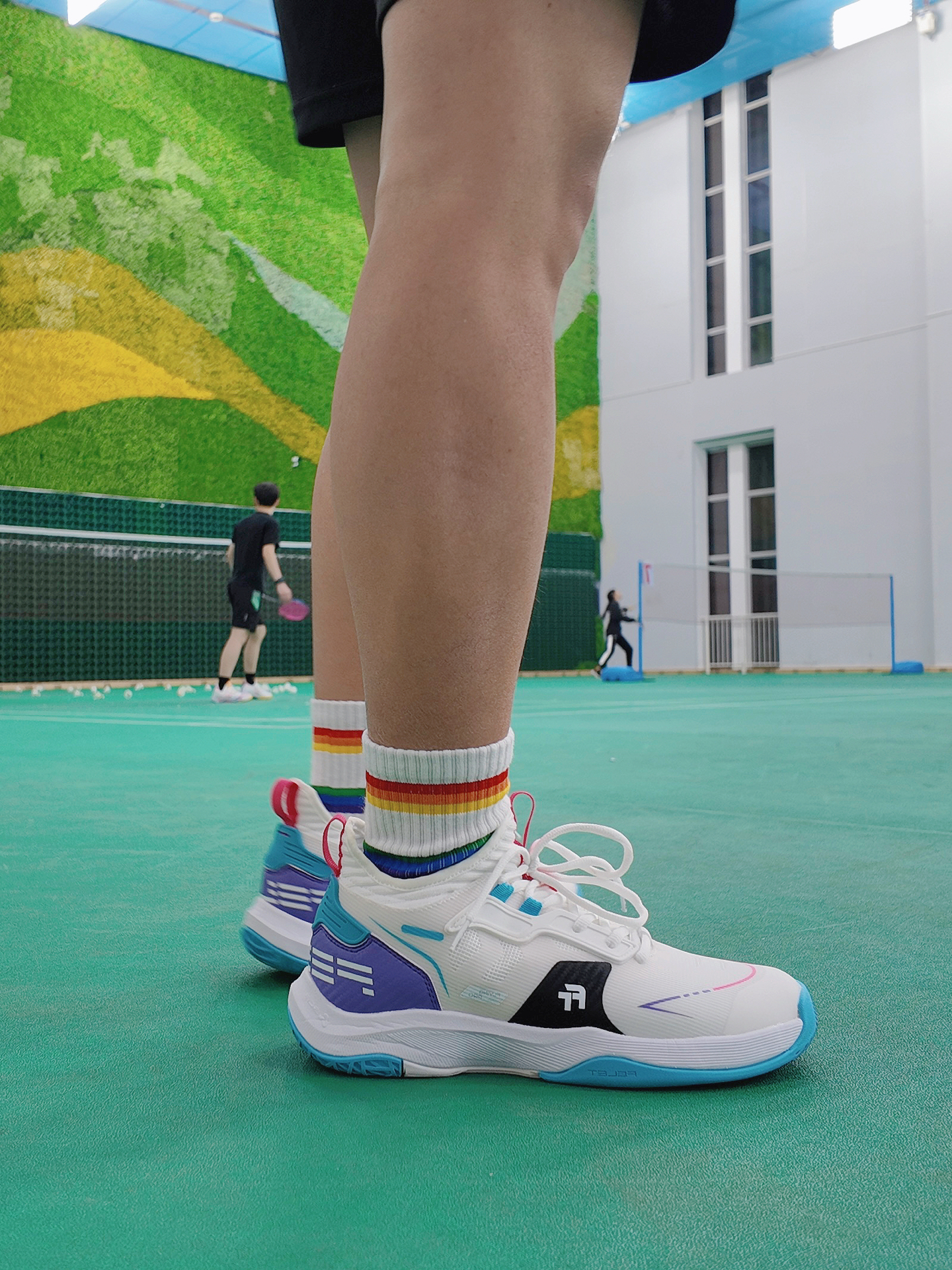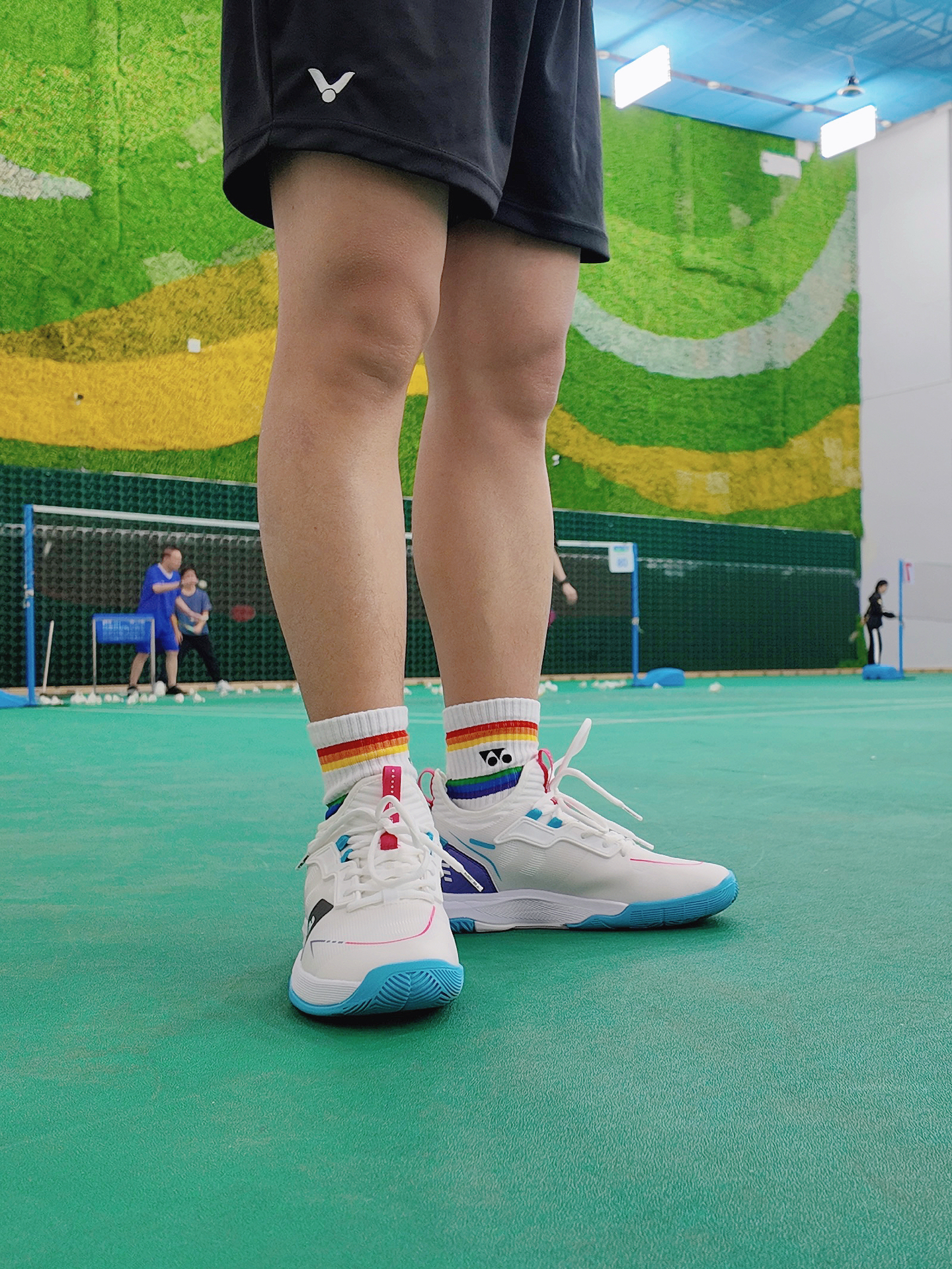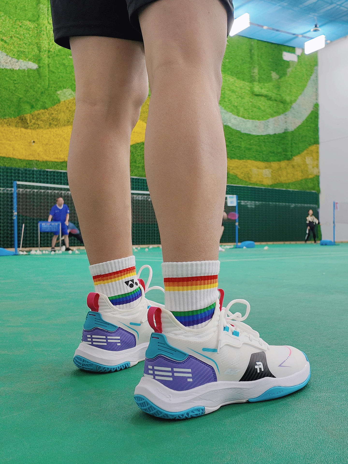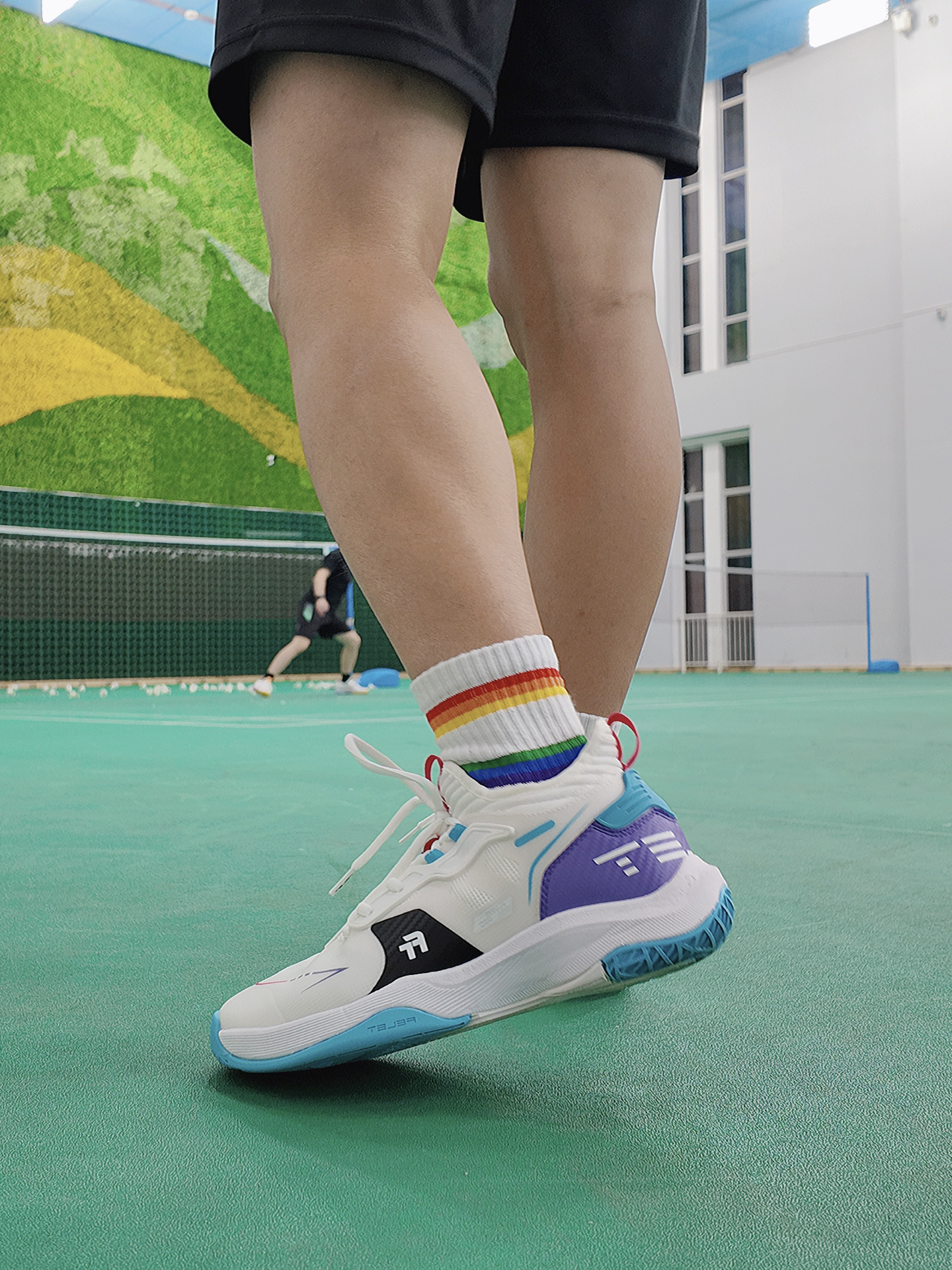 这双辉历的专业飞行Pro2可能是我今年穿过的二线品牌球鞋中用料最扎实给力的一双了,先说结论,适配150斤以上的大体重球友,缓震稳定包裹兼具 外观白色搭配了粉蓝黑紫点缀,看上去清爽干净又不失骚气,颜值个人觉得非常具有辨识度 鞋面前掌部分的透气网布上用了大面积压胶覆膜,弯折柔软度不错,内里加了一层内衬,穿上去脚背包裹很舒服,,鞋楦是个稍宽的v楦,适合有点宽的希腊脚和埃及脚球友,鞋帮看上去是高帮,但...