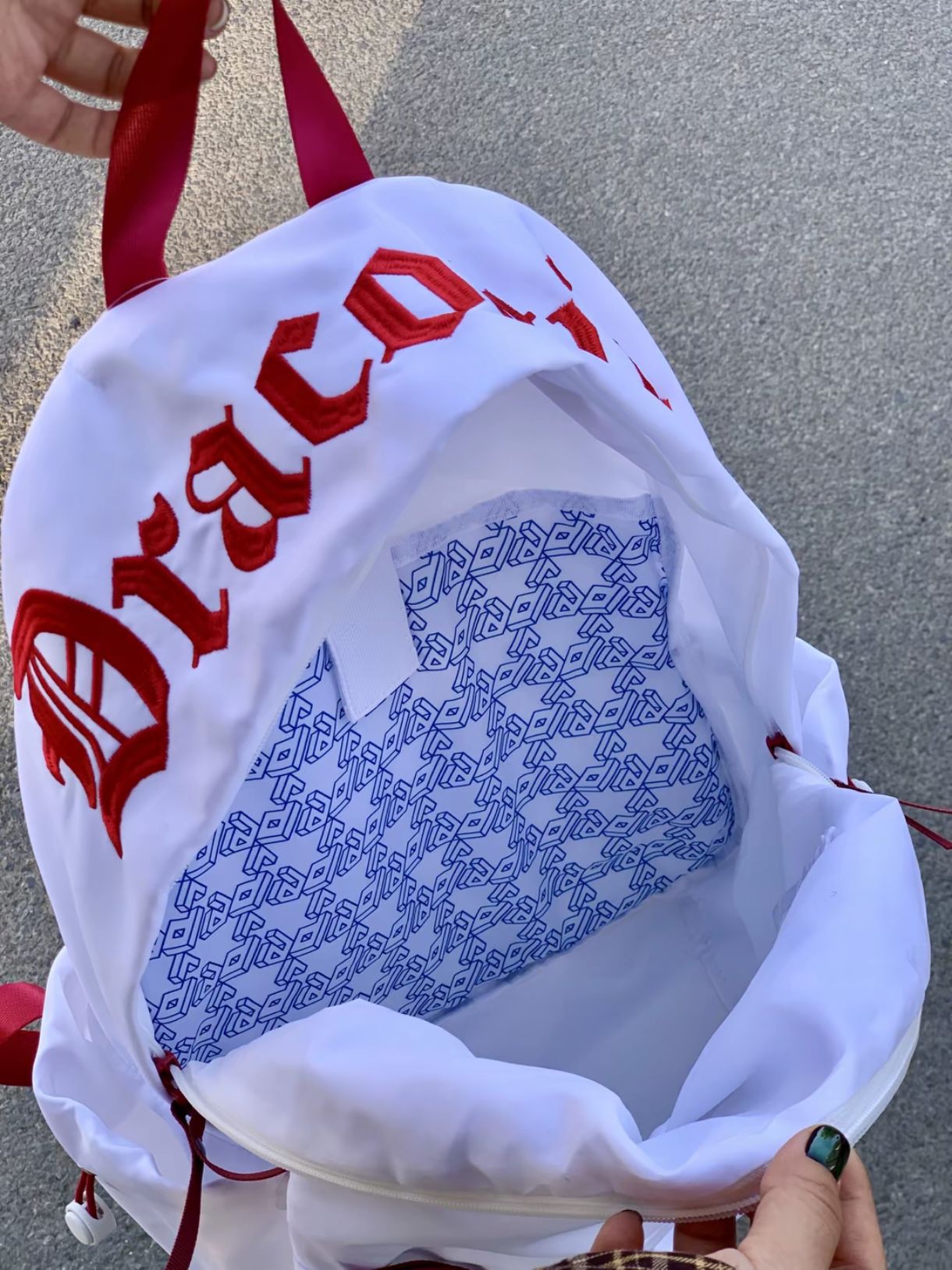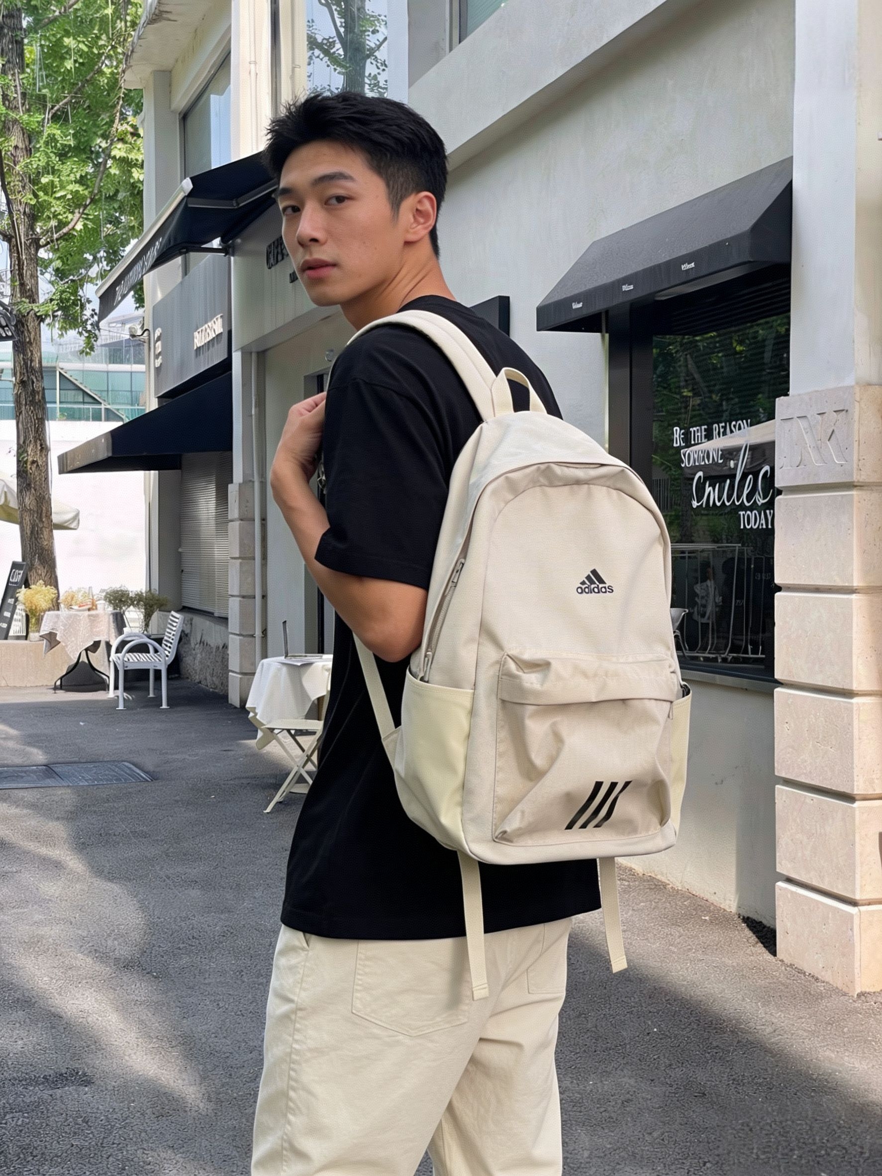 太喜欢这个背包的配色了 白色为主体 五颜六色的颜色做辅助 经典的大小Logo设计 简约又时尚 唯一就是容量不是太大 刚好满足学生党日常所需