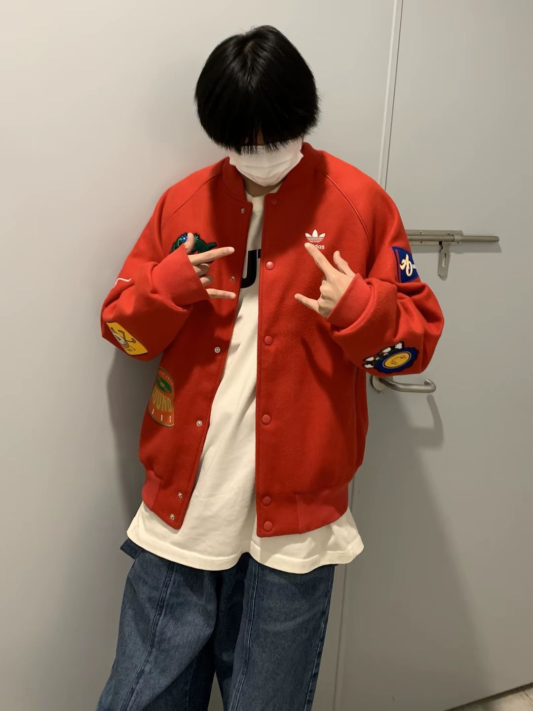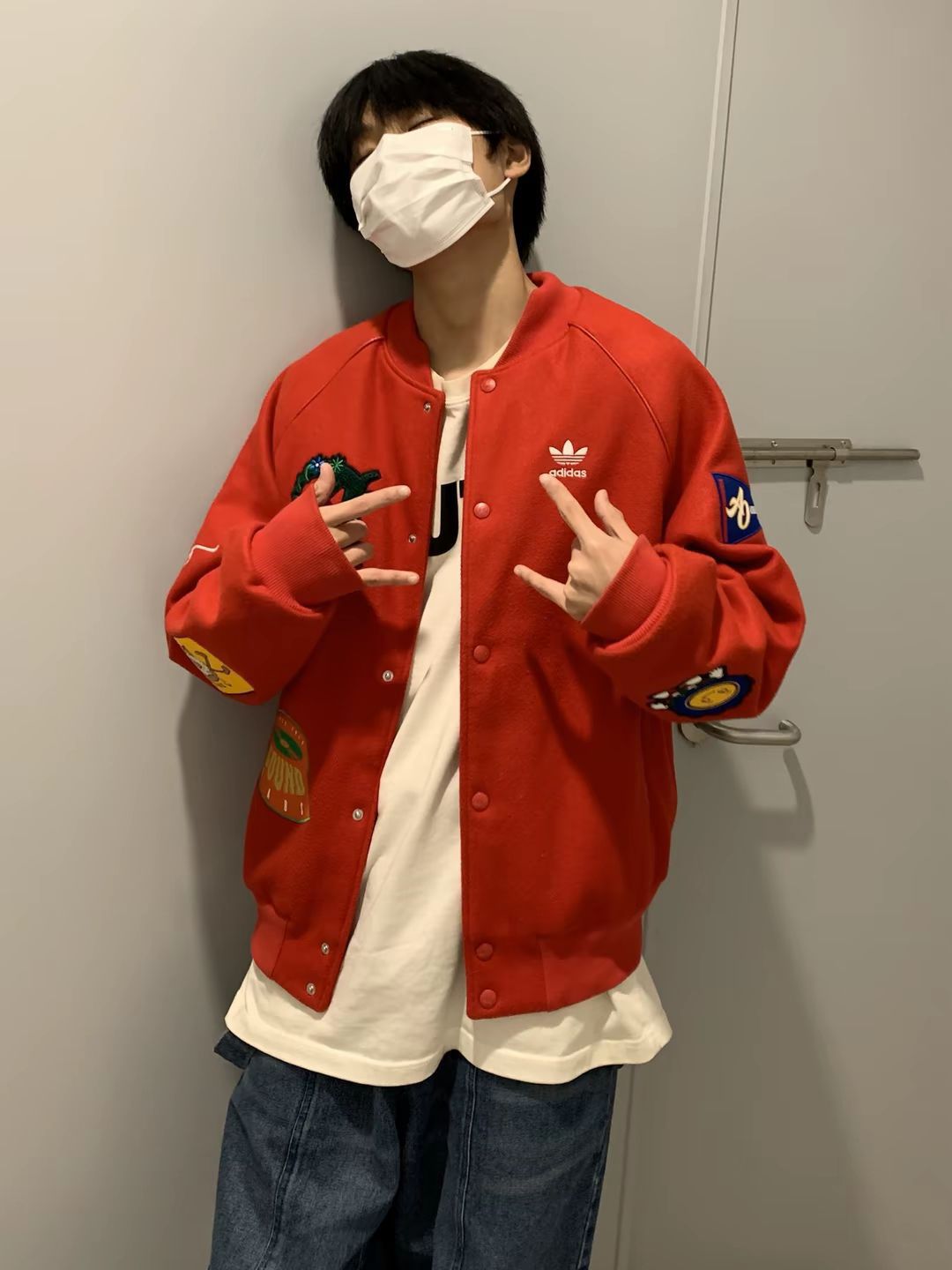 👔👖 立领夹克外套➕牛仔裤 ⬆️红色夹克外套多图案设计增添活力 很有喜感 保暖舒适 搭配宽松牛仔裤再来一双黑白帆布鞋 日常出街回头率超高 心情都变好了🥰
