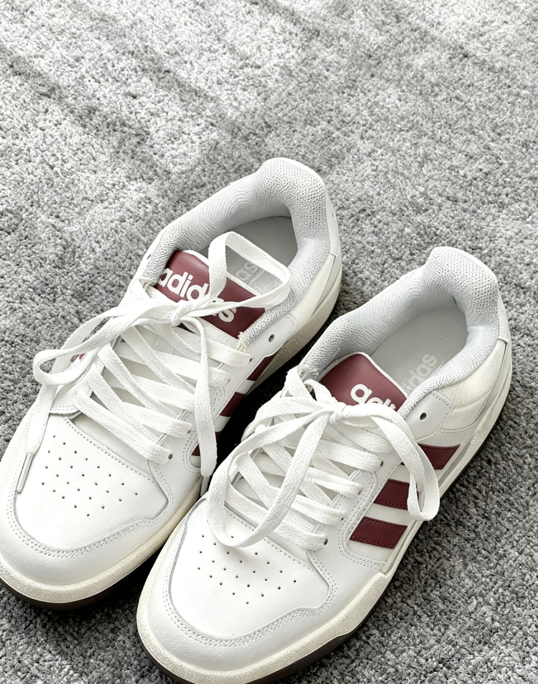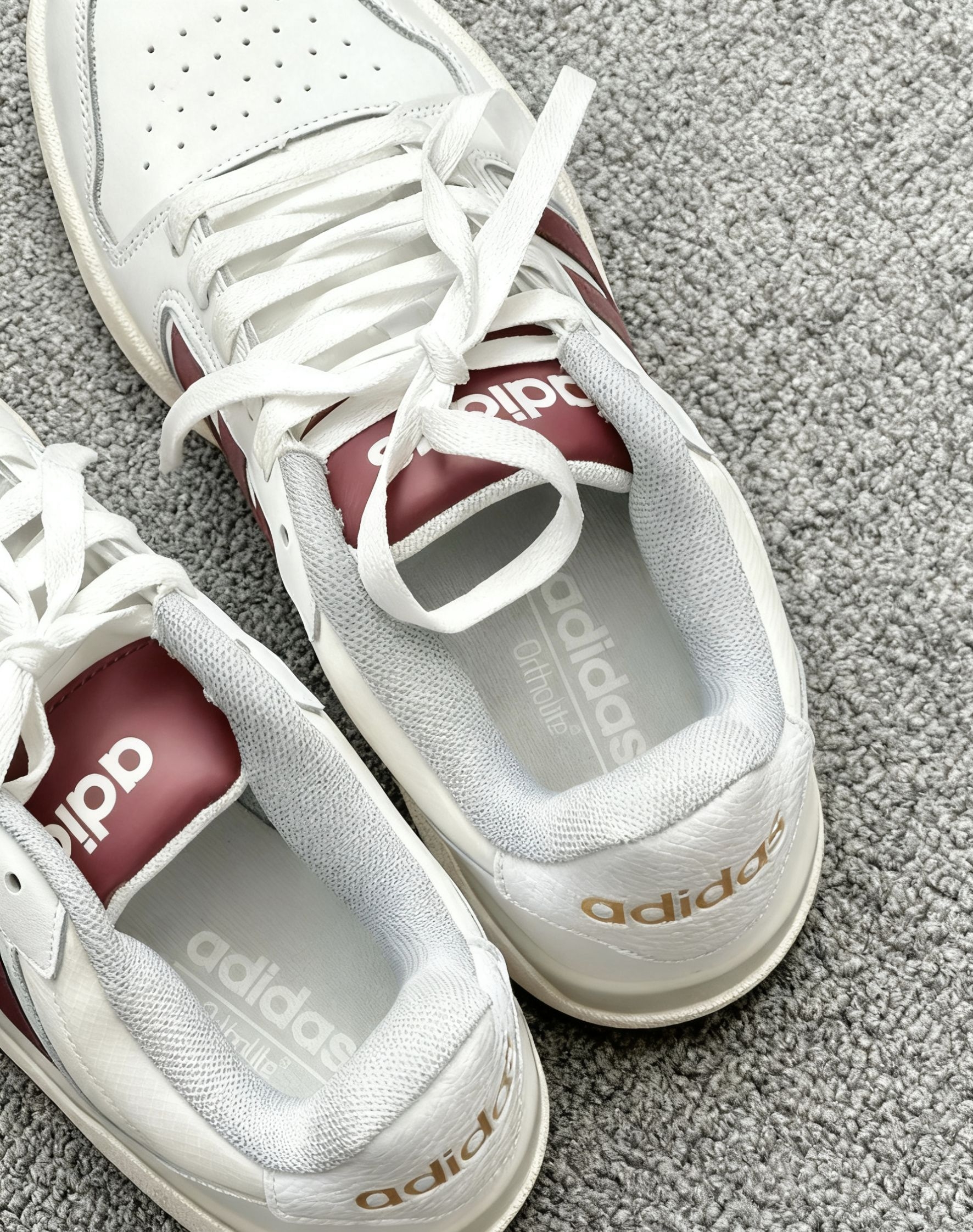 谁懂啊家人们!随手捡的这双阿迪,直接成了我这个月的“脚替”—连穿7天没换鞋,朋友见一次问一次链接! 最开始是被配色戳中:米白+酒红条纹,不是烂大街的黑白配,自带点复古学院感,搭牛仔裤是美式校园剧女主,配百褶裙又秒变韩系学妹,属于“随便穿都不垮”的万能款。 上脚才是惊喜:鞋型看着板正,实际鞋头做了透气孔,30度天走一万步脚都不闷;鞋底是那种软中带支撑的质感,踩下去有...