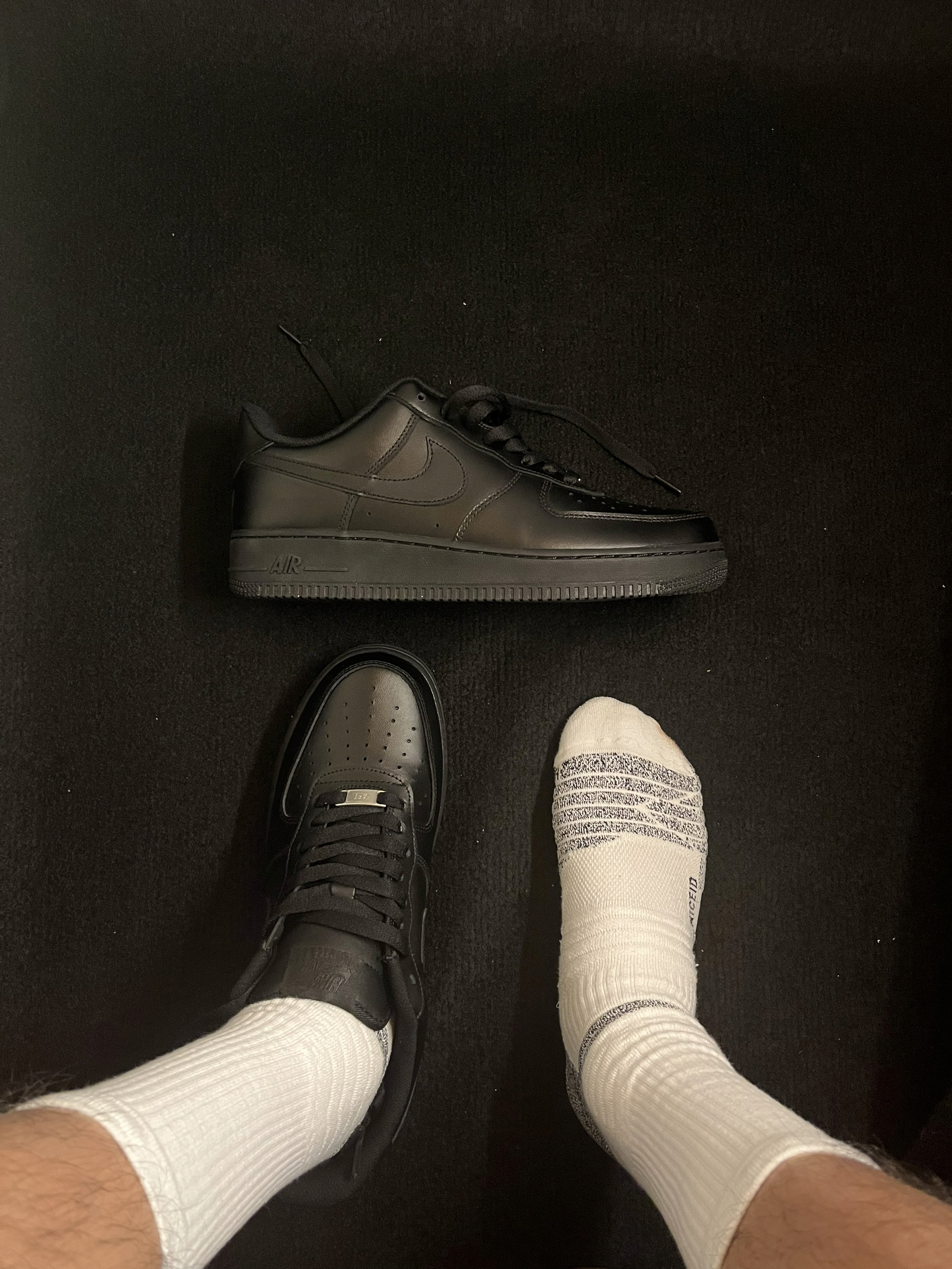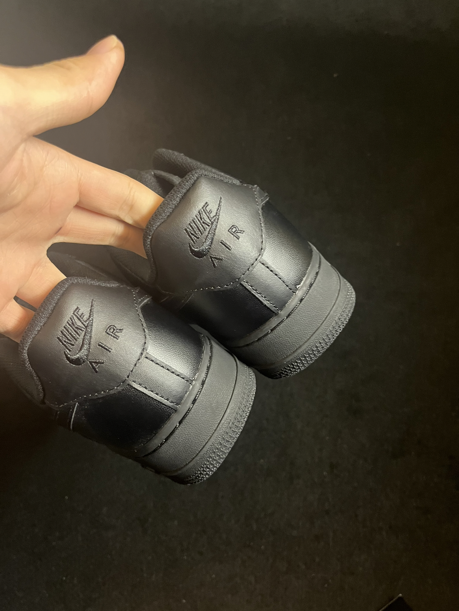挖到宝的全黑Air Force 1必须按头安利!它厚底软乎走一天都不累,鞋面是那种软而有支撑的细腻黑皮,摸起来有高级光泽感完全不廉价,唯一缺点是空军老毛病——穿几次鞋头会出折痕,但这在我这儿算“复古彩蛋”,越穿越有内味儿~
